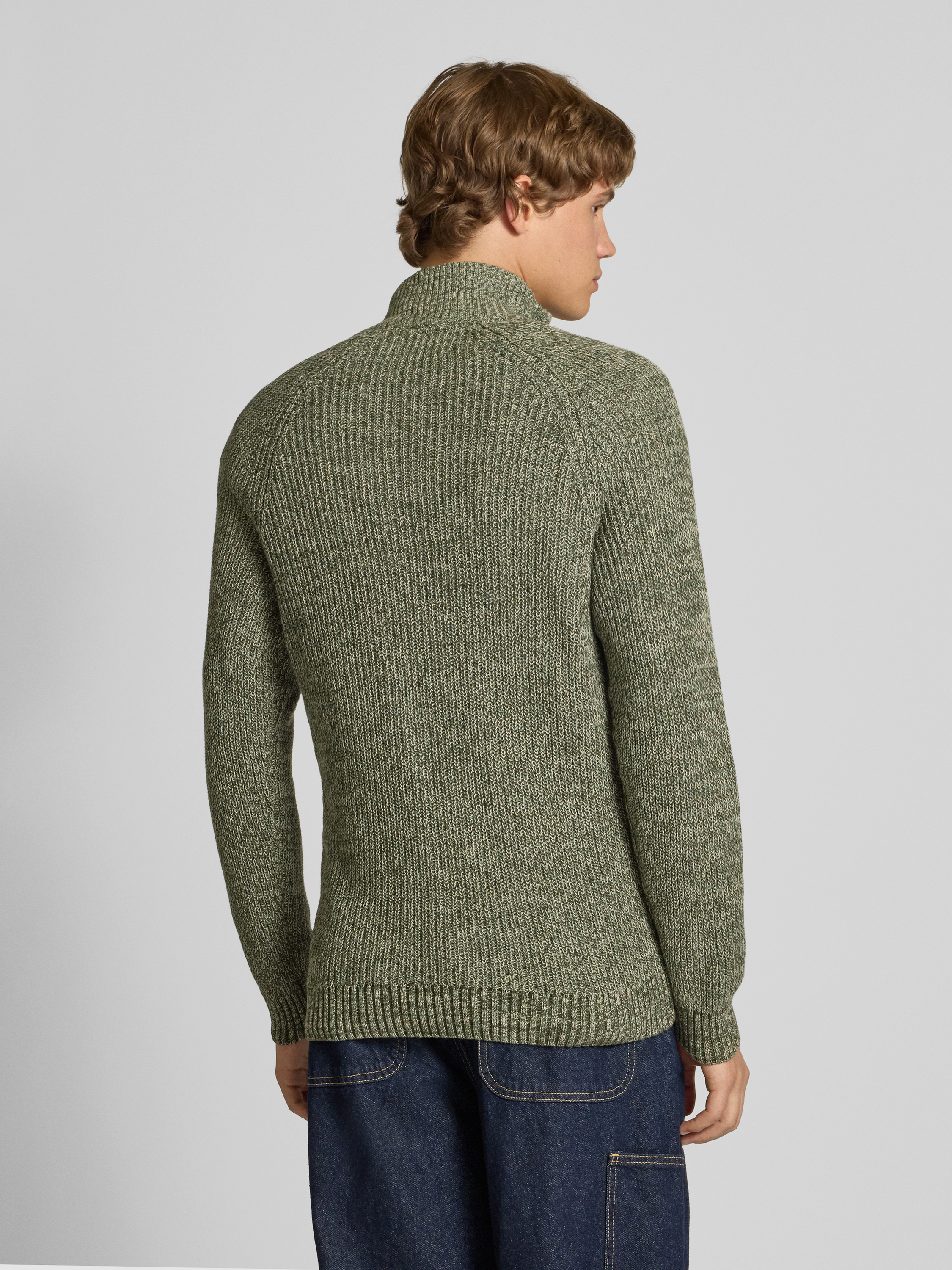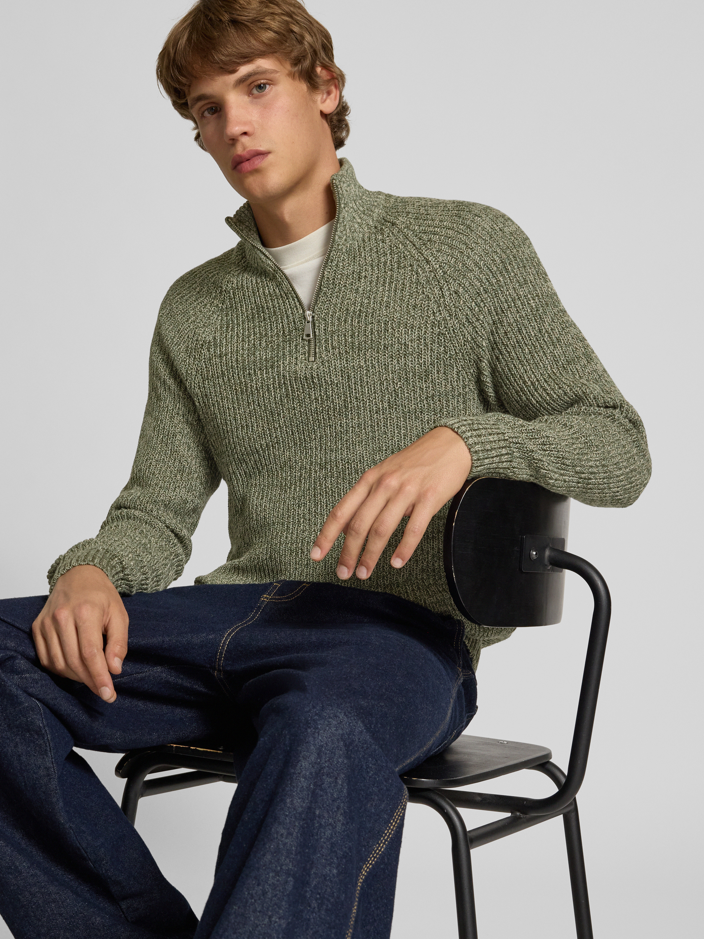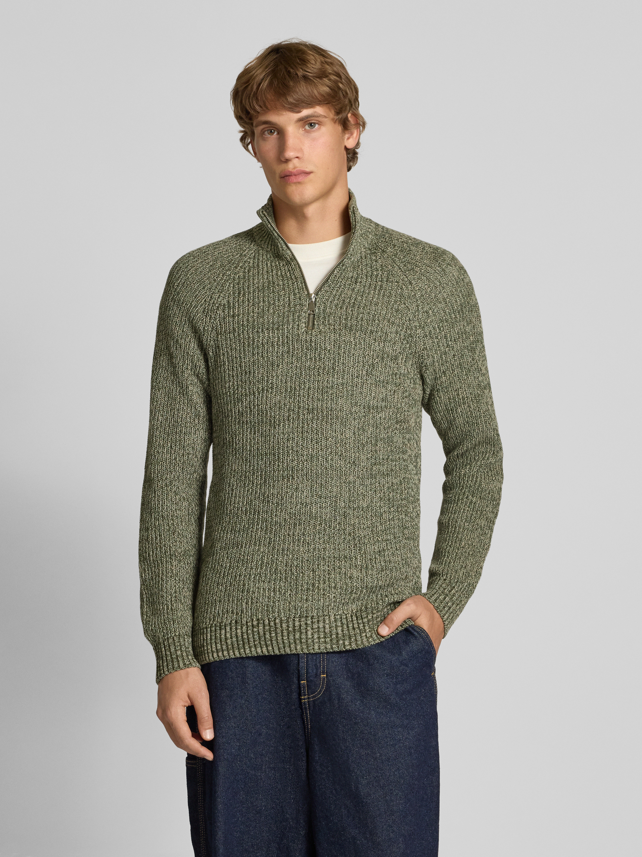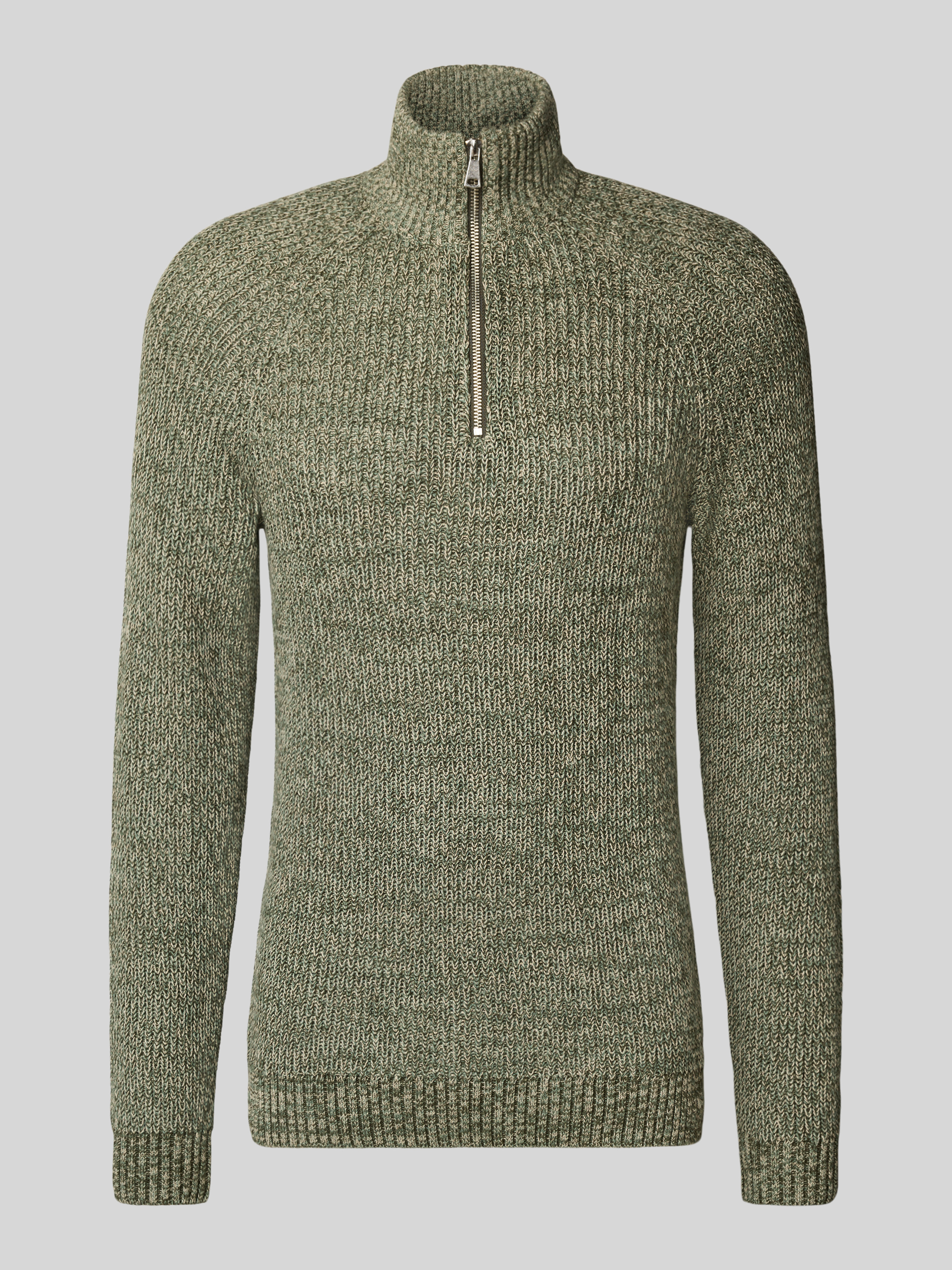 Slim fit gebreide pullover met ritssluiting, model 'Darik' in olijfgroen
