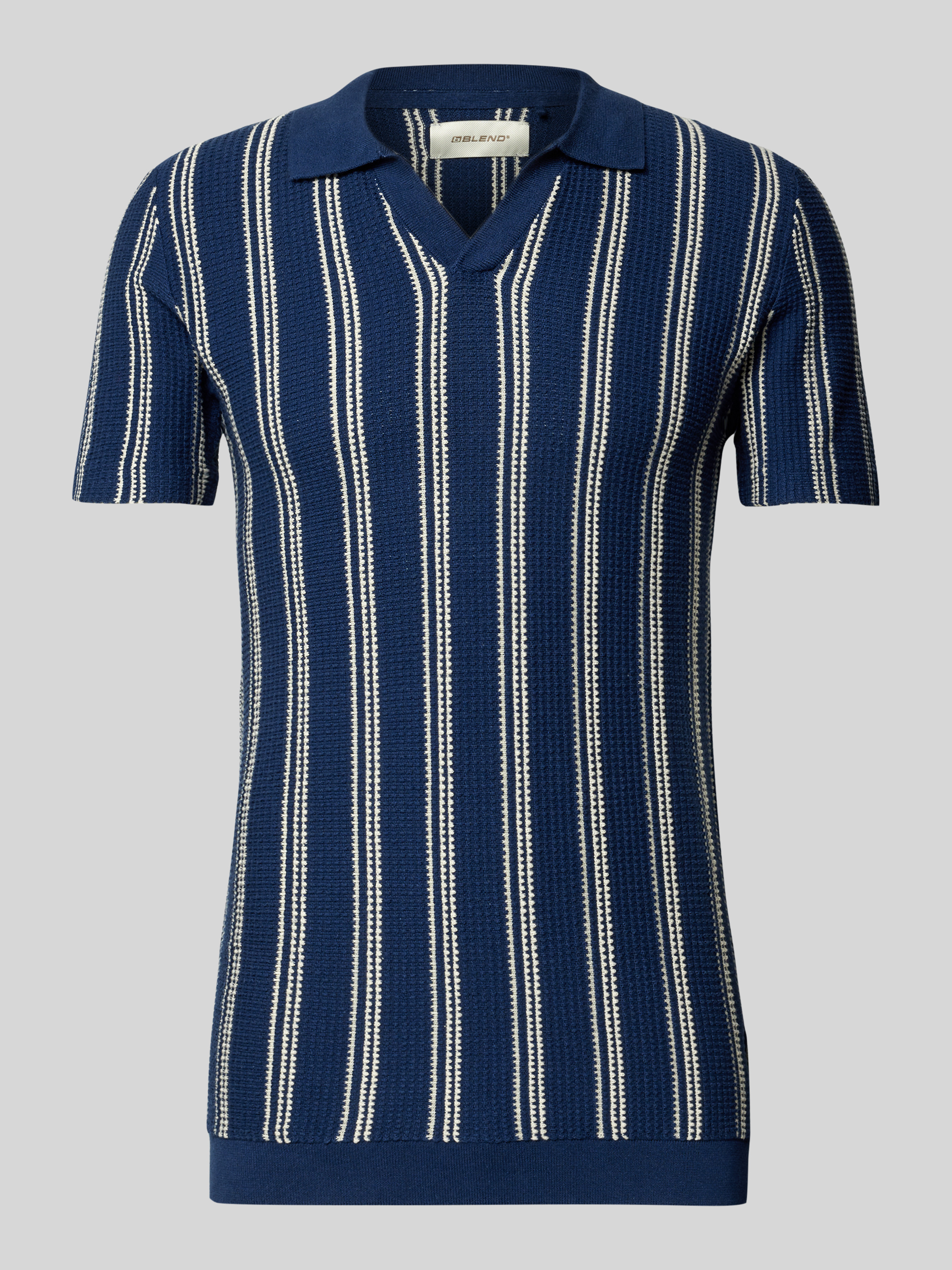 Slim fit poloshirt met ribboorden, model 'BHAMOS' in marineblauw