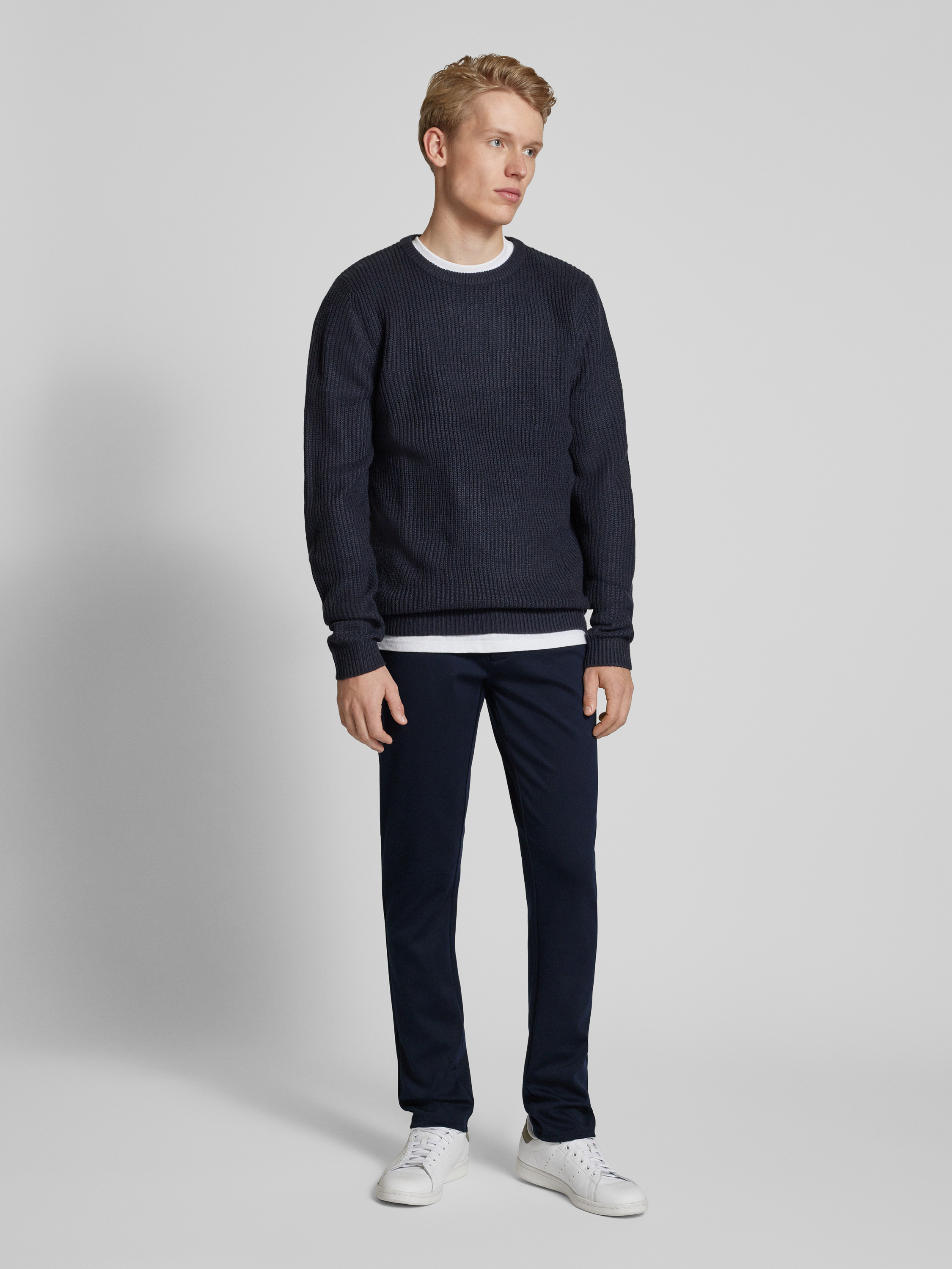Slim fit stoffen broek met steekzakken, model 'Morgan' in marineblauw