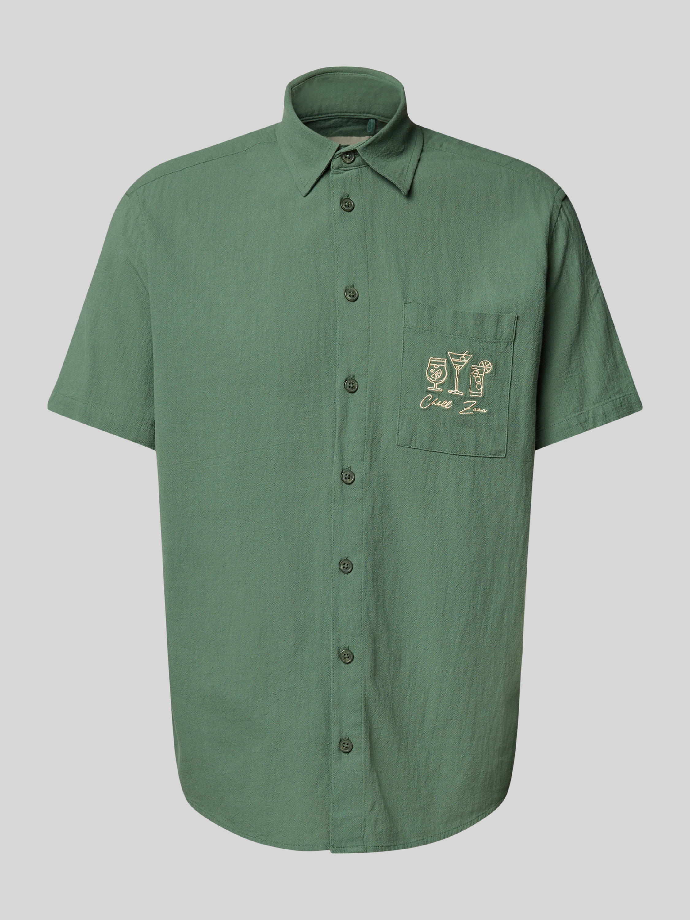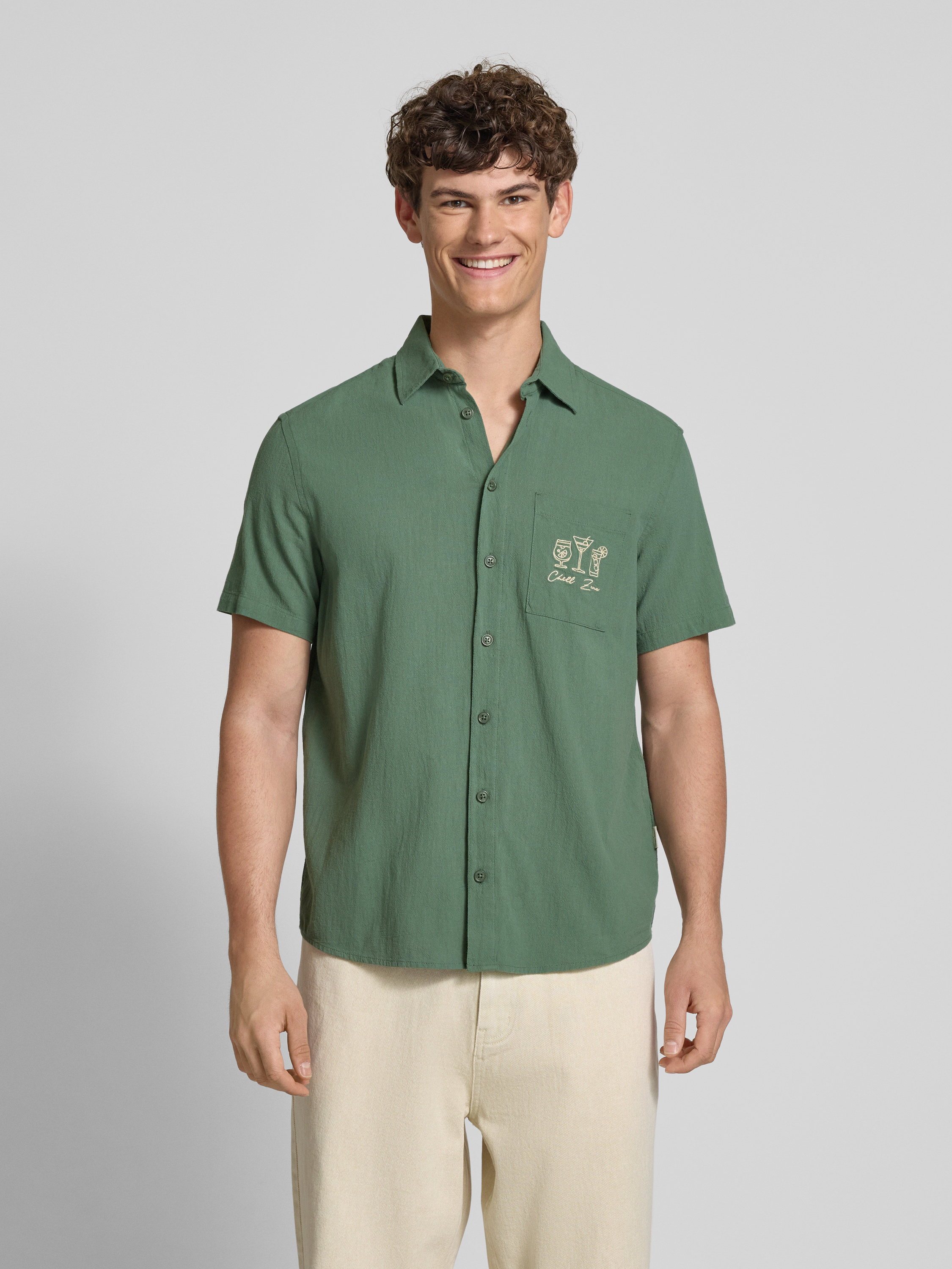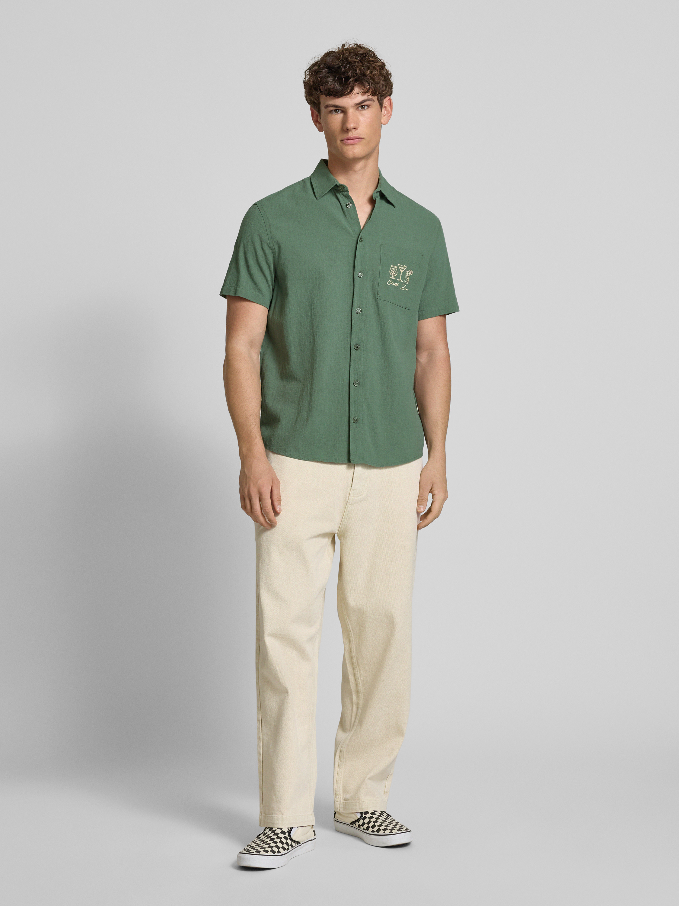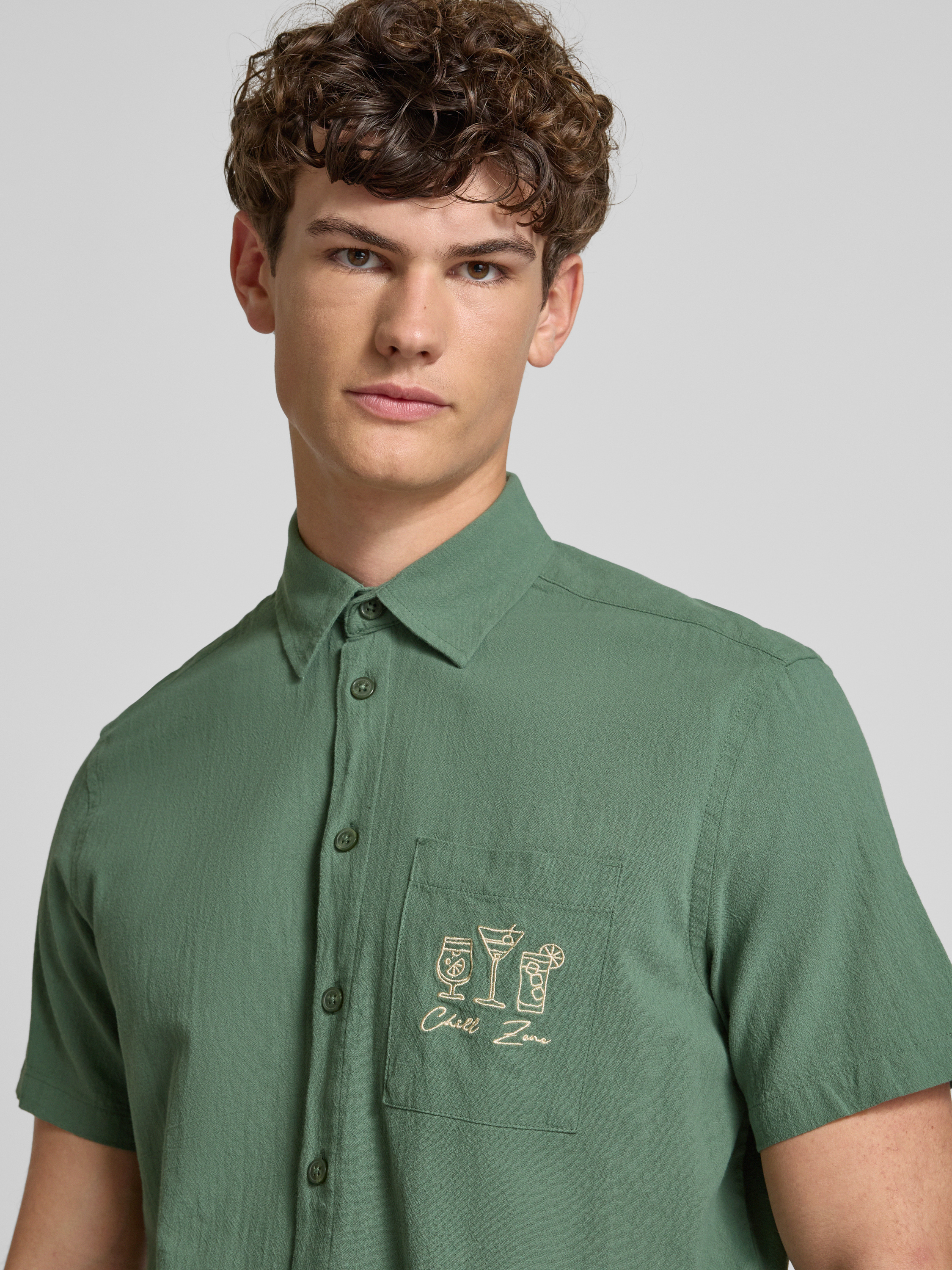 Slim fit vrijetijdsoverhemd met stitchingdetails, model 'APOLLO' in olijfgroen