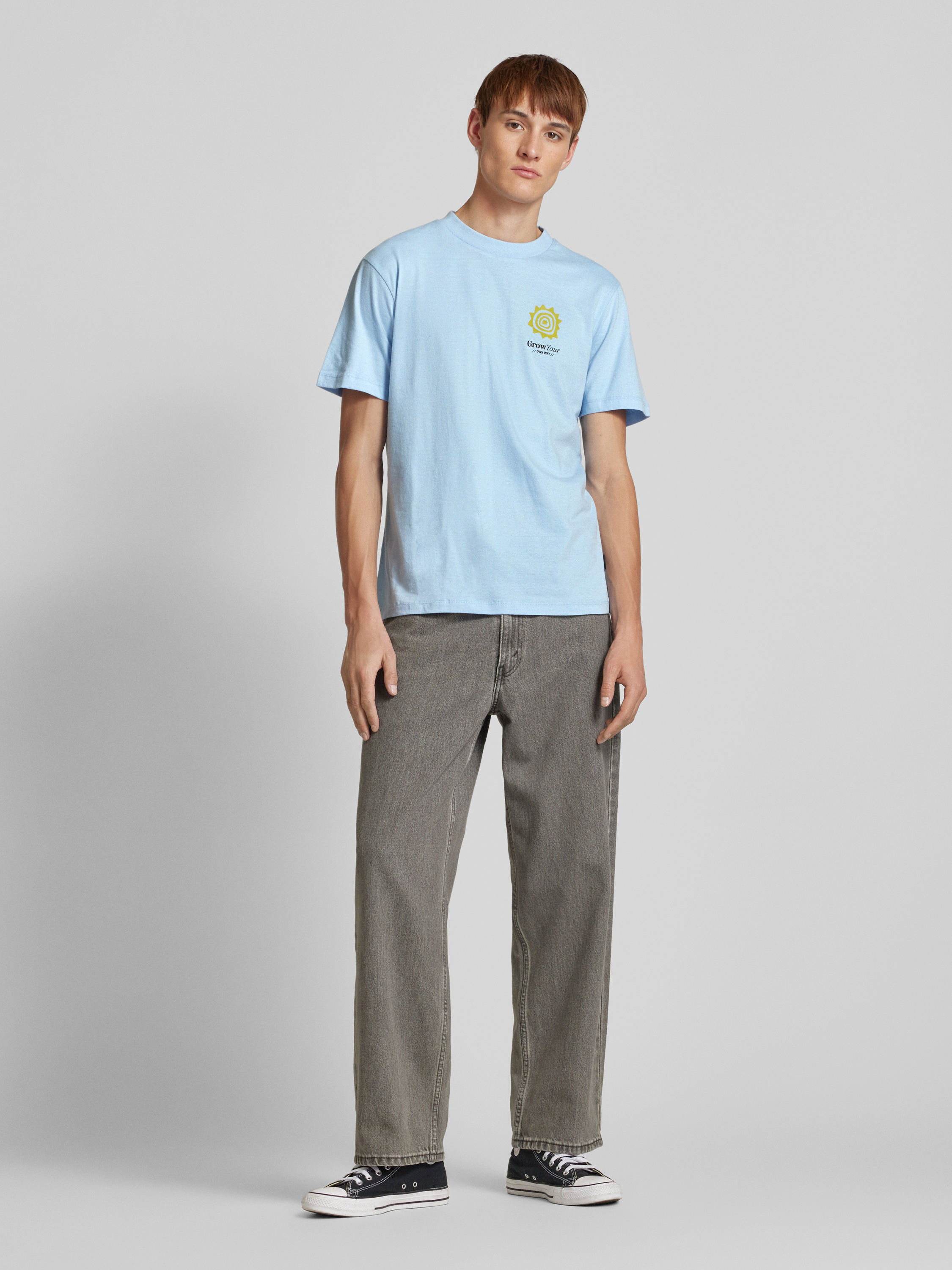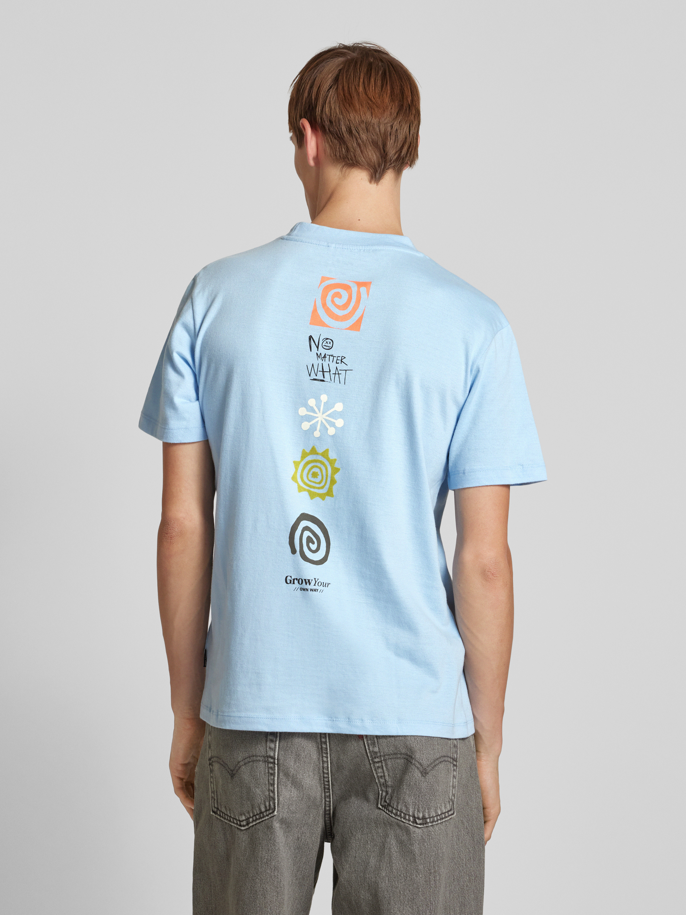 T-shirt met labelprint, model 'JAISON' in lichtblauw