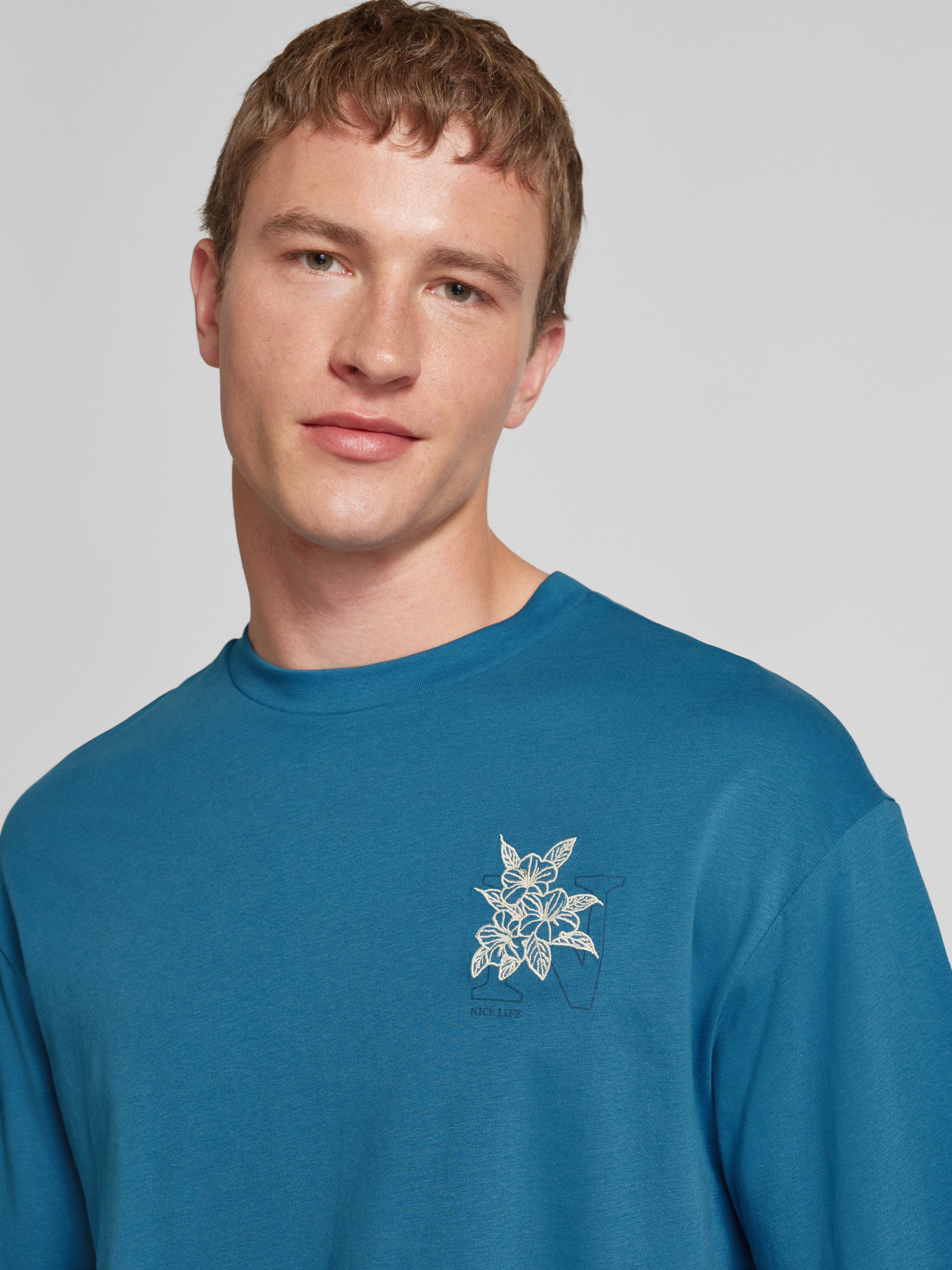 T-shirt met motiefstitching, model 'JIM' in blauw