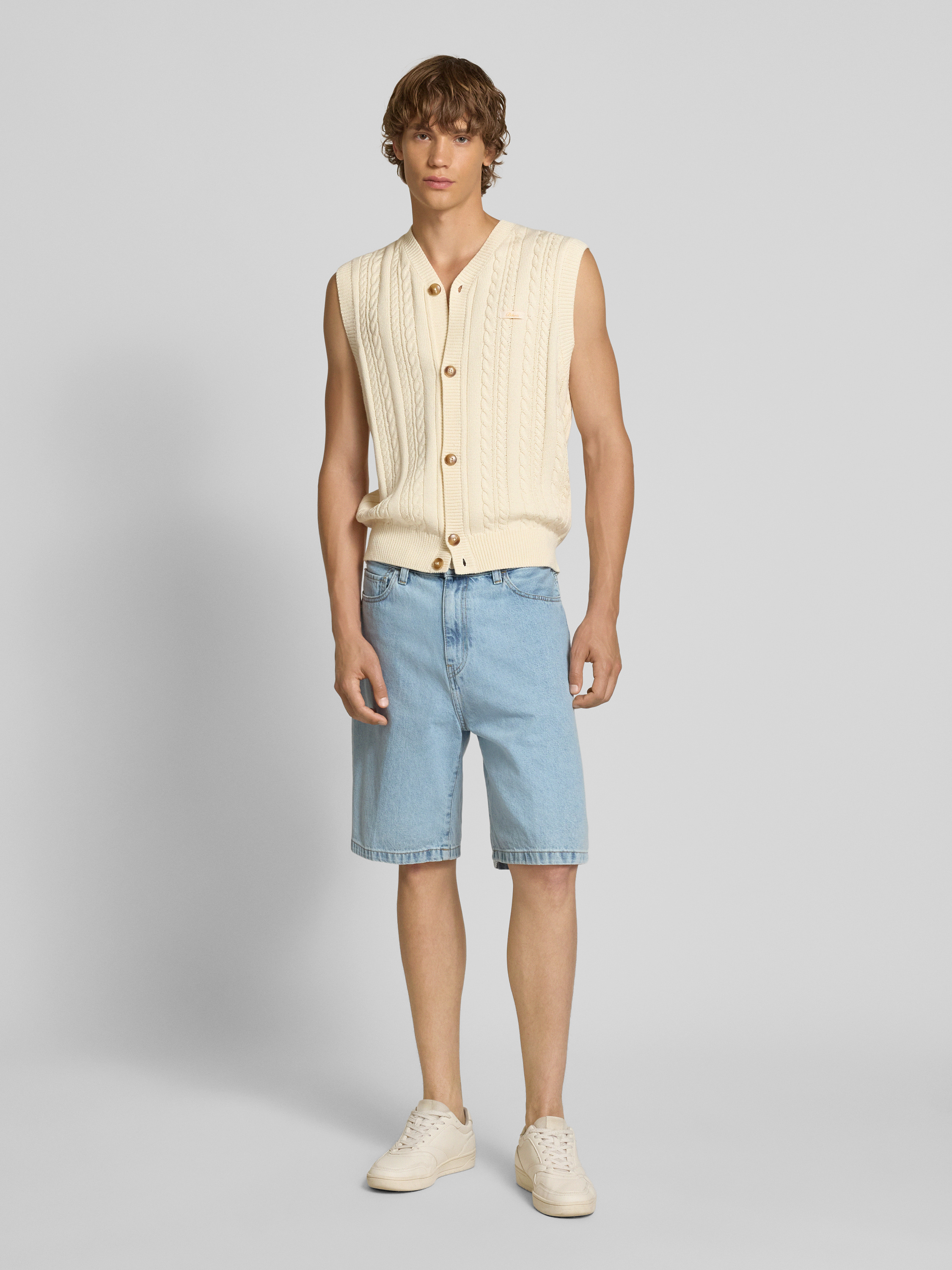 Mouwloos vest met kabelpatroon in offwhite