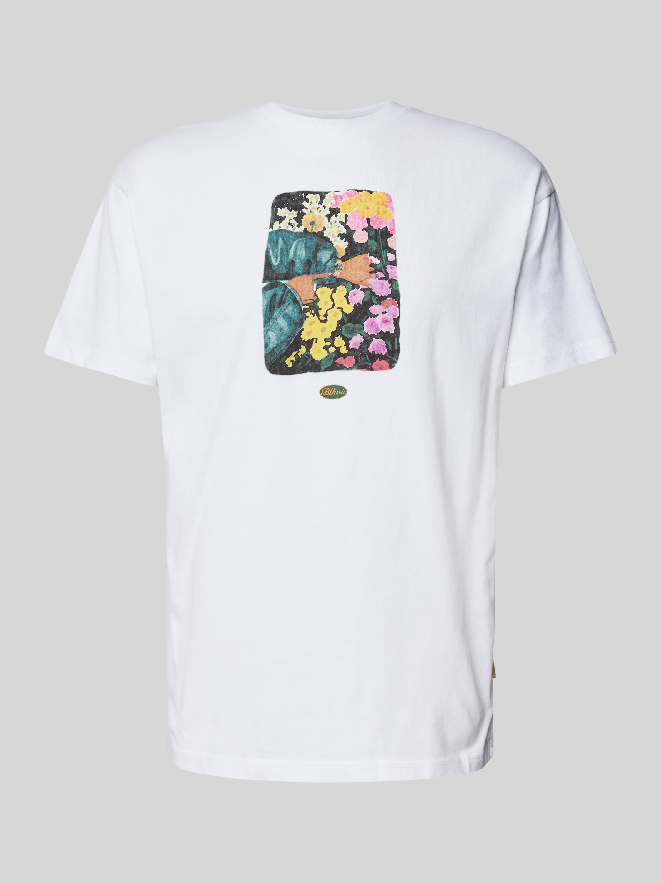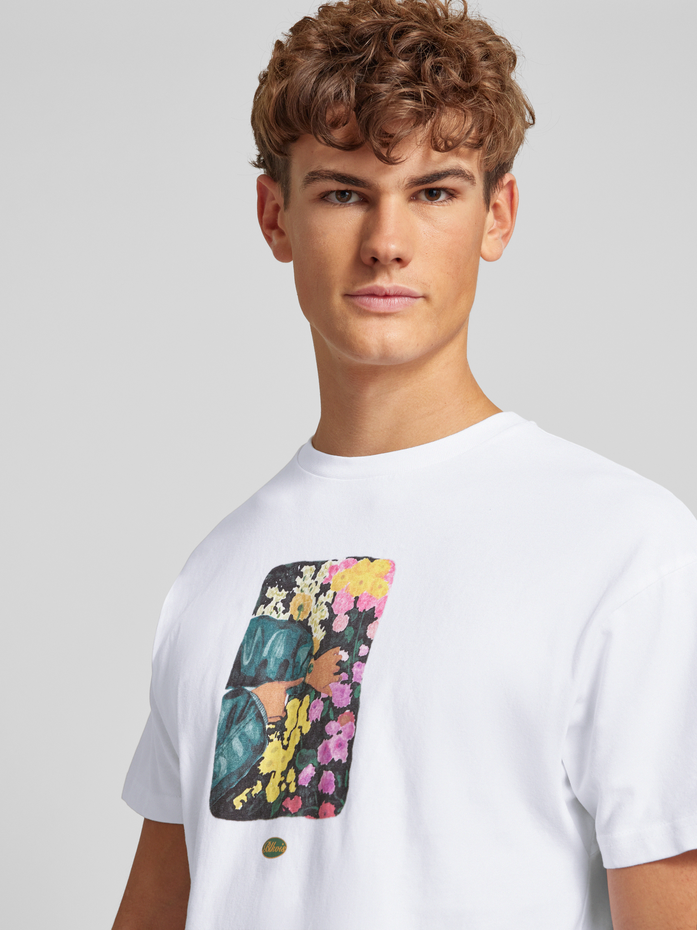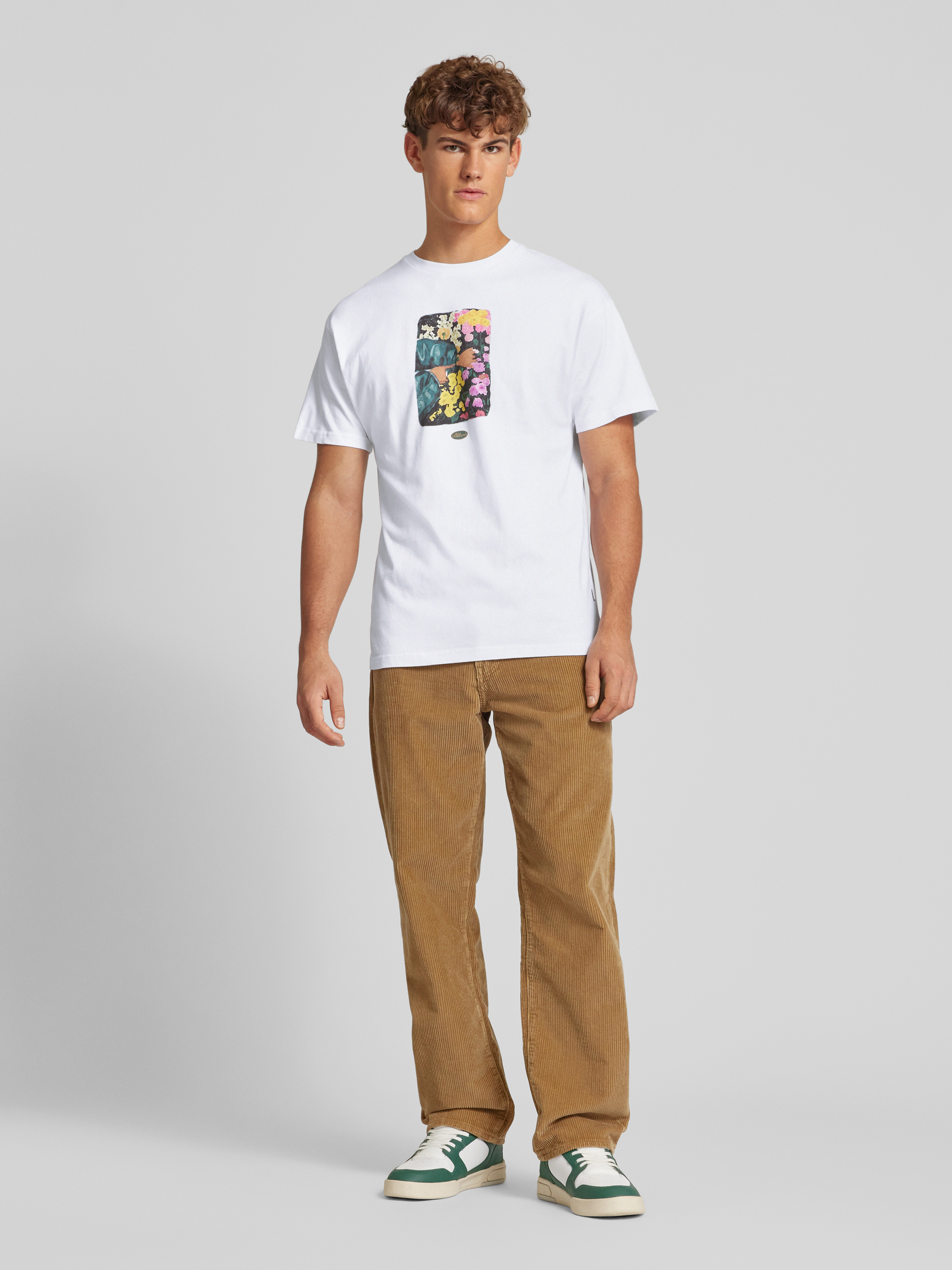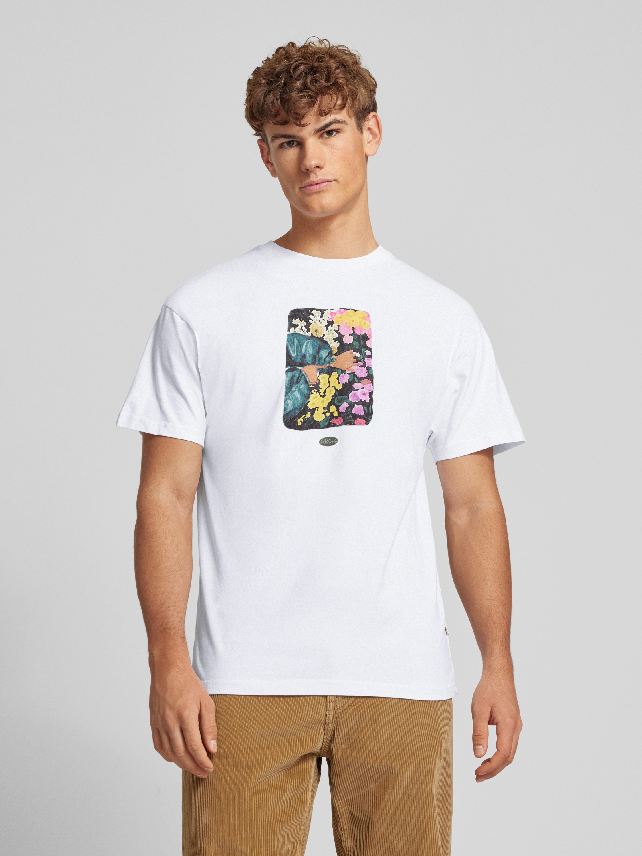 T-shirt met geribde ronde hals, model 'DAYDATE' in wit