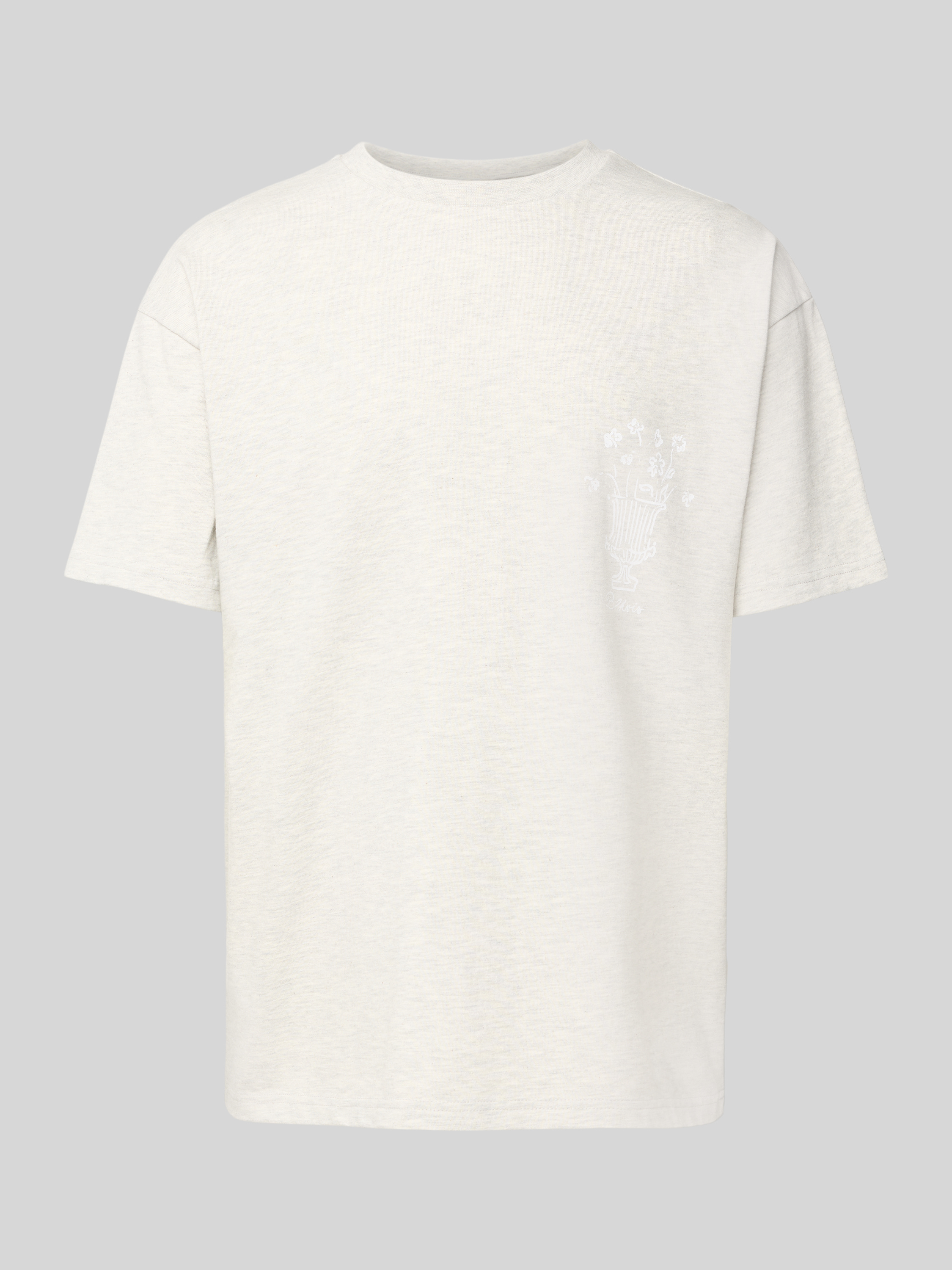 T-shirt met motief- en labelprint, model 'VASO' in lichtgrijs gemêleerd