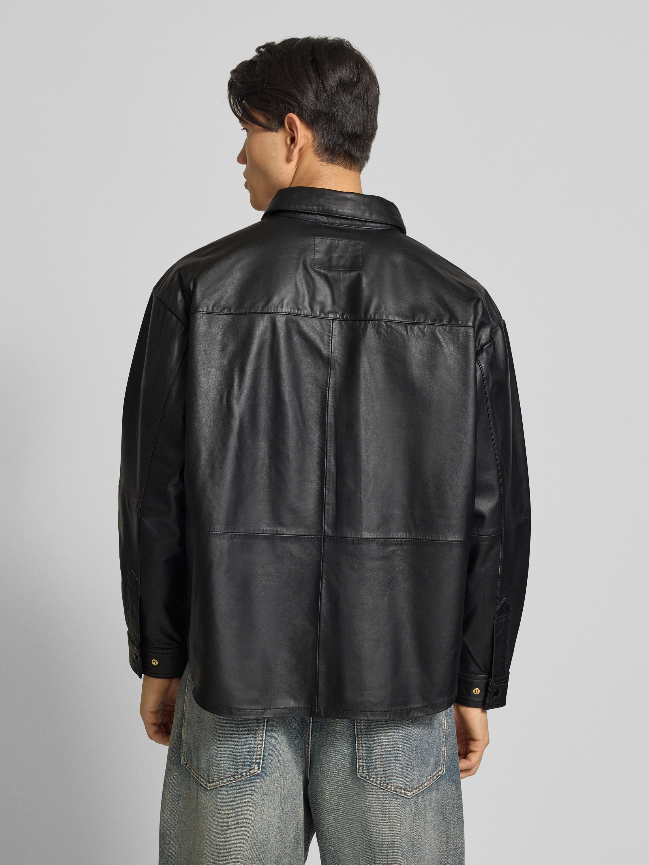 Vrijetijdsoverhemd in leerlook in zwart
