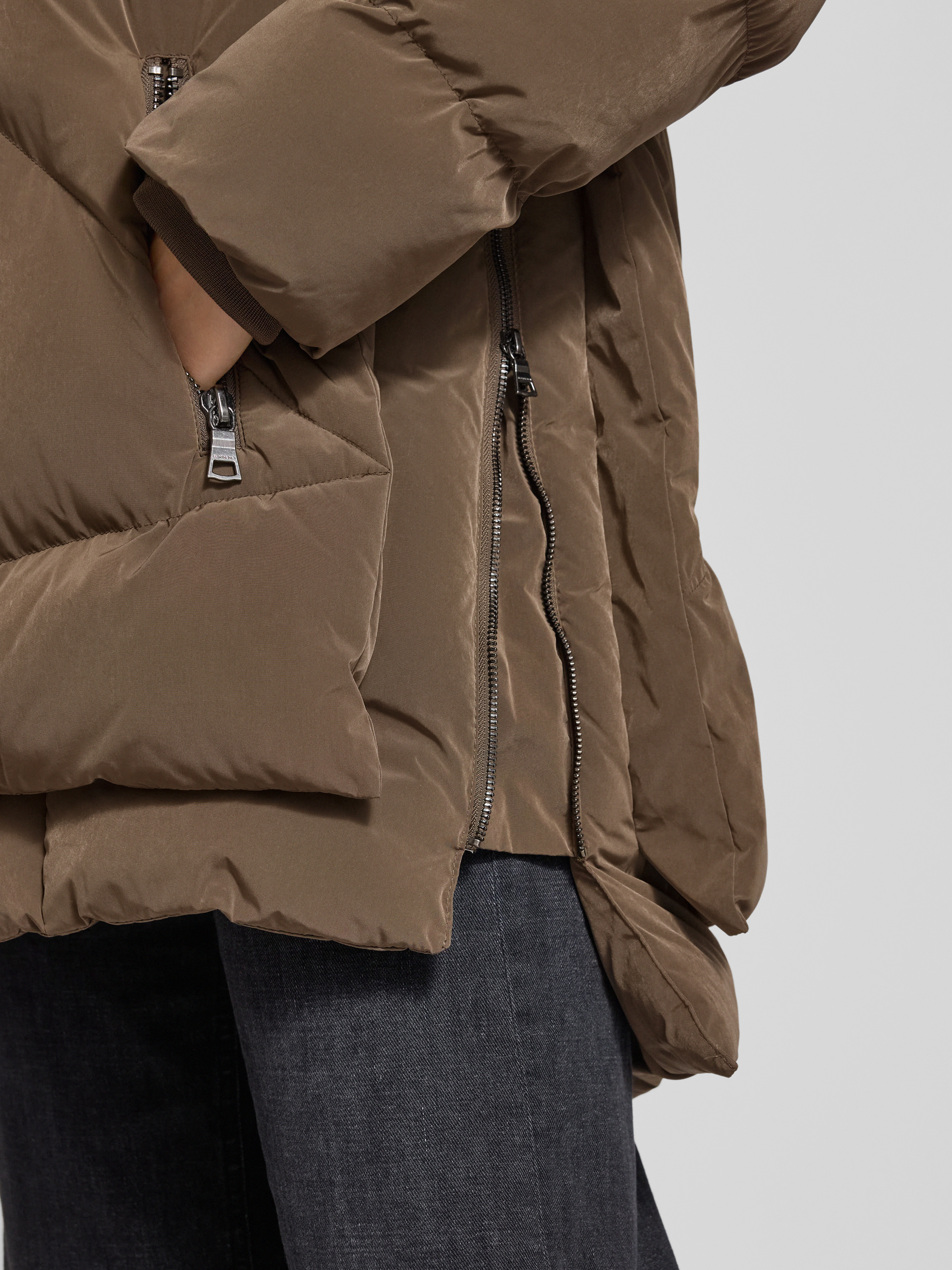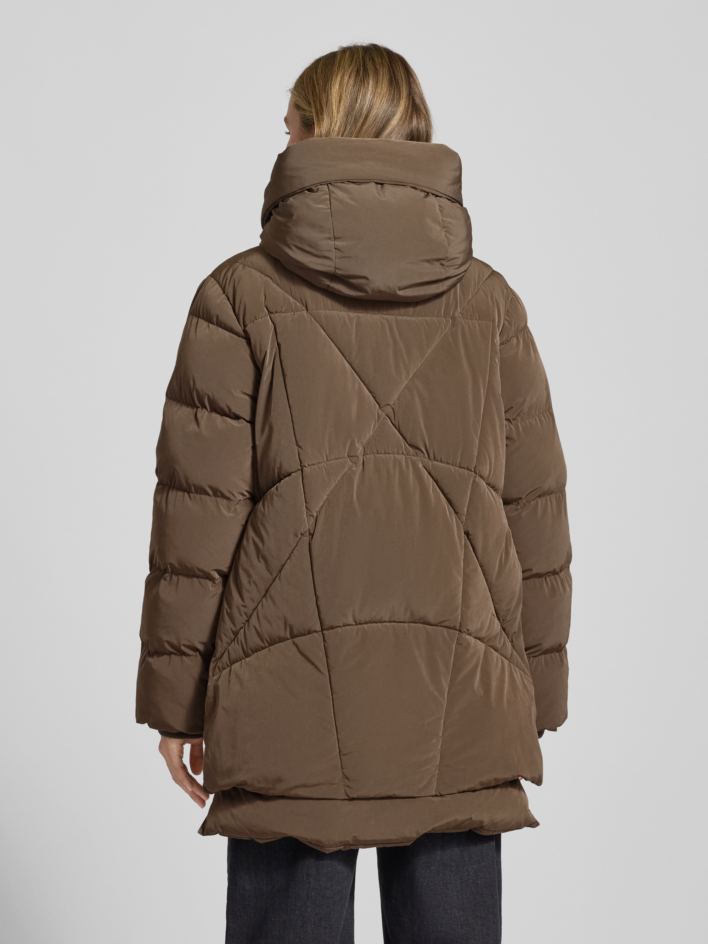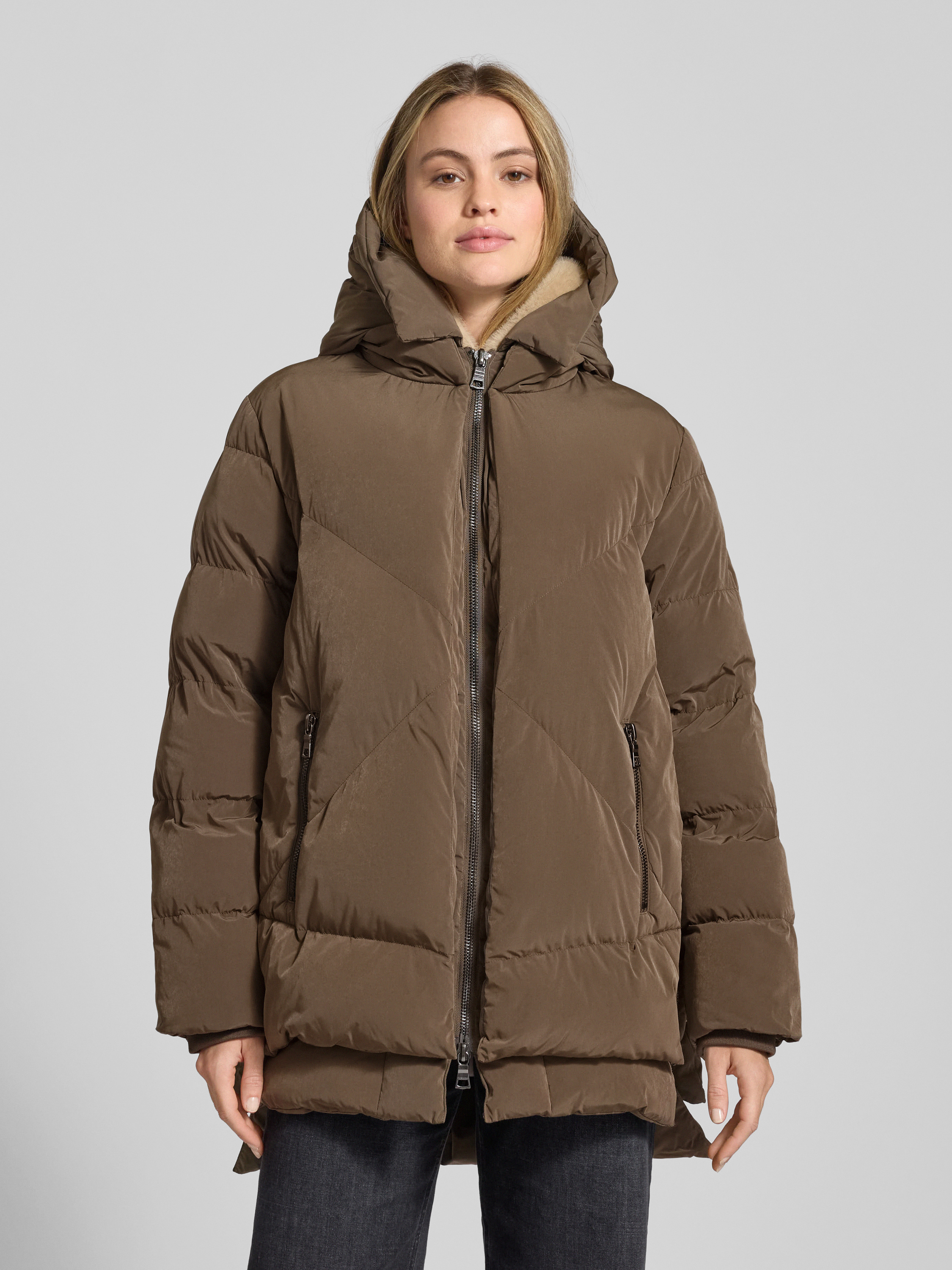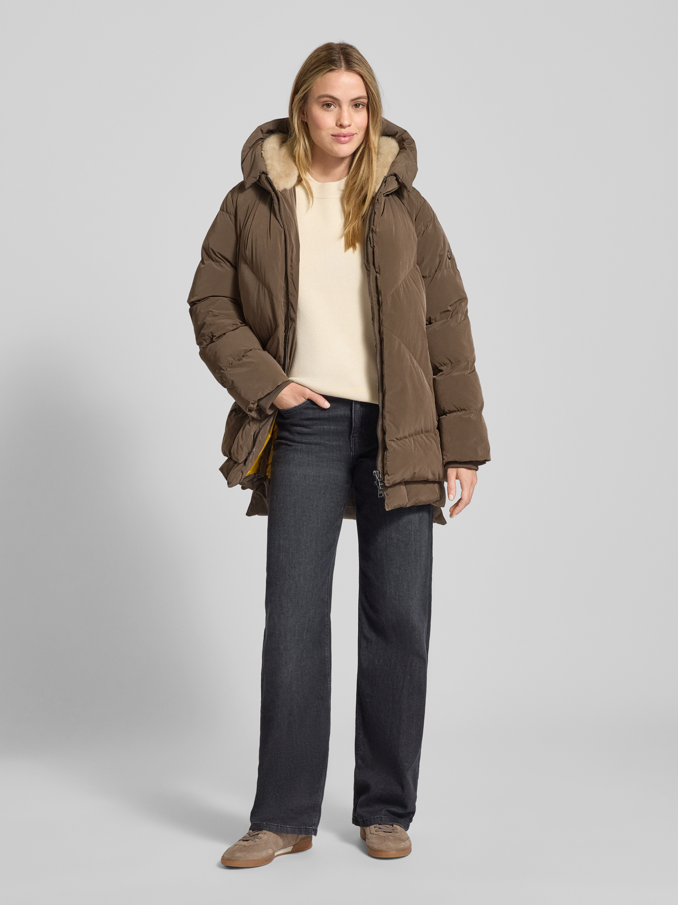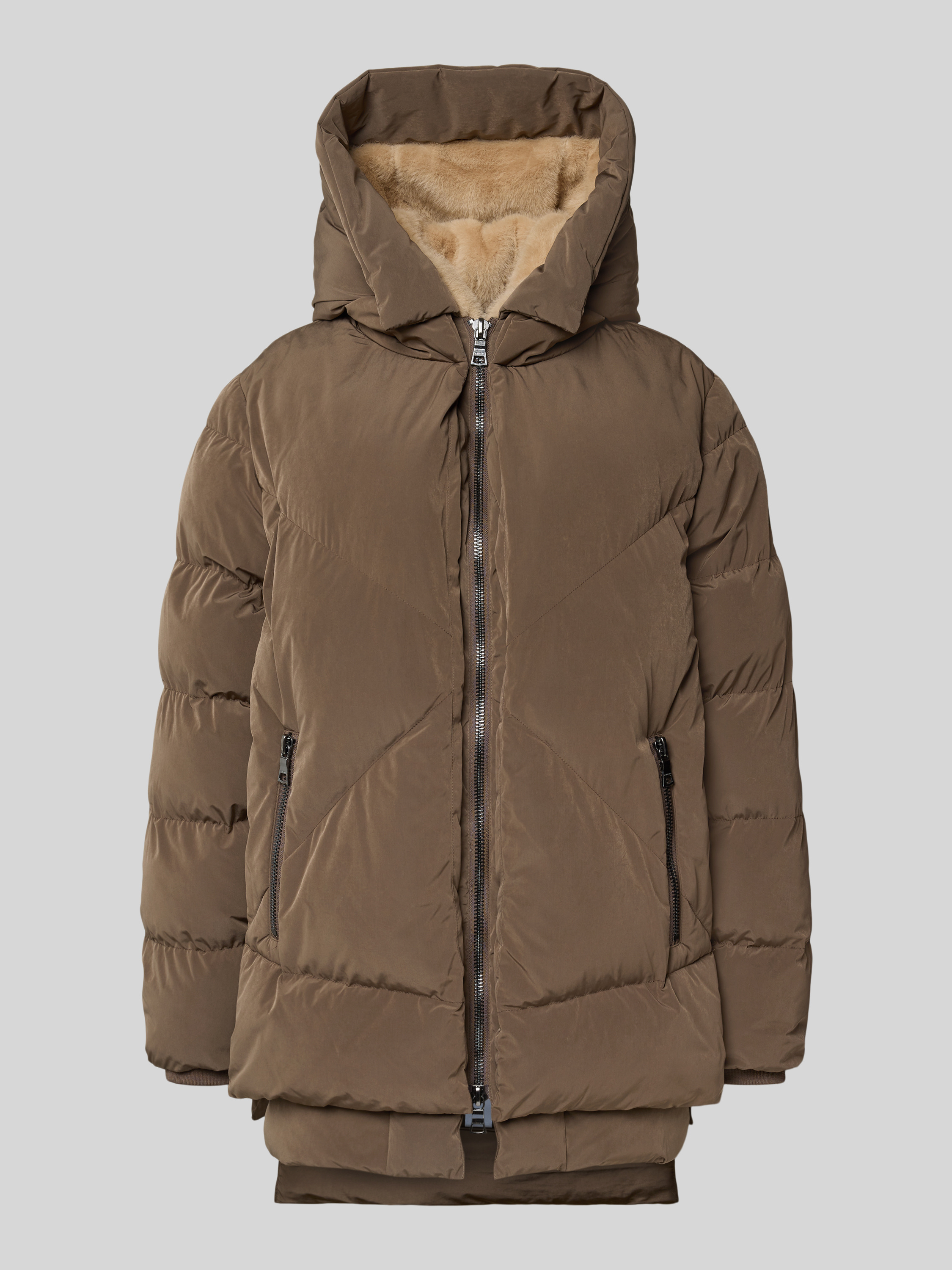 Blonde No. 8Lange winterjas met imitatiebont, model 'FROST' in taupe