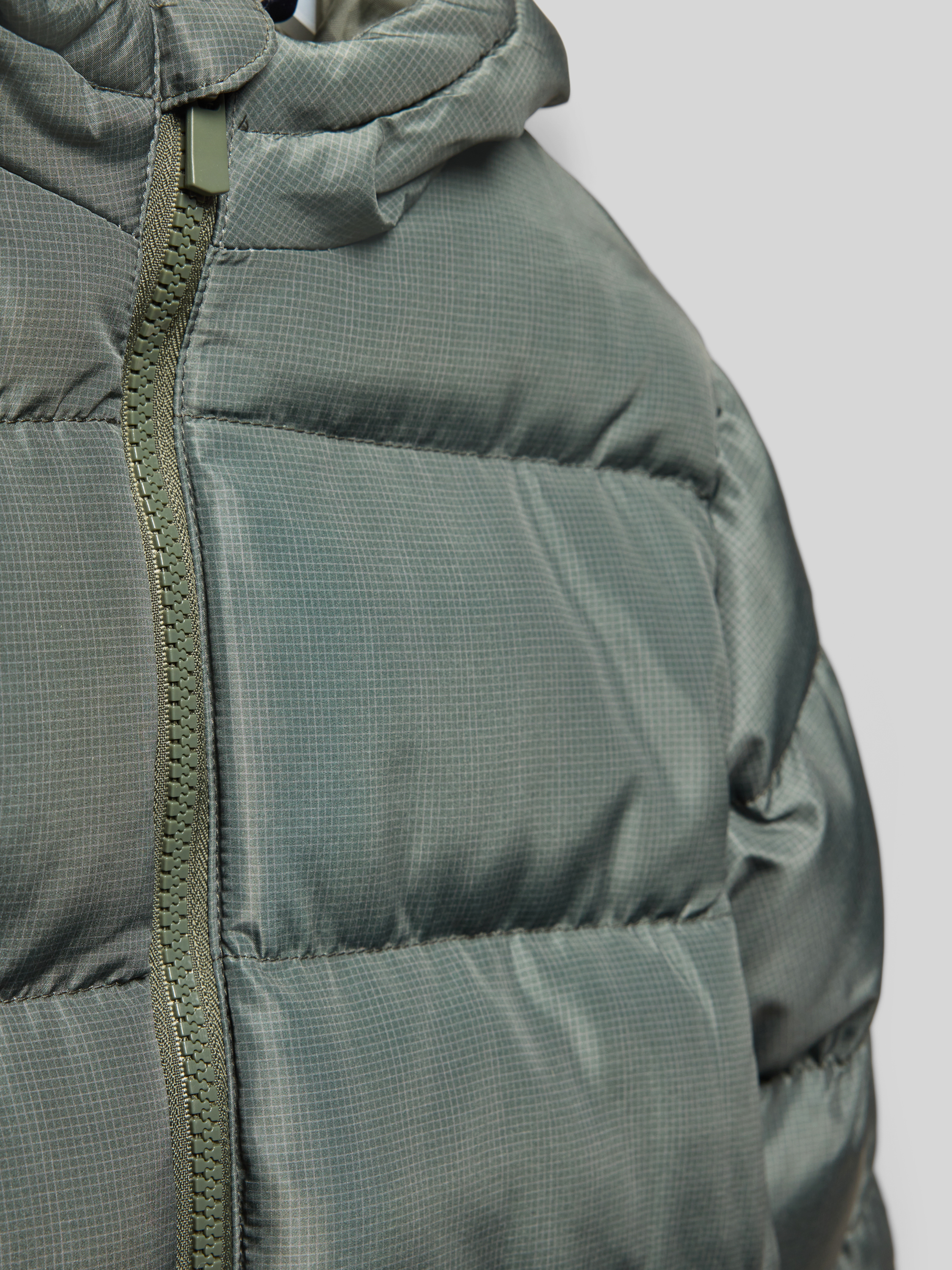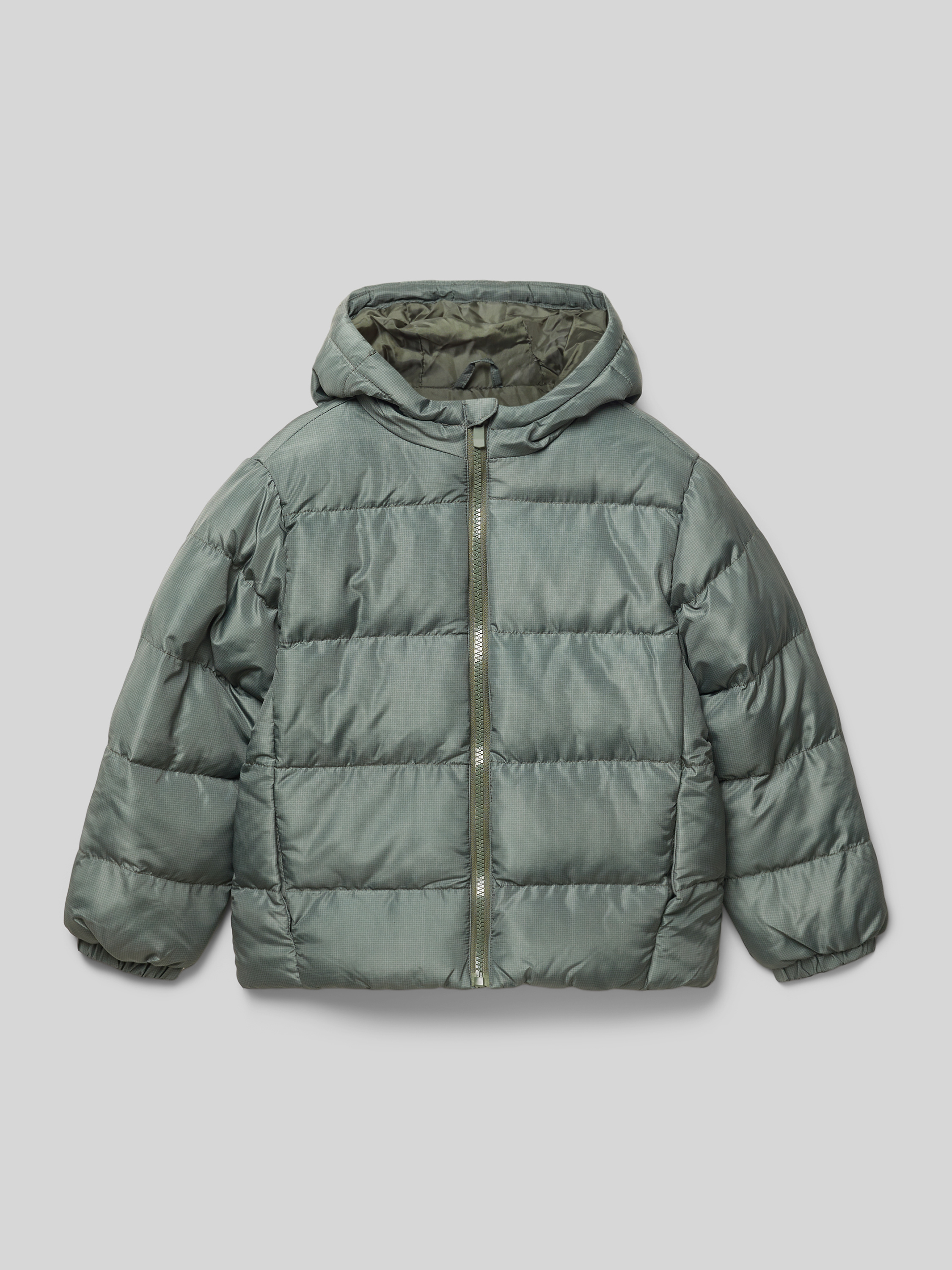 Gewatteerd regular fit jack met capuchon in olijfgroen