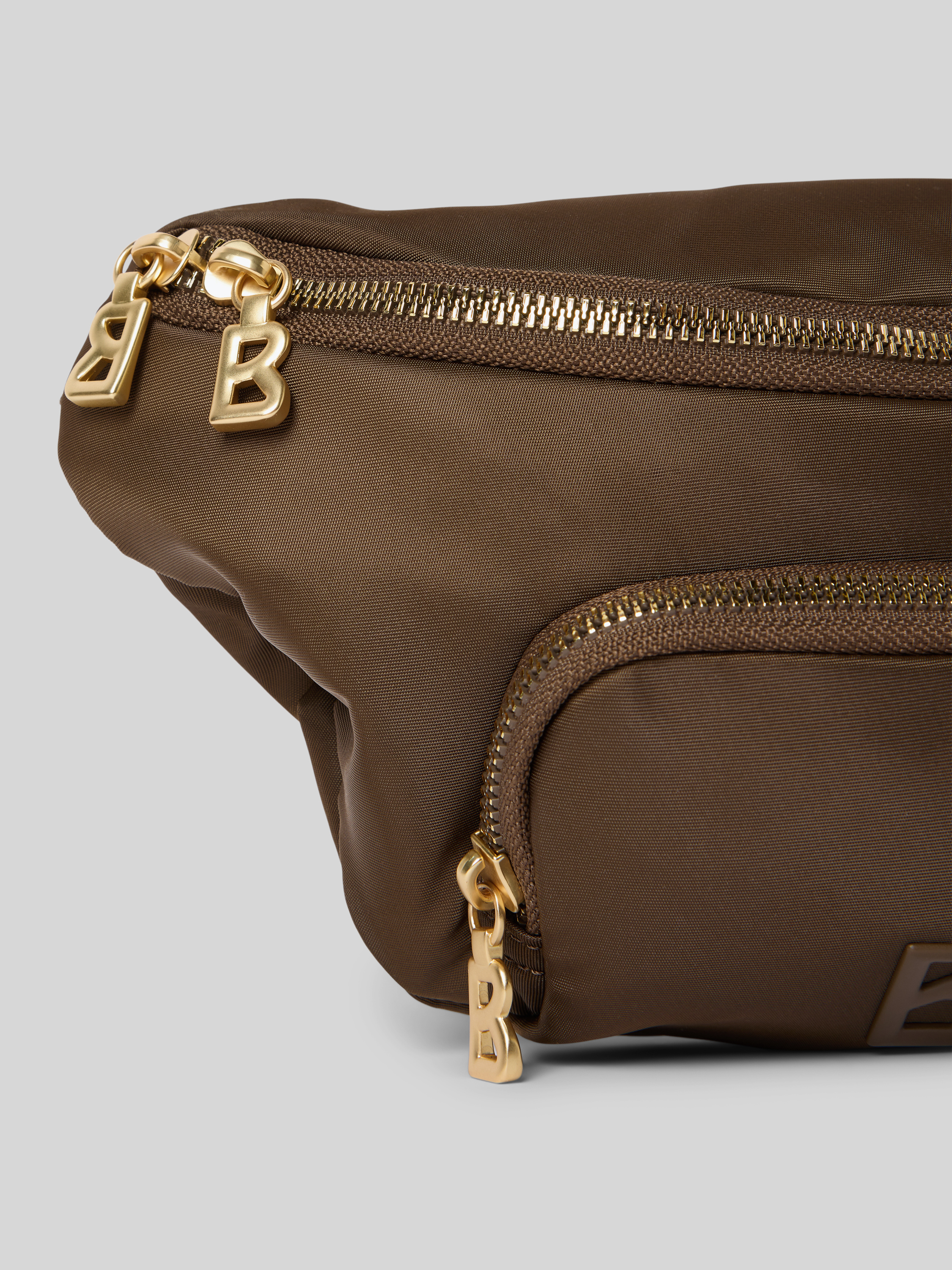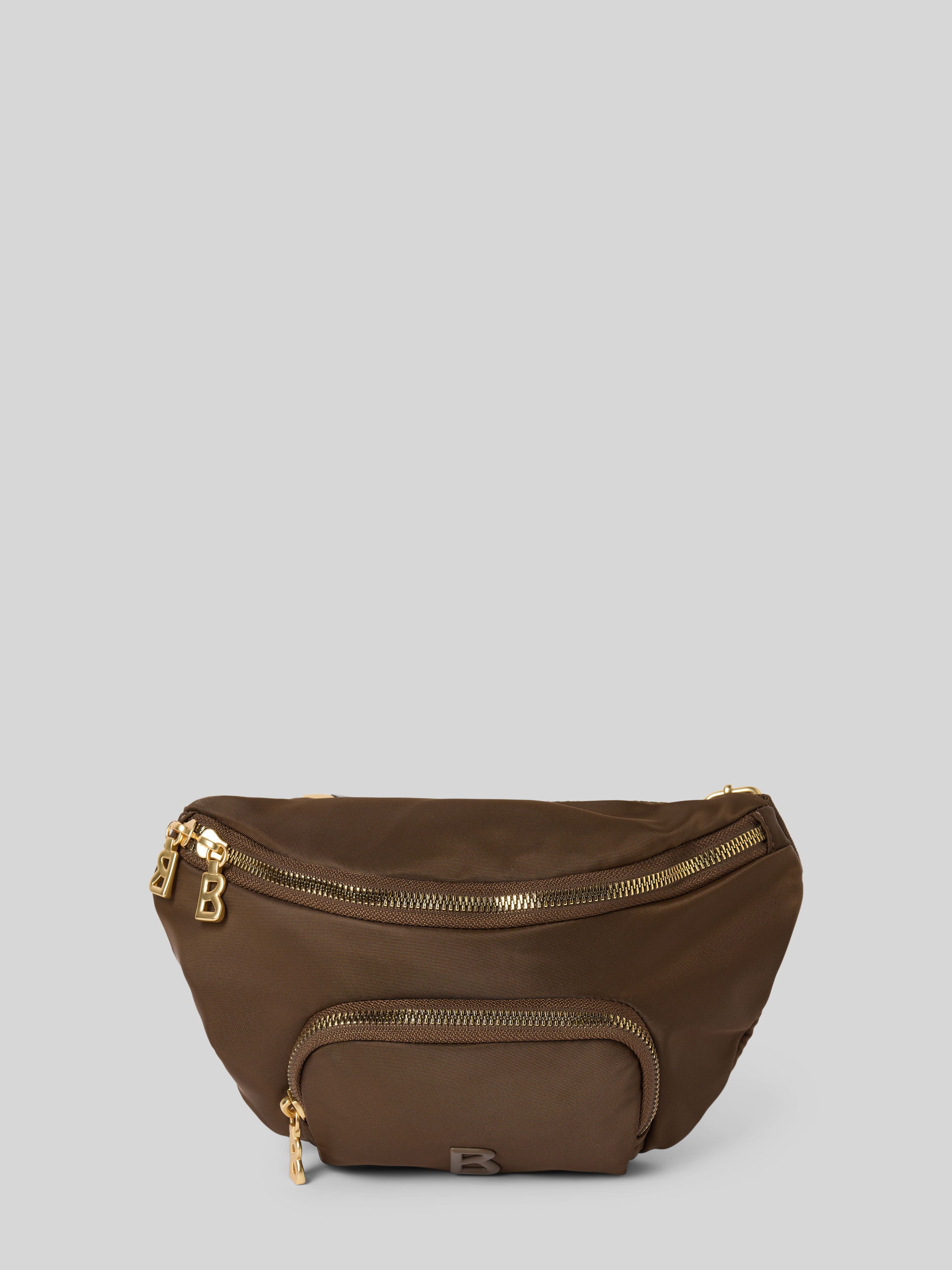 Heuptasje met logo-applicaties, model 'Janica' in donkerbruin