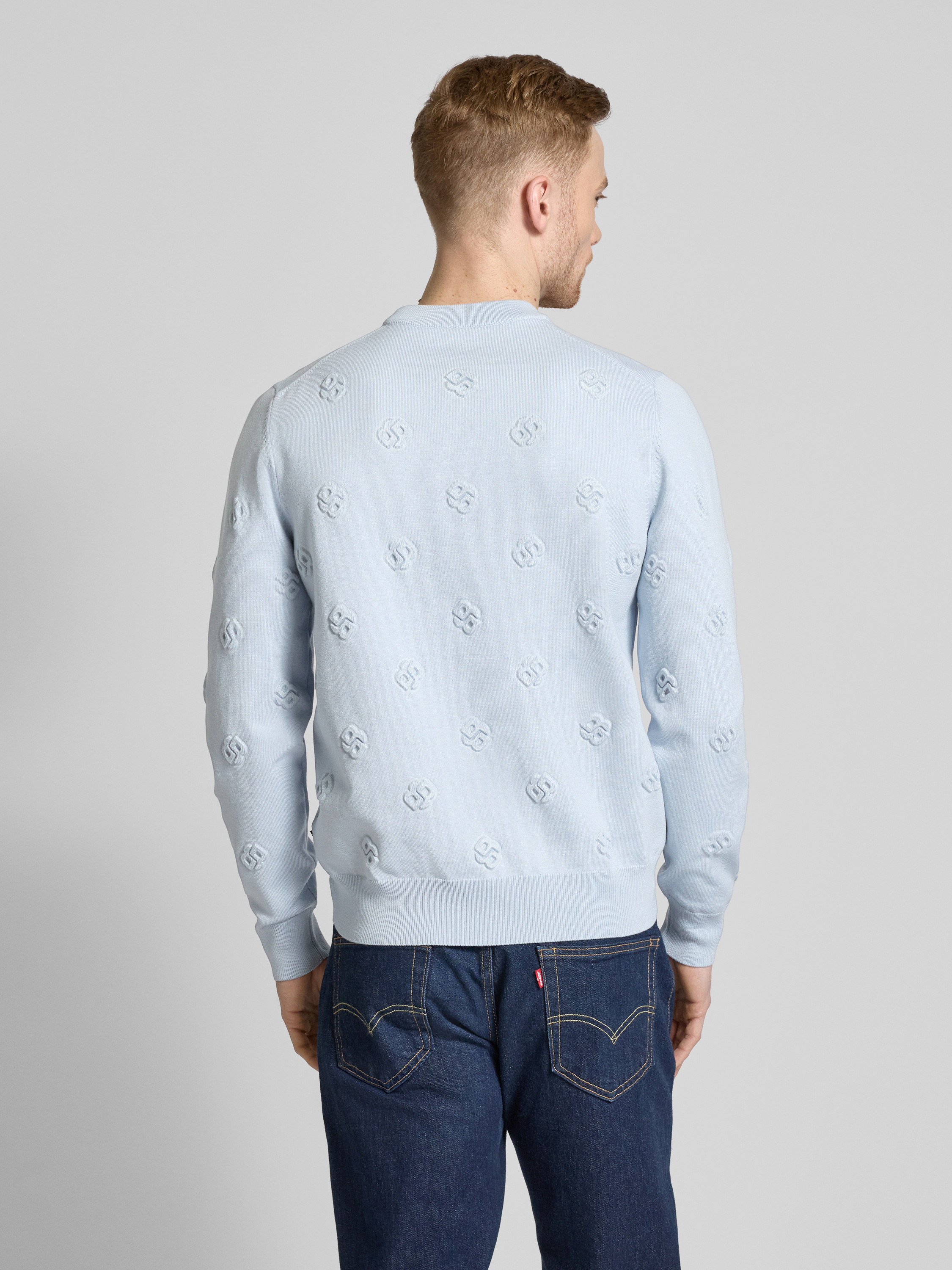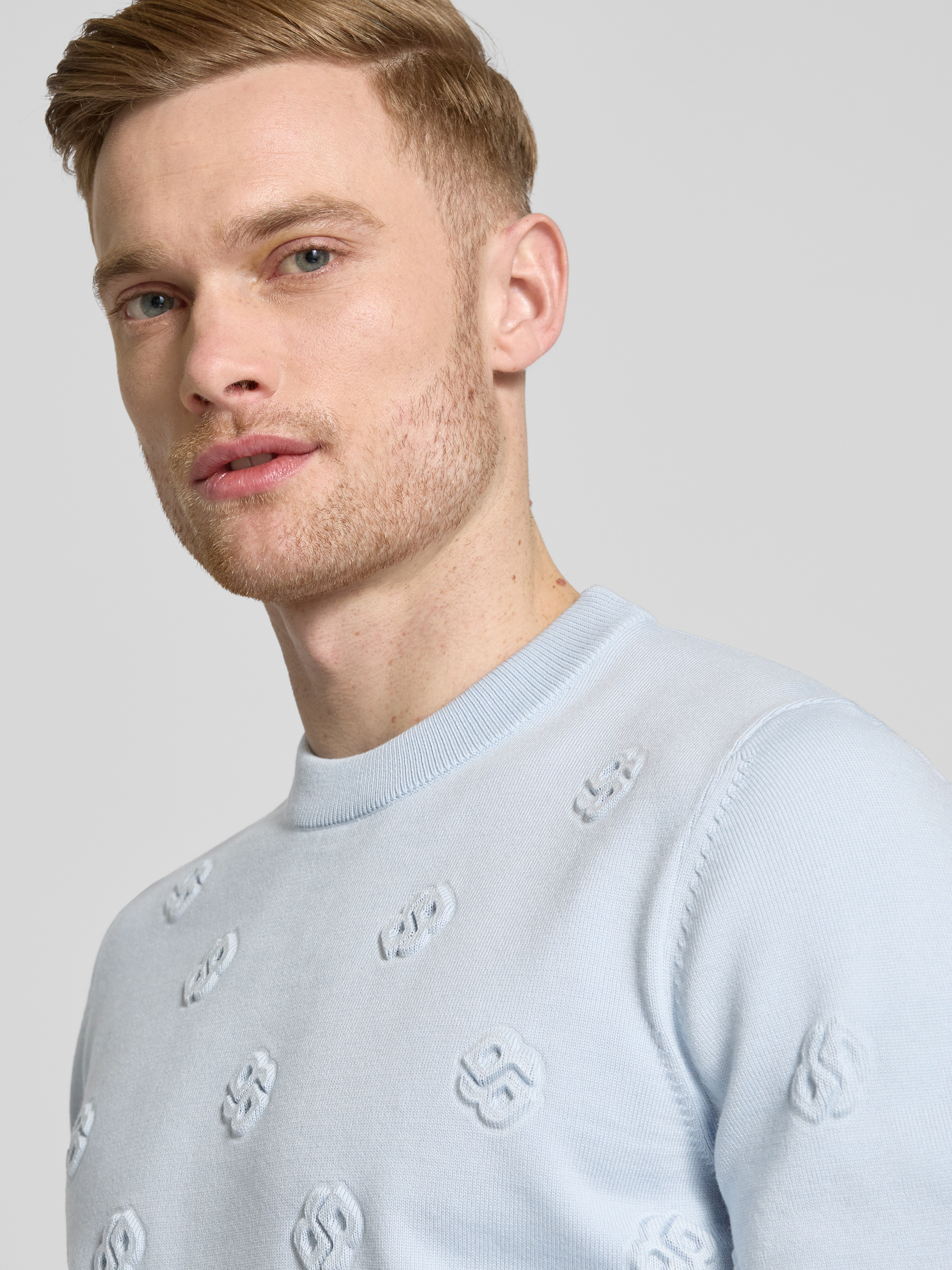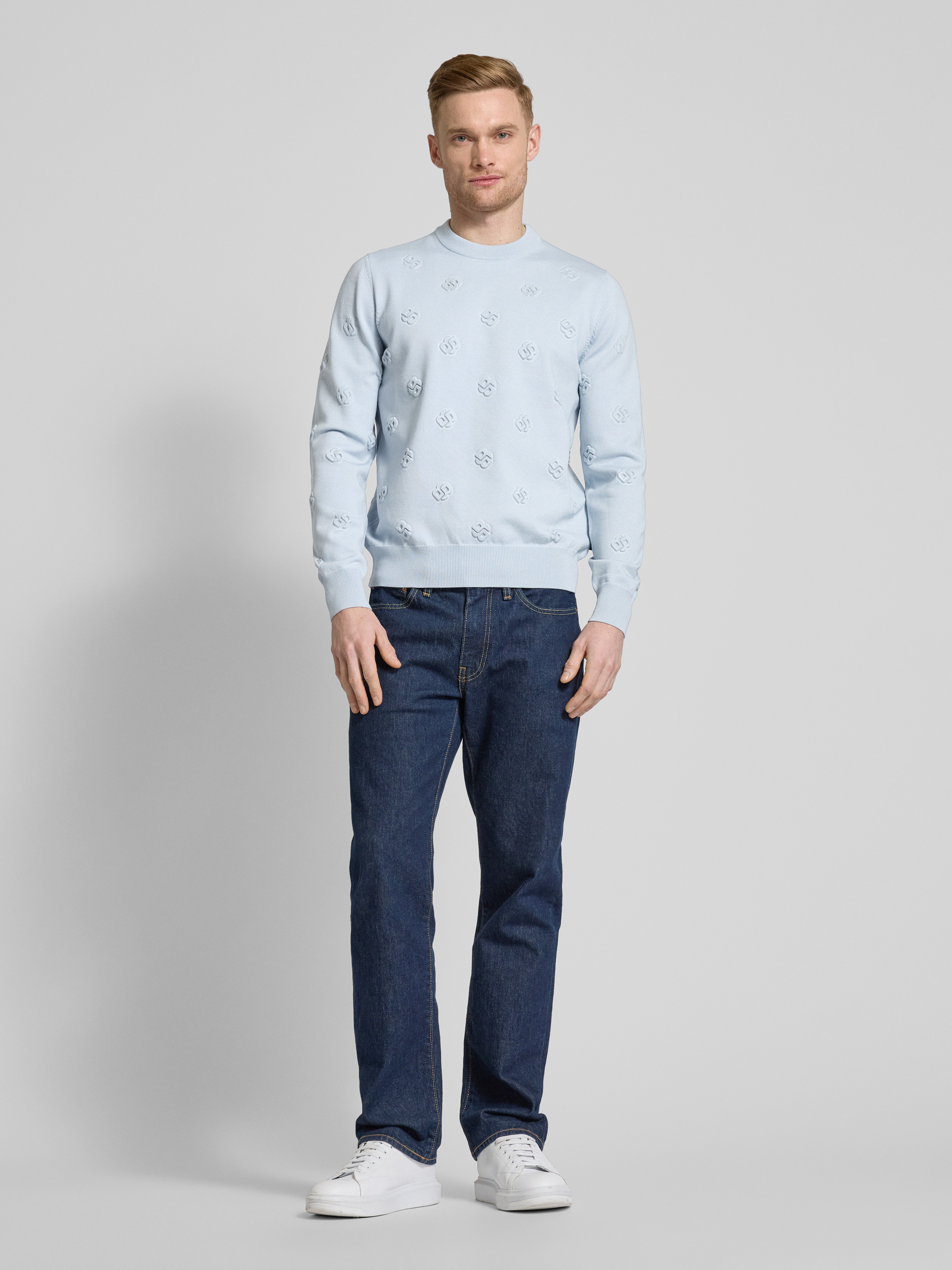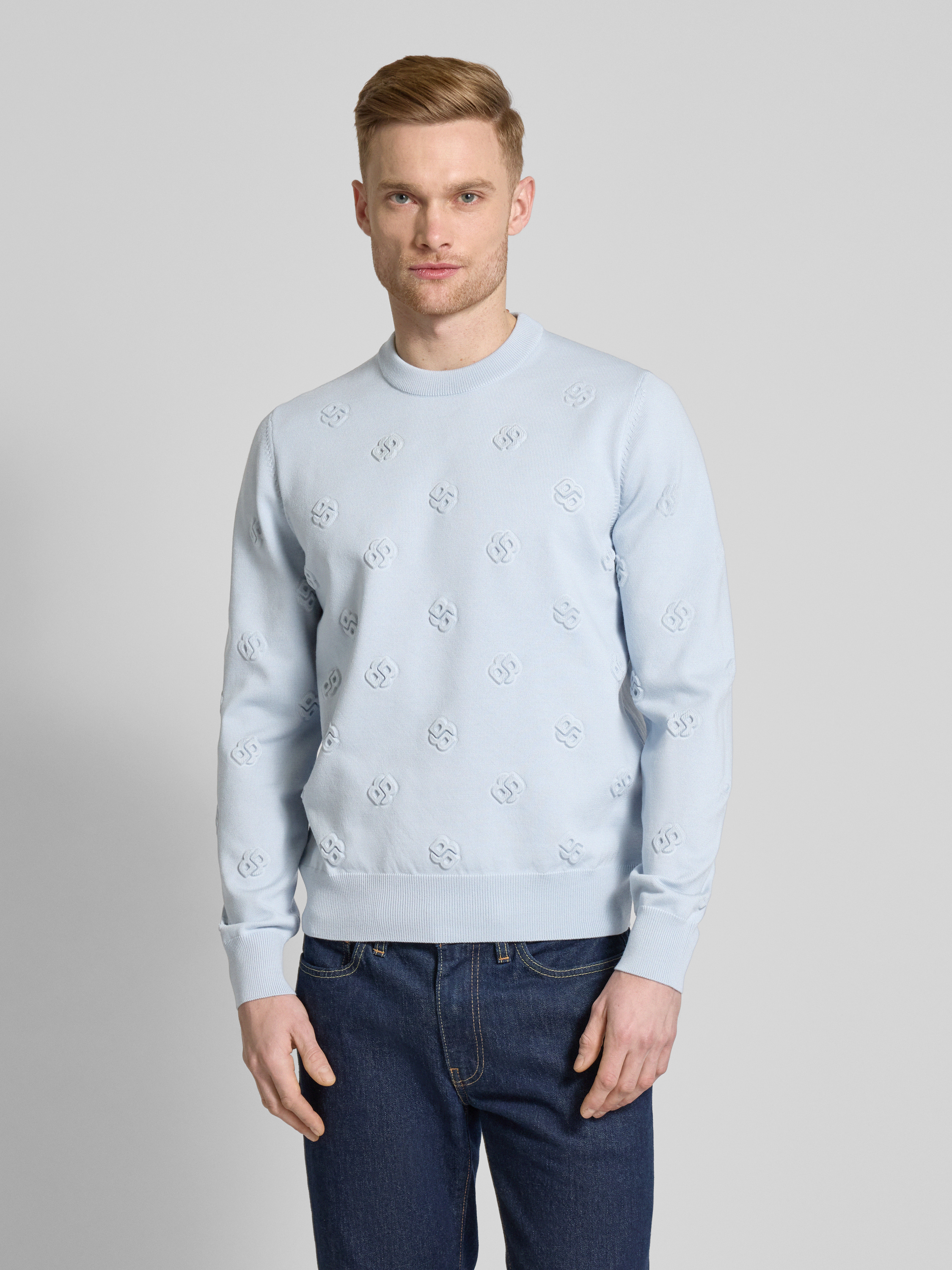 BOSSGebreide pullover met ronde hals, model 'Bahelo' in lichtblauw