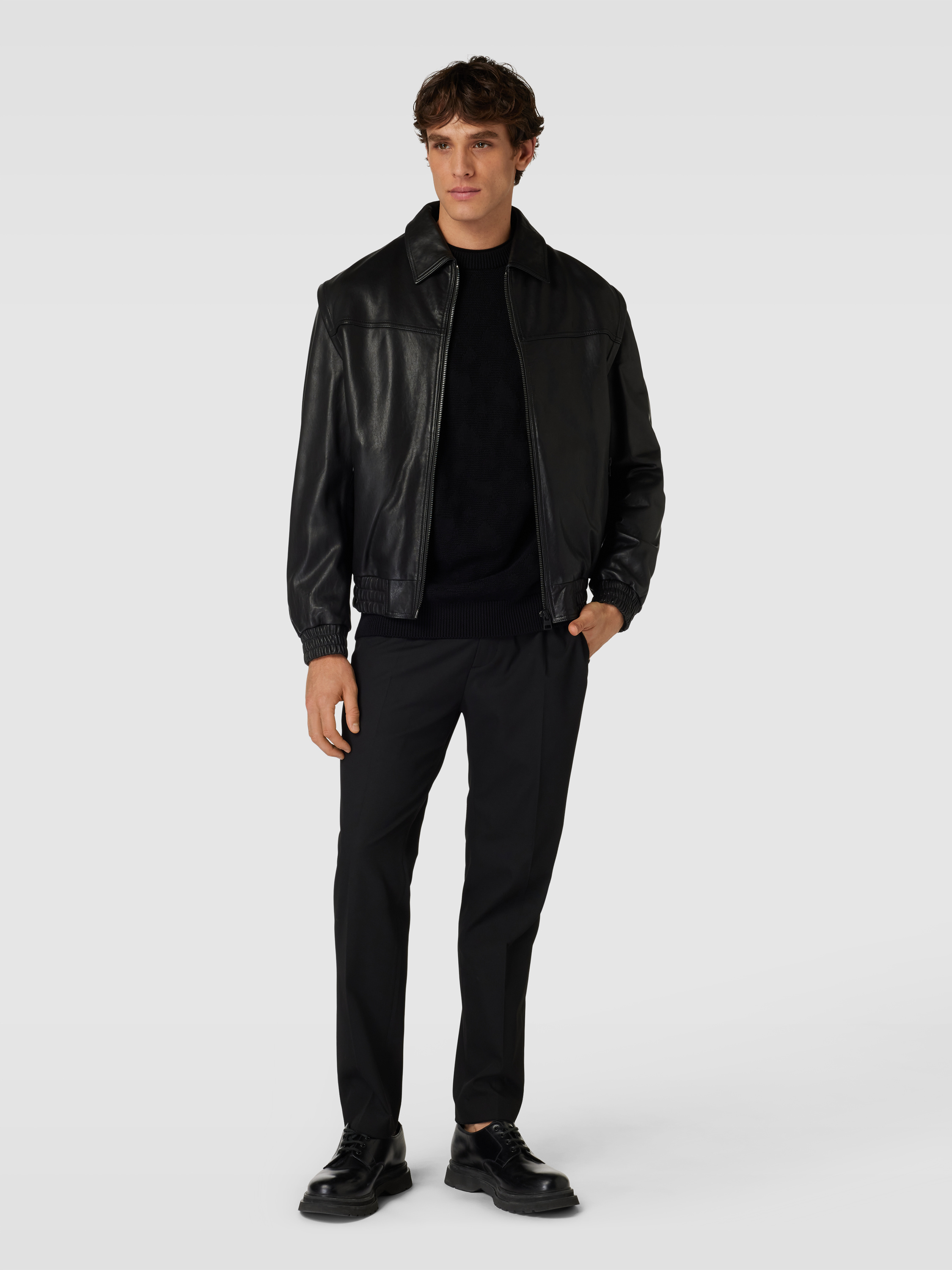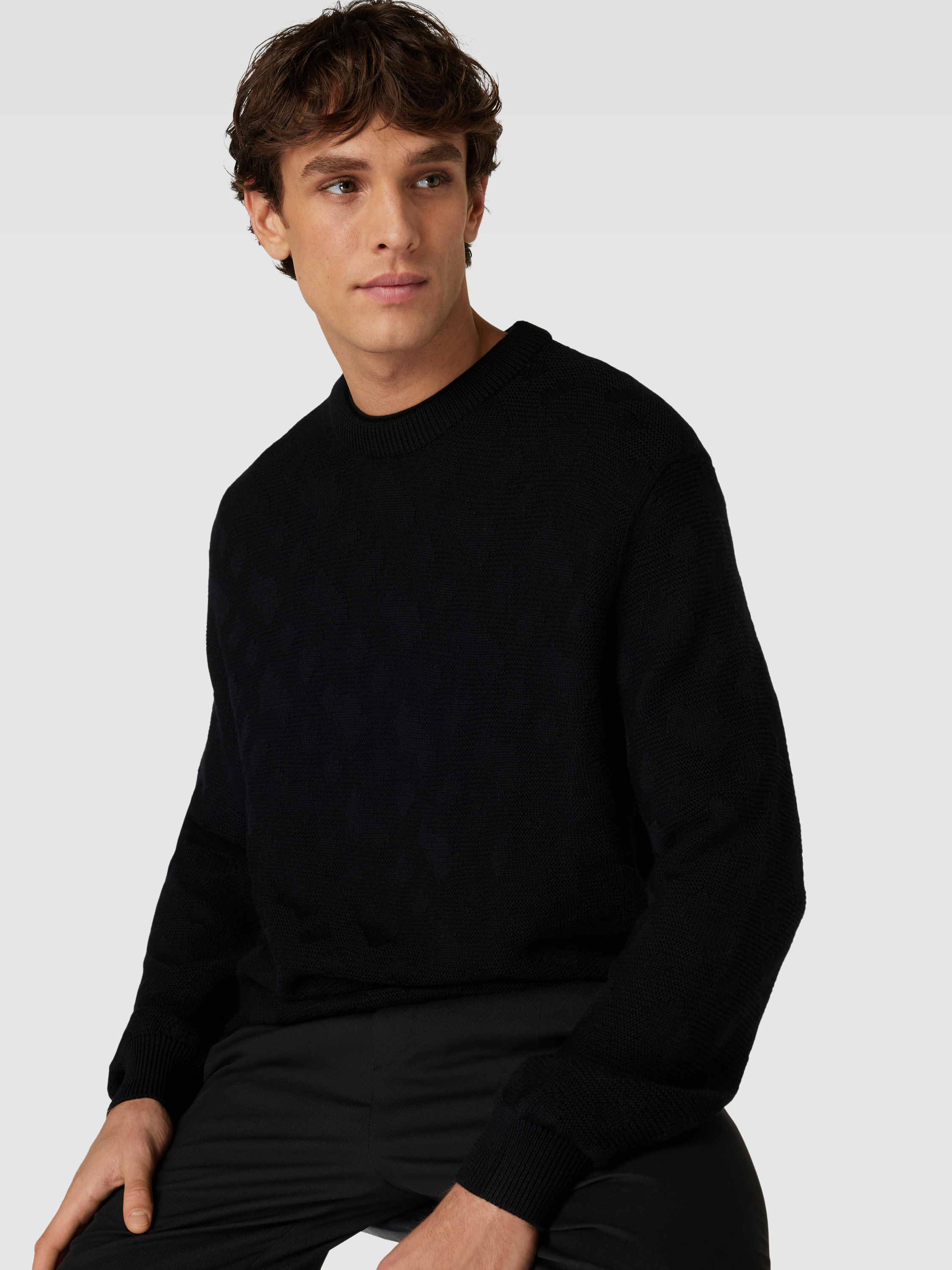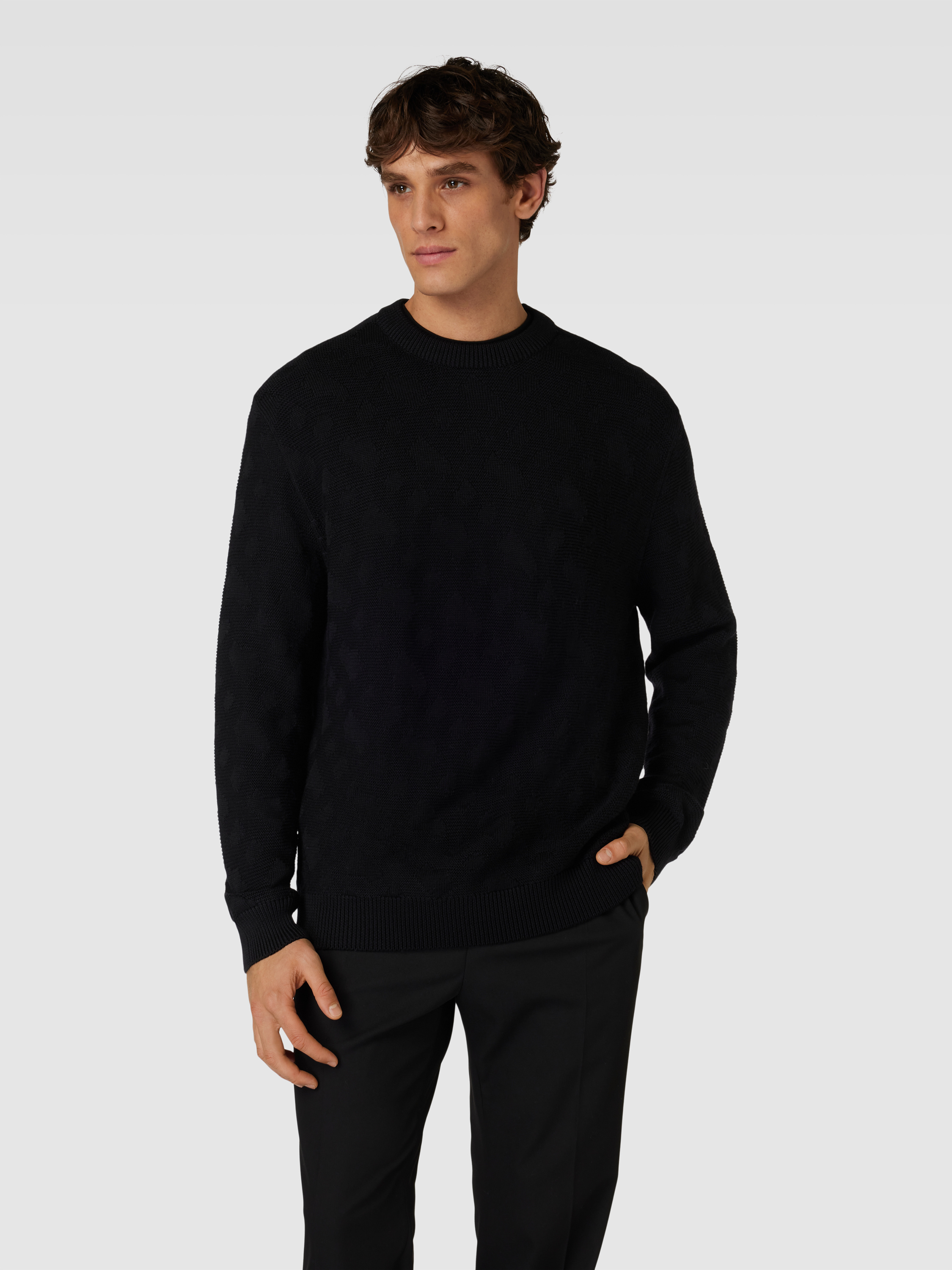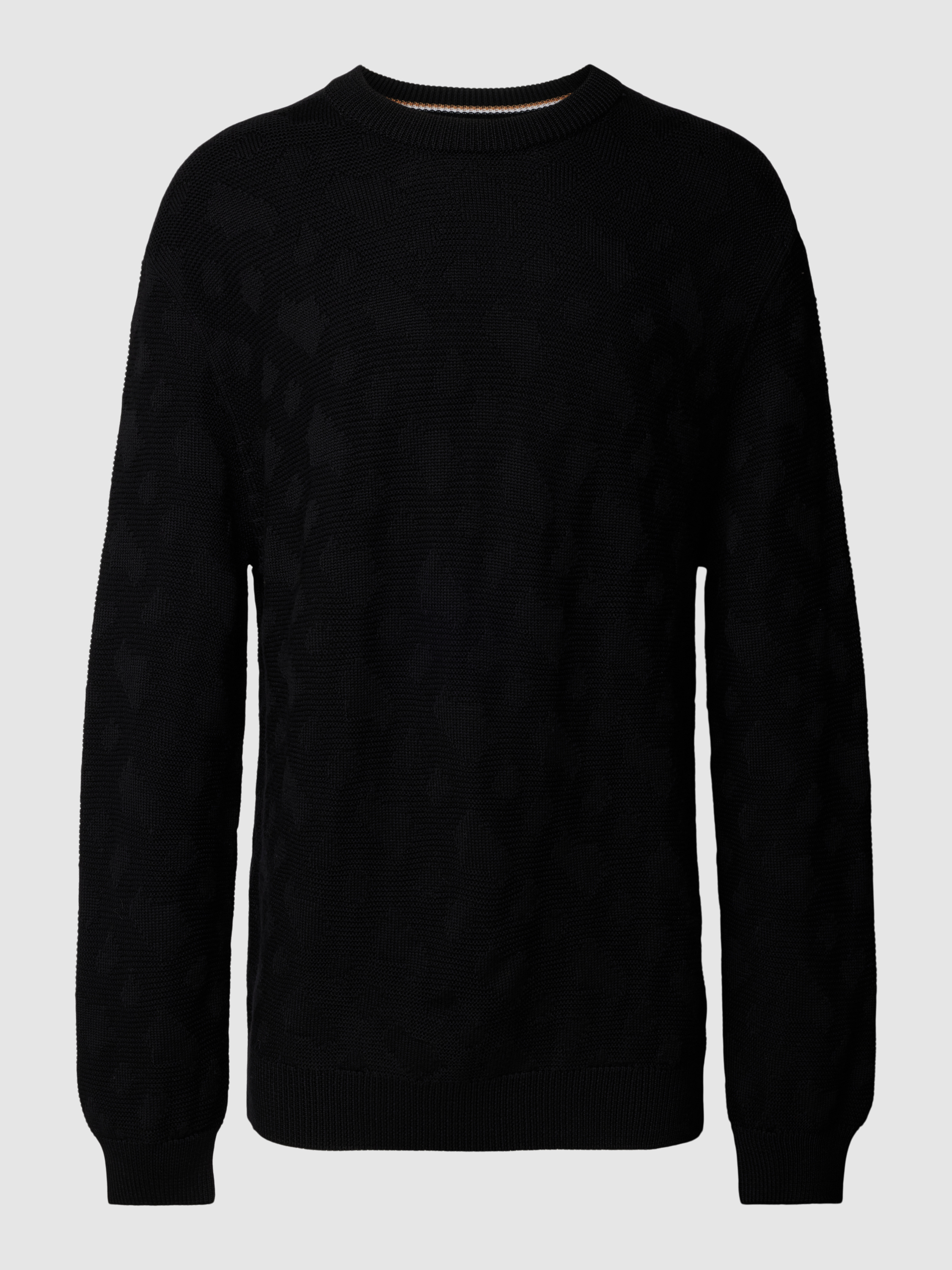 BOSSGebreide pullover met structuurmotief, model 'Palao' in zwart