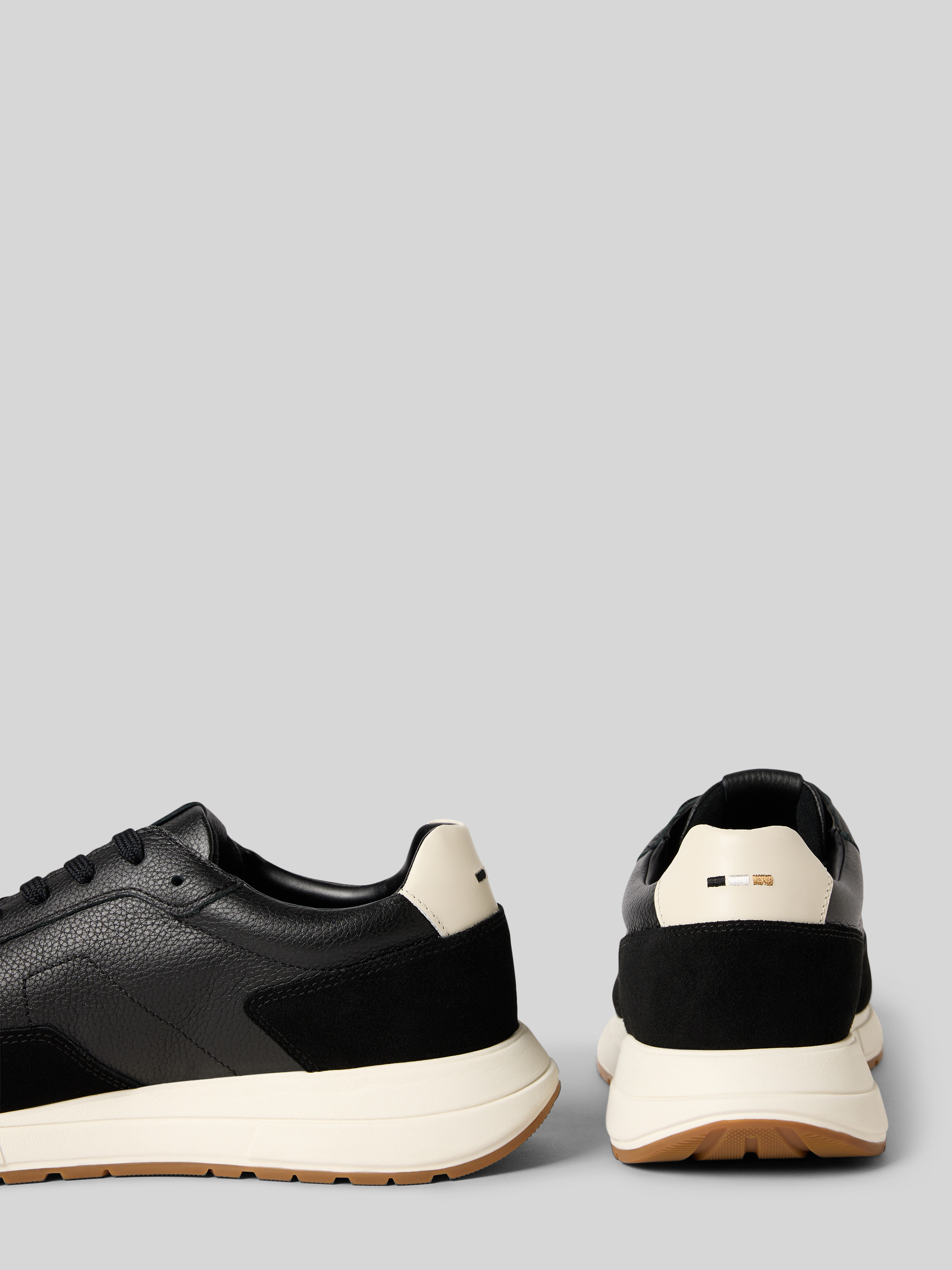 Lage sneakers van echt leer, model 'VINSTON' in zwart