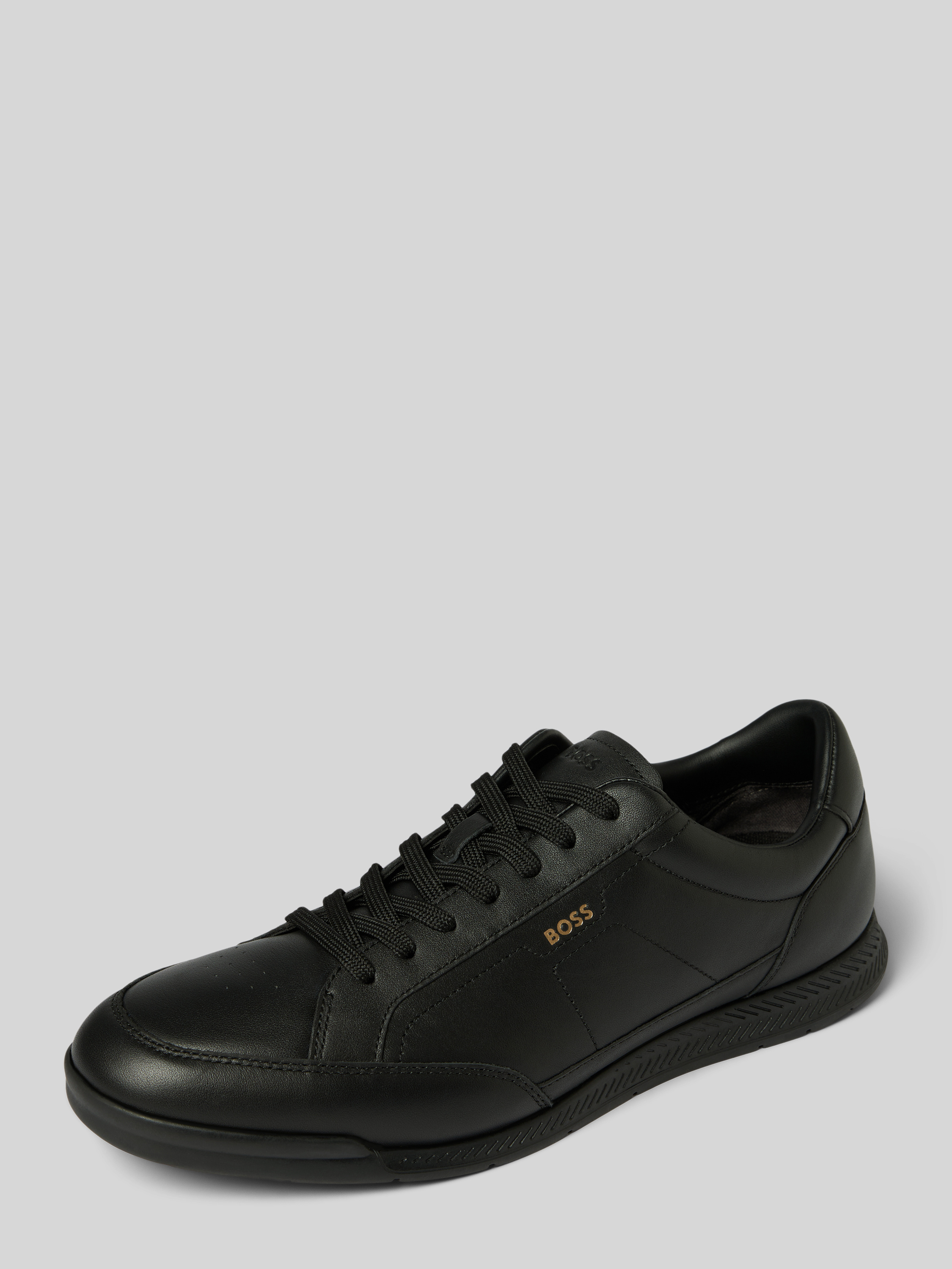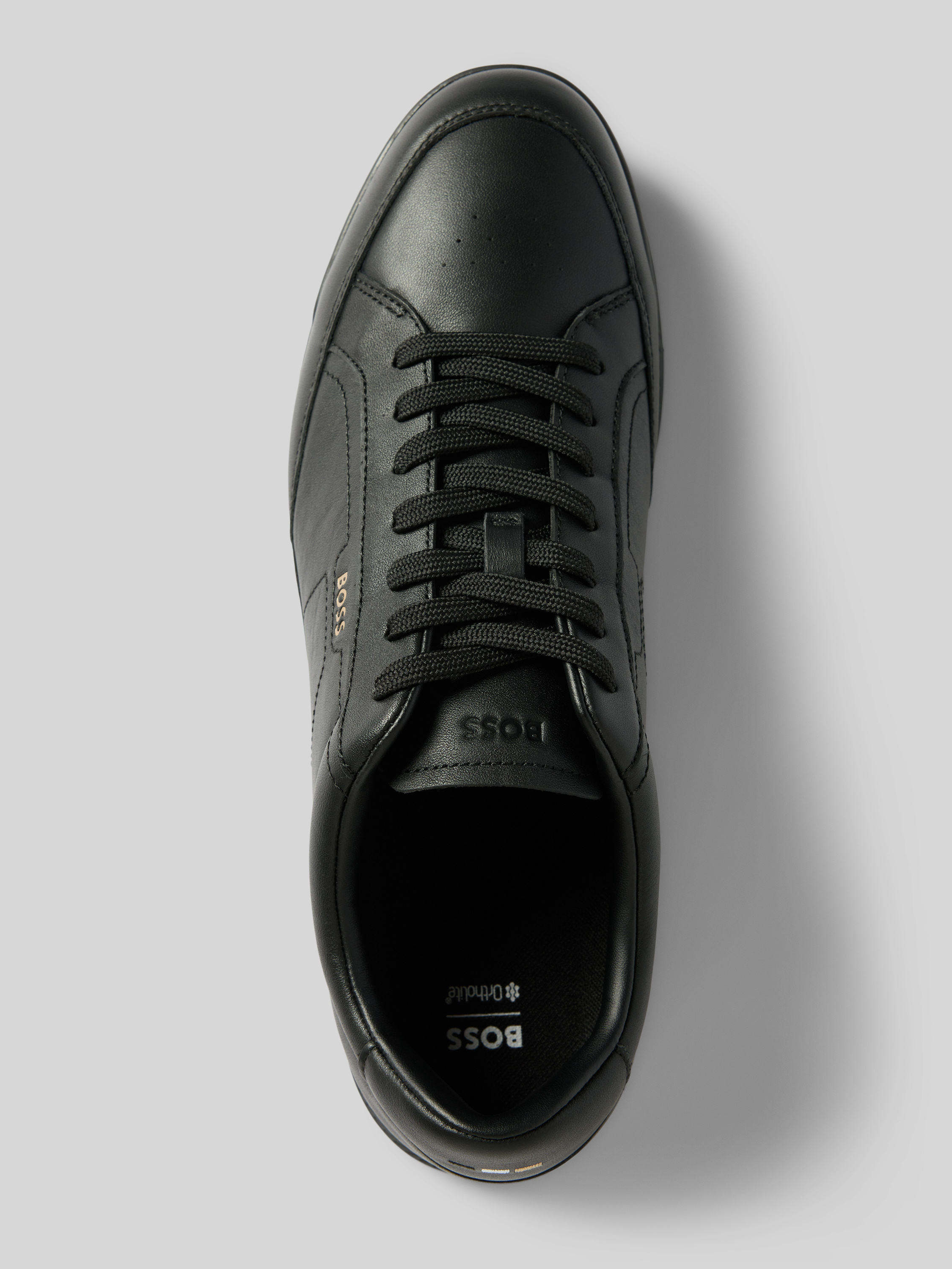 Lage sneakers van echt runderleer, model 'NITAN' in zwart
