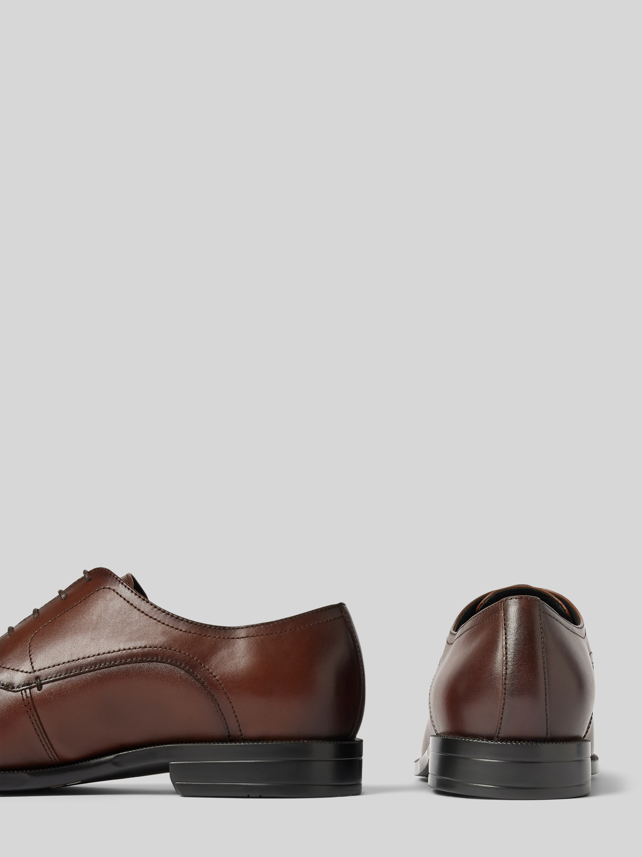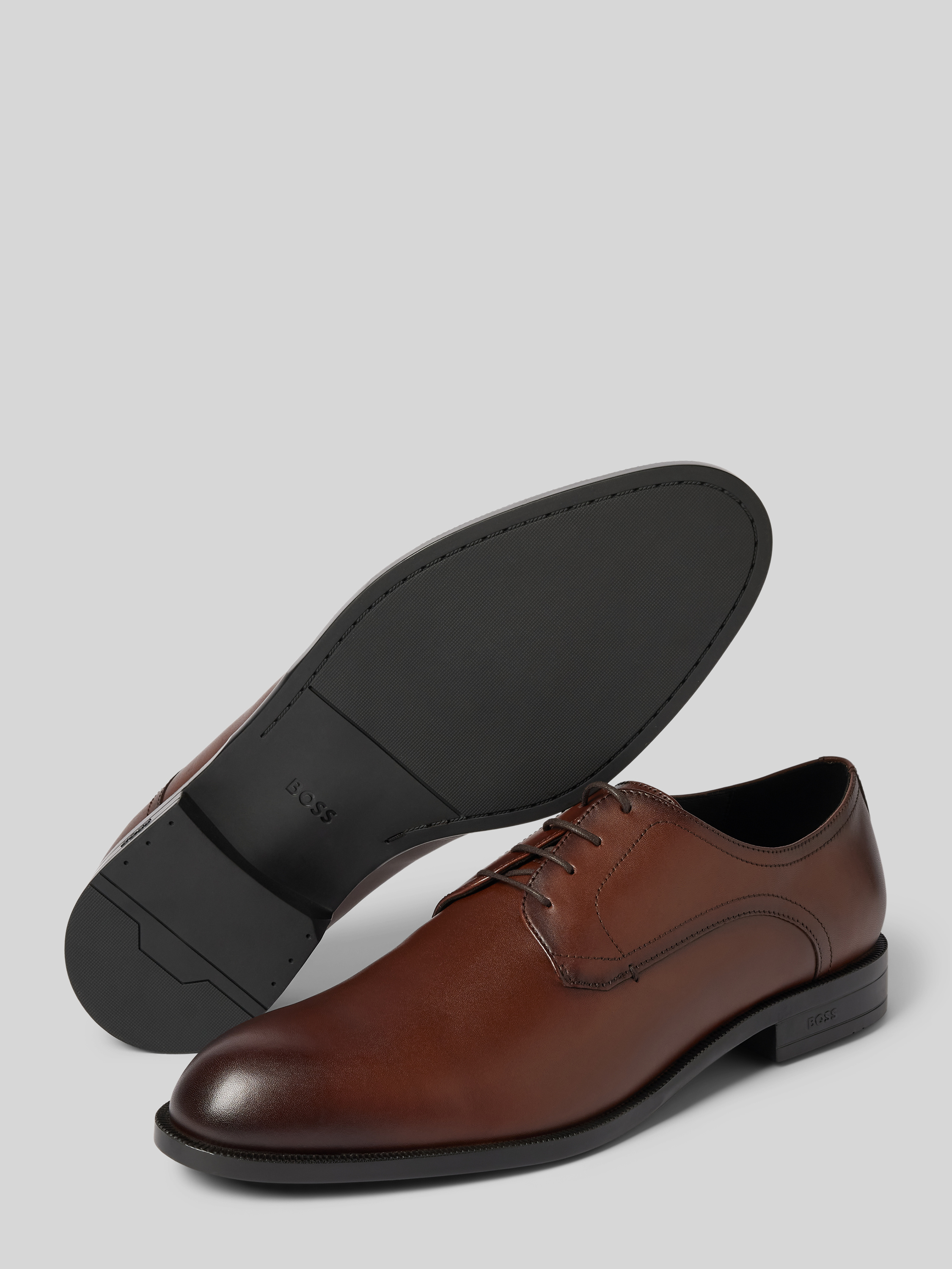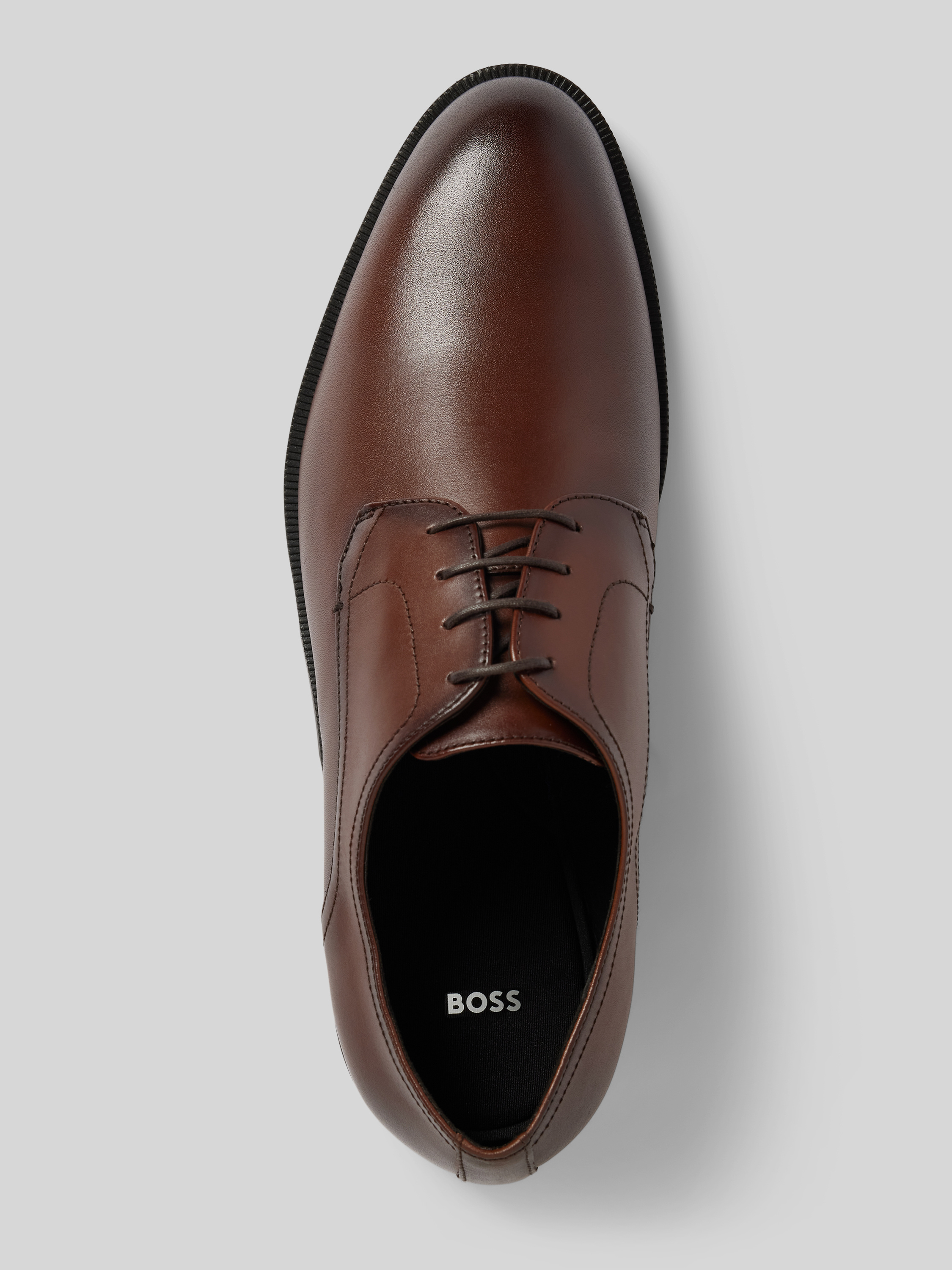 Leren derbyschoenen met labeldetails, model 'Tayil' in donkerbruin