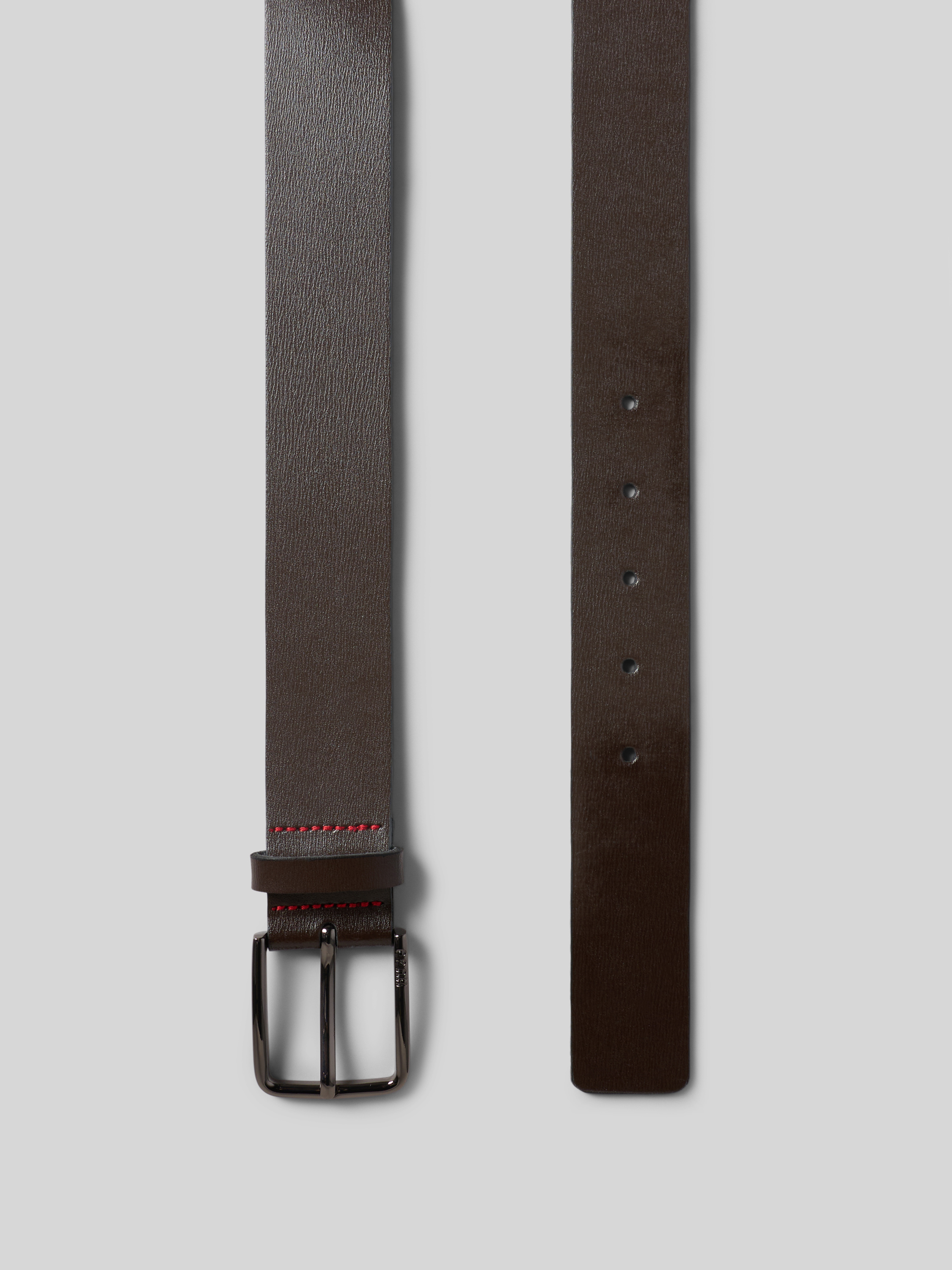 Leren riem met doornsluiting, model 'GERIK' in donkerbruin