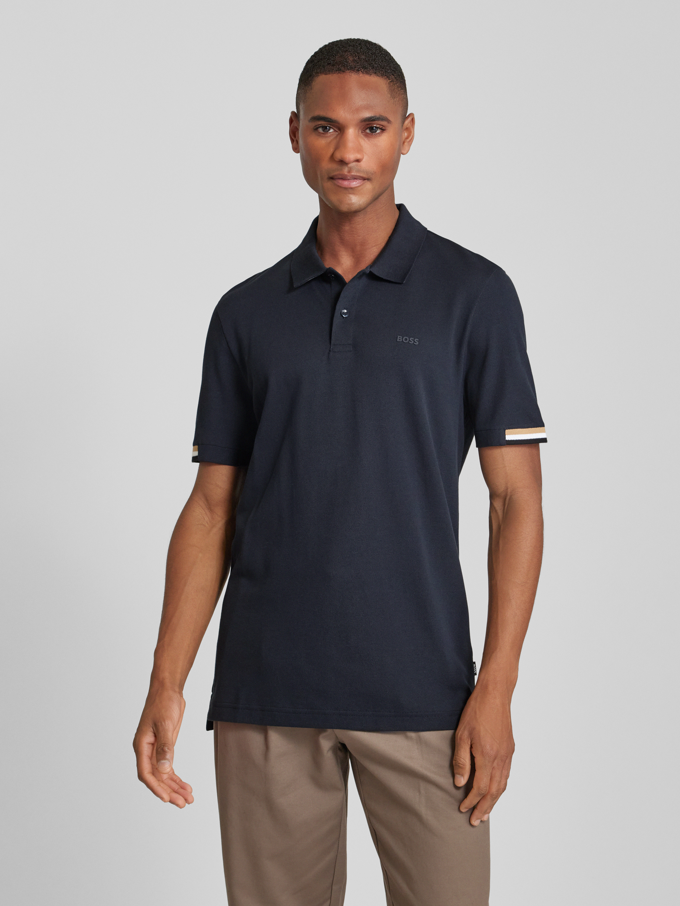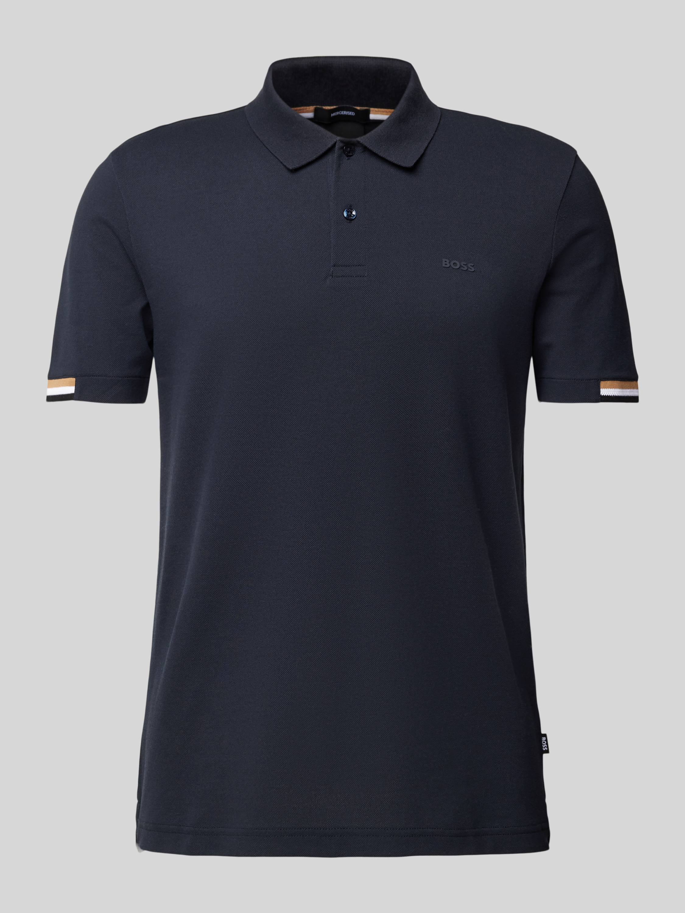 Poloshirt met labelprint, model 'Parlay' in marineblauw