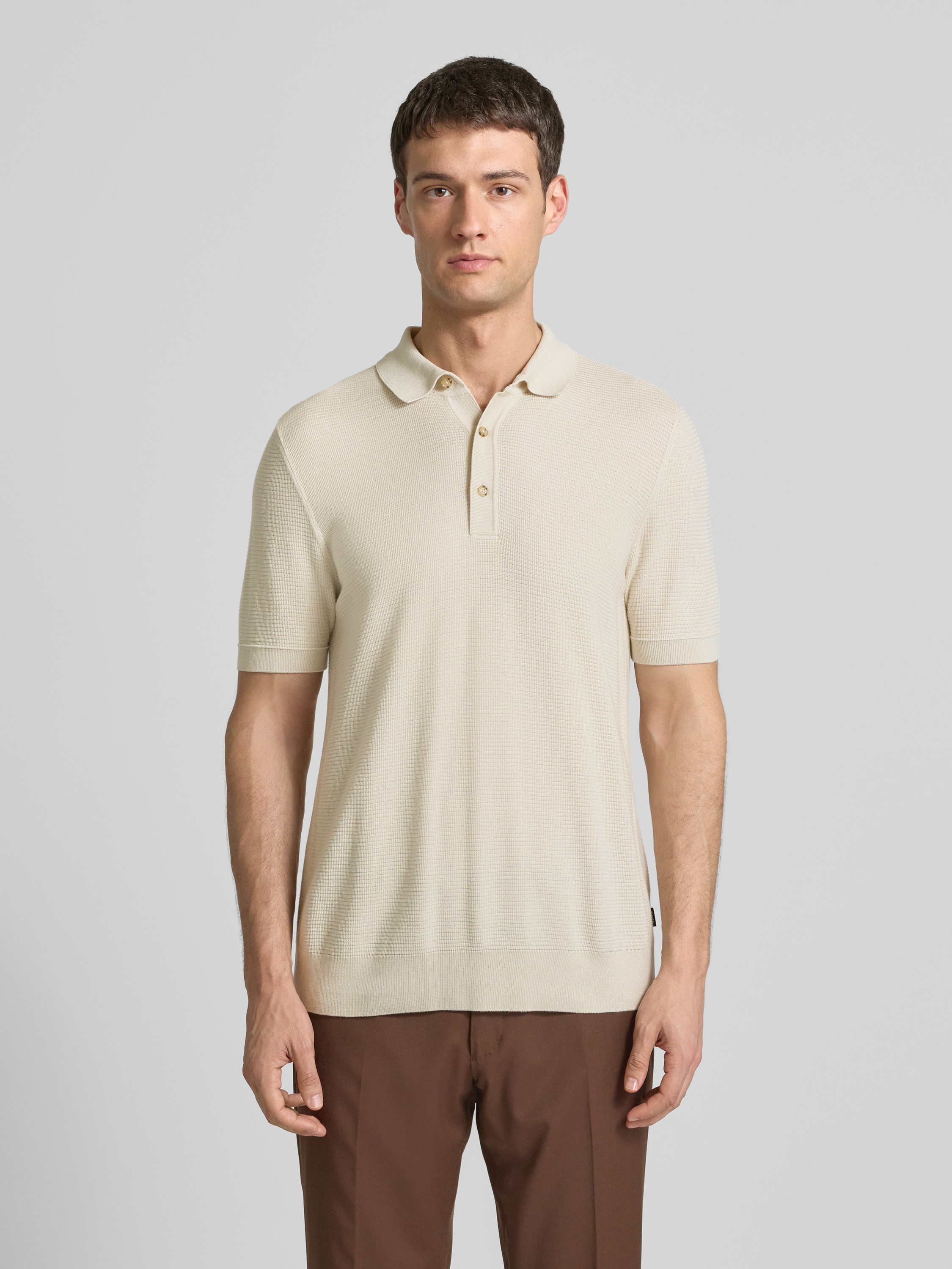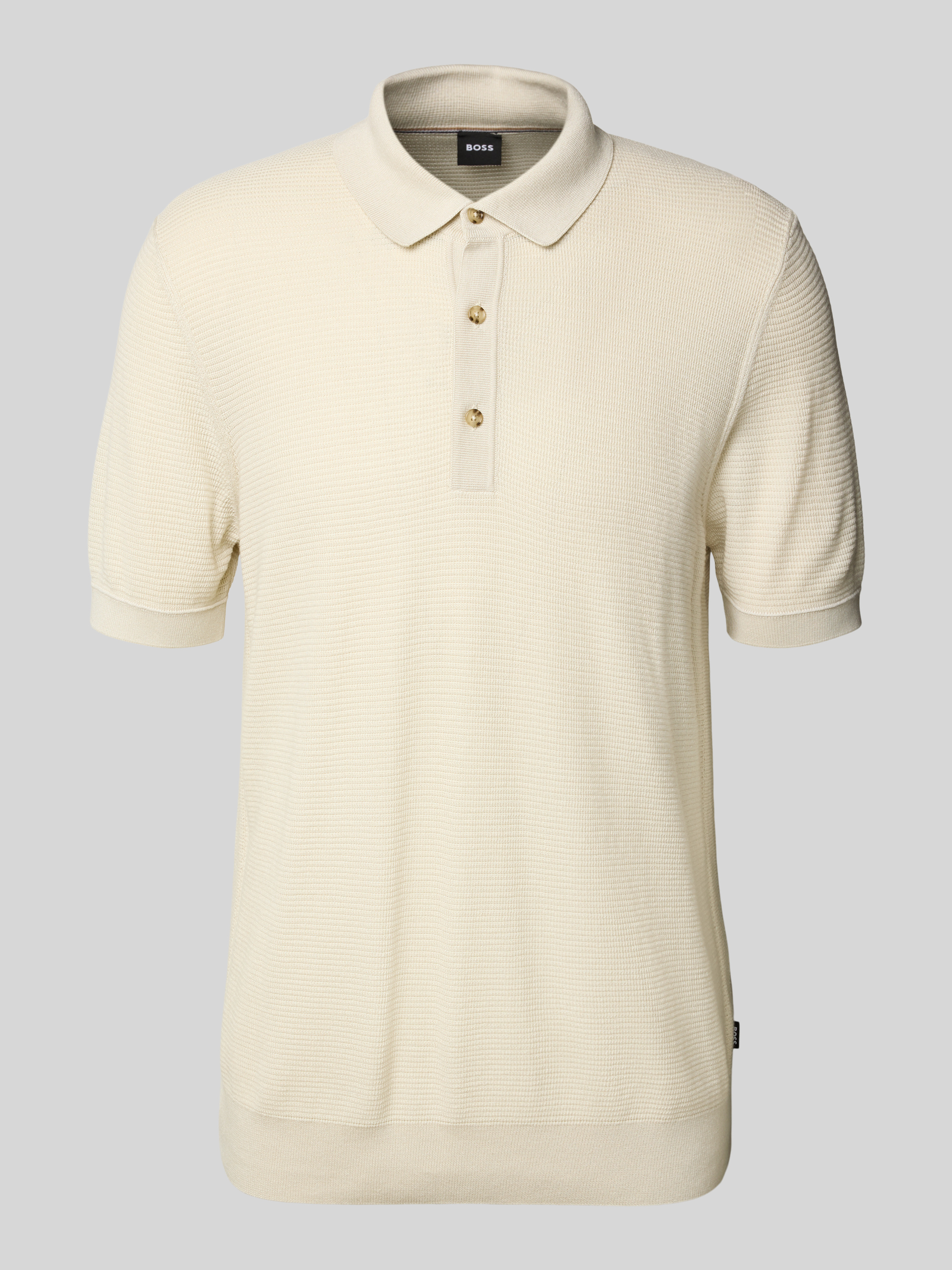 Regular fit gebreid poloshirt van een mix van lyocell en katoen, model 'LANNOTTI' in offwhite