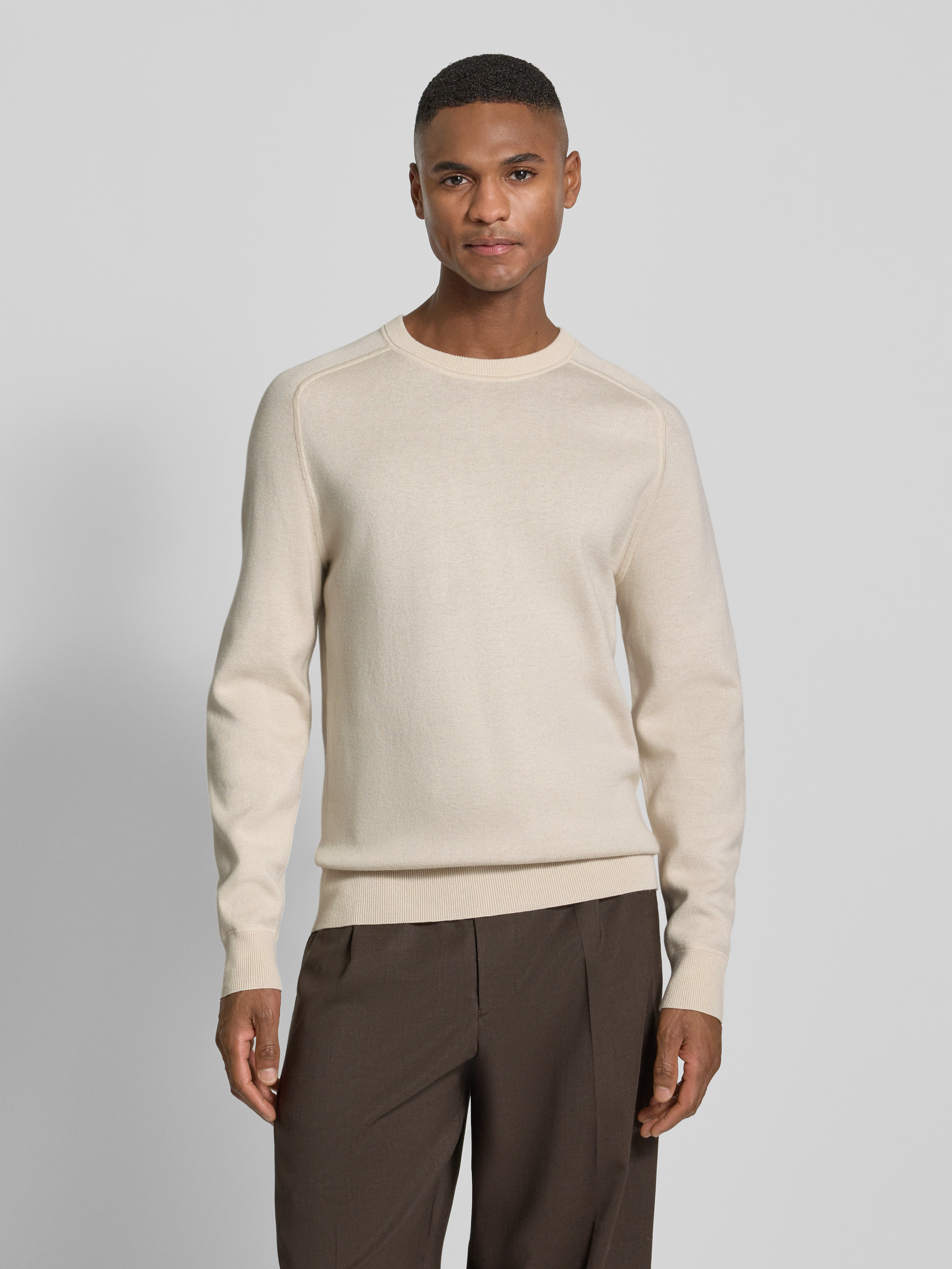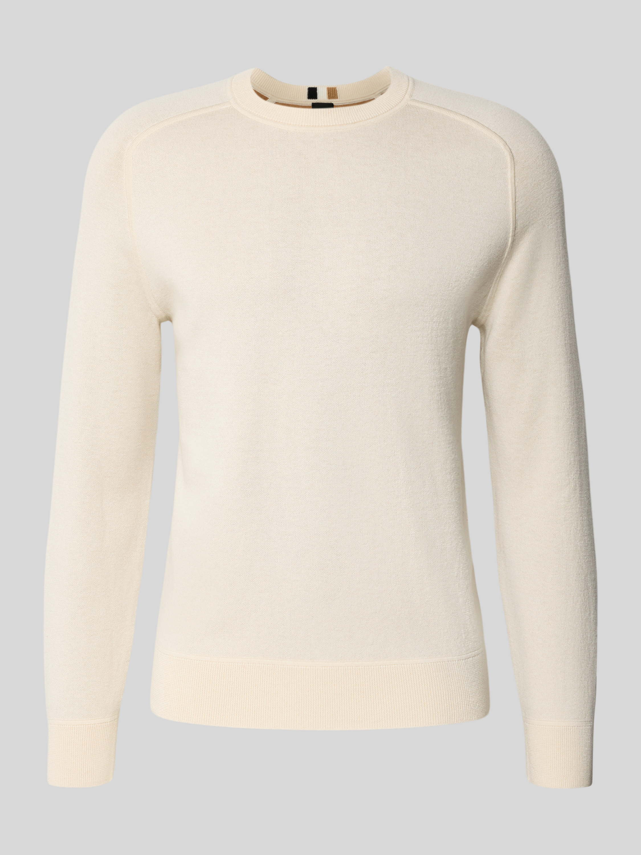 BOSSRegular fit gebreide pullover van een mix van katoen en scheerwol, model 'HIDONEO' in offwhite