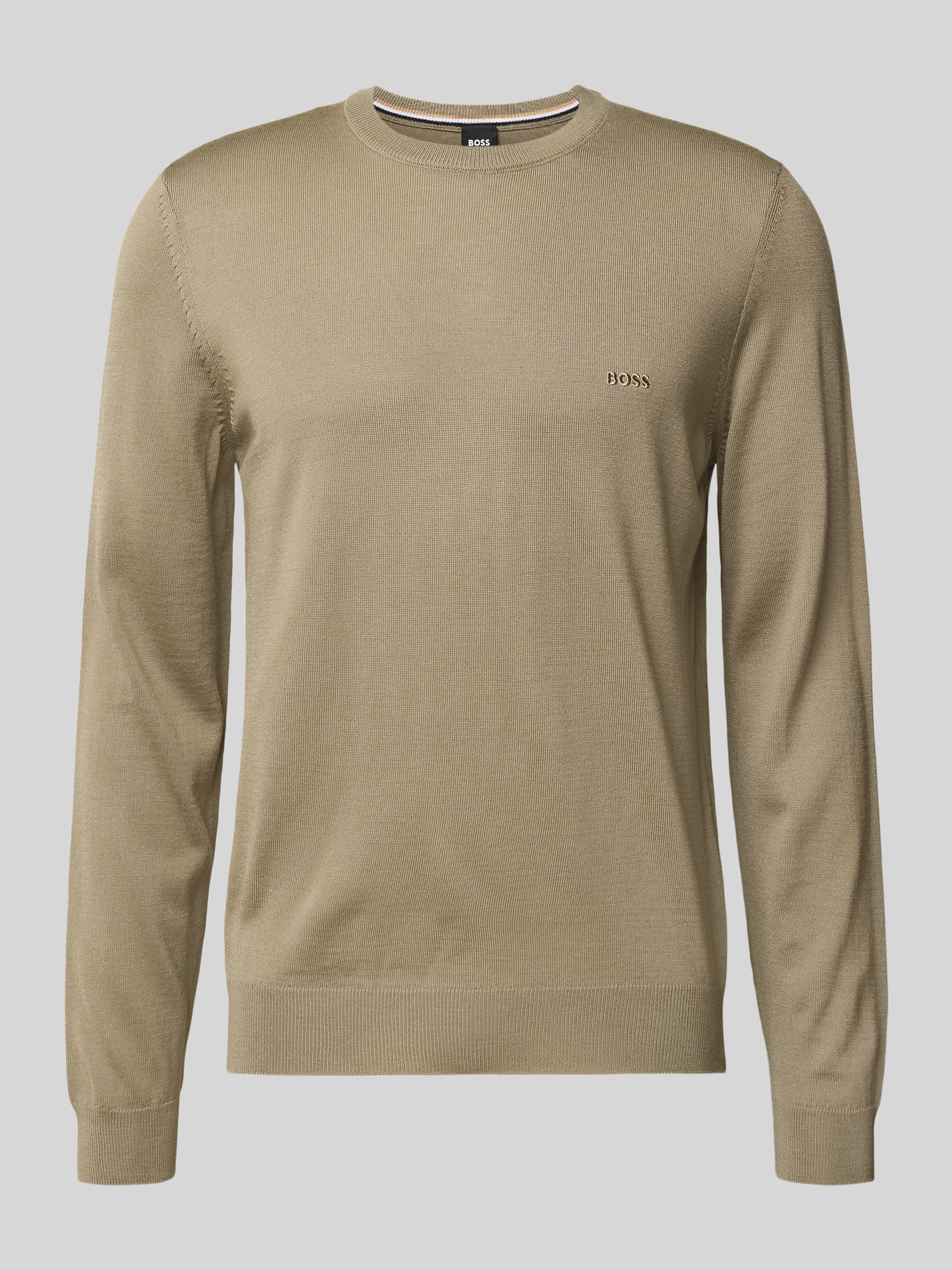 Regular fit gebreide pullover van pure scheerwol, model 'BOTTO' in leem