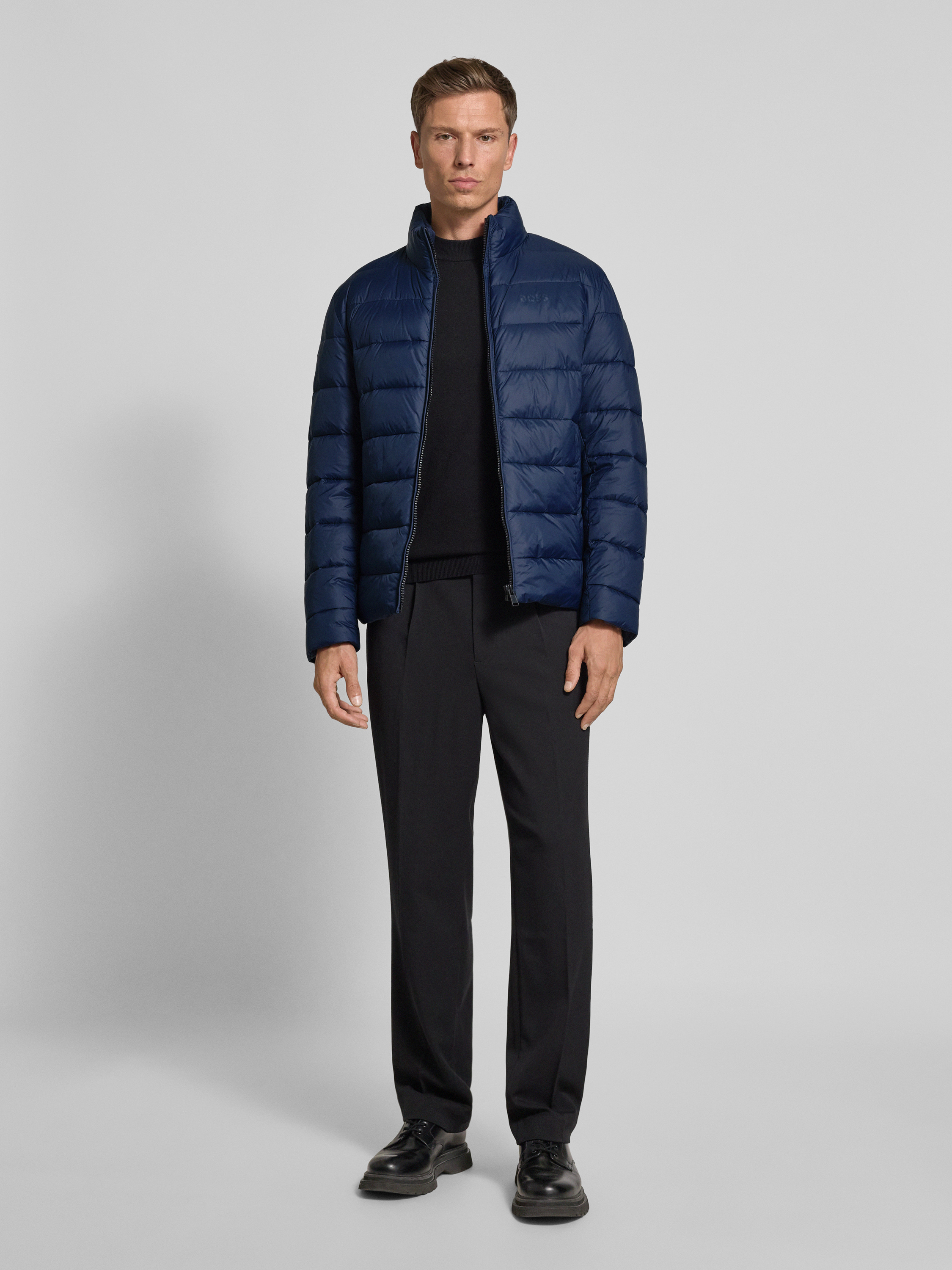 Regular fit gewatteerd jack met labelprint, model 'CIKO' in marineblauw