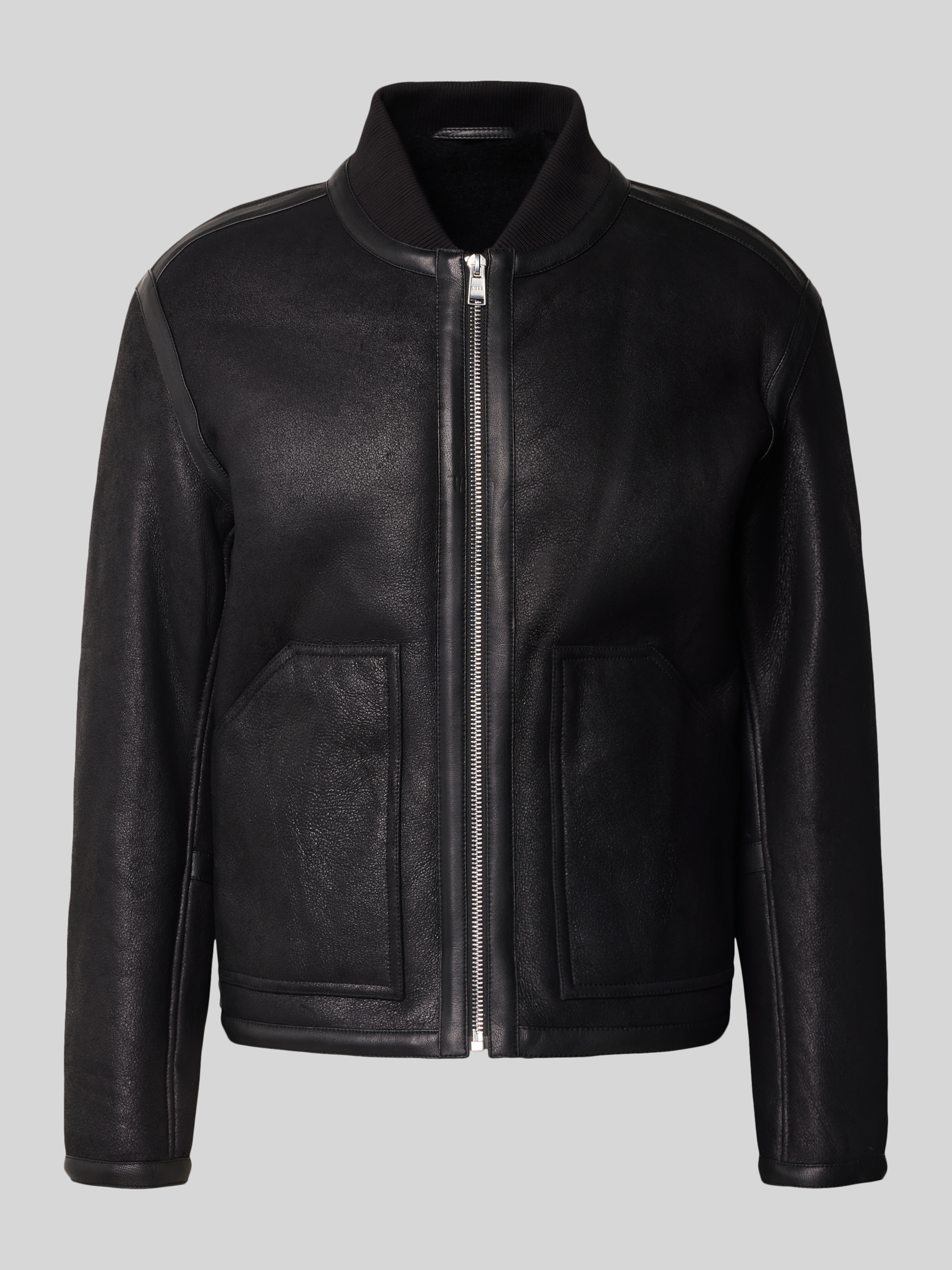 Regular fit leren jack met collegekraag, model 'MAFERO' in zwart