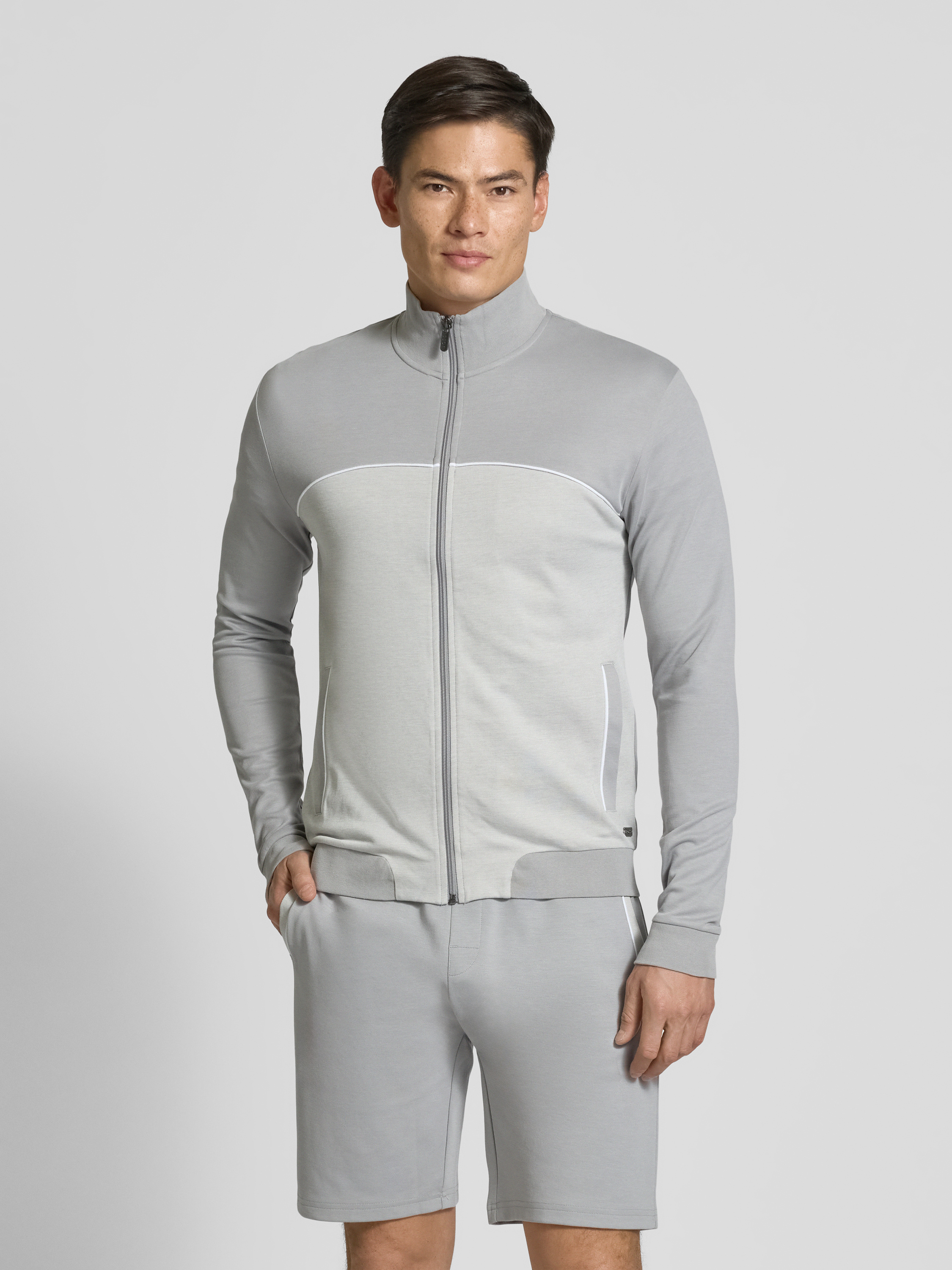 Regular fit sweatjack van katoenmix in lichtgrijs