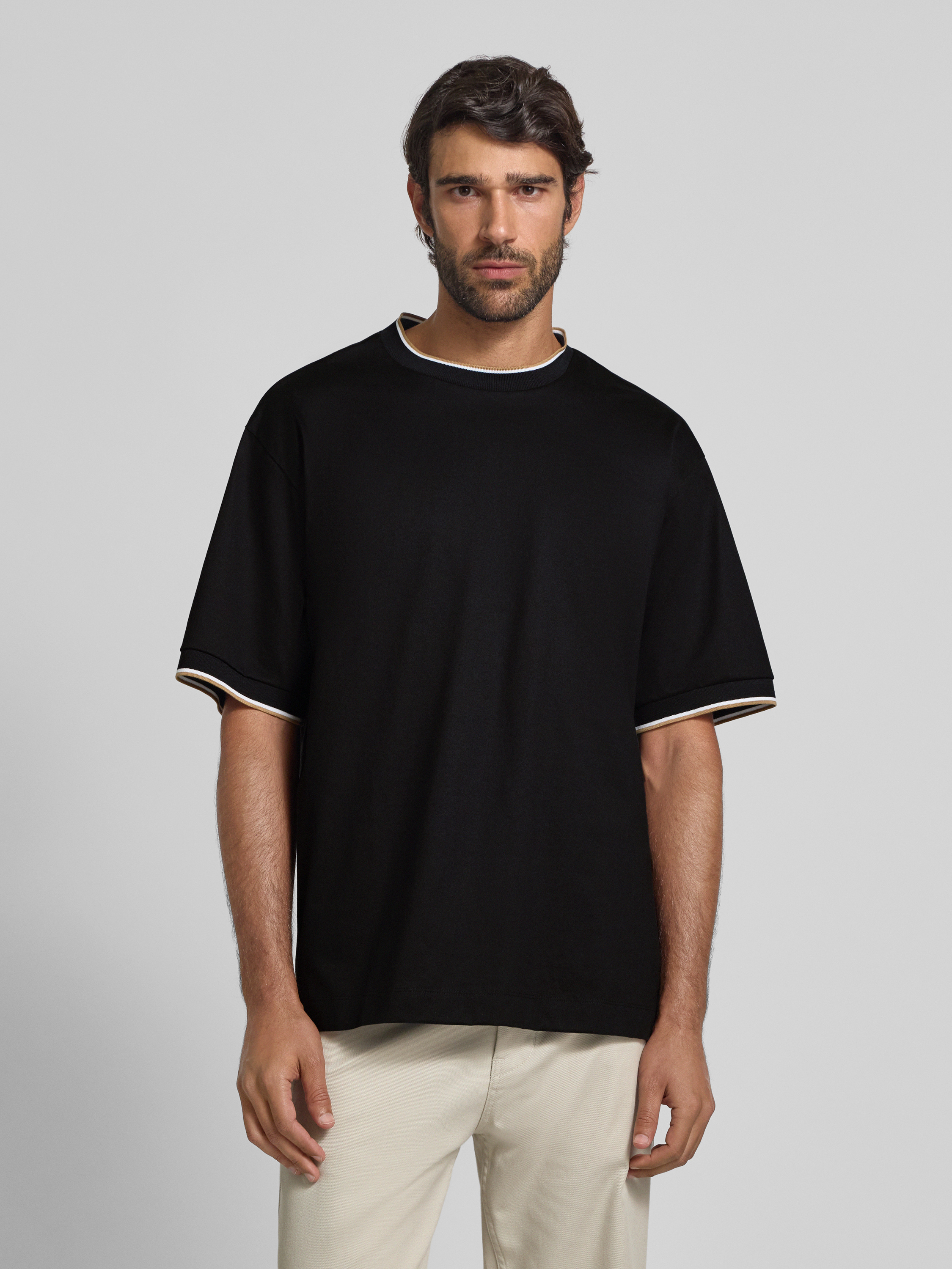 Regular fit T-shirt van puur katoen, model 'TAMES' in zwart