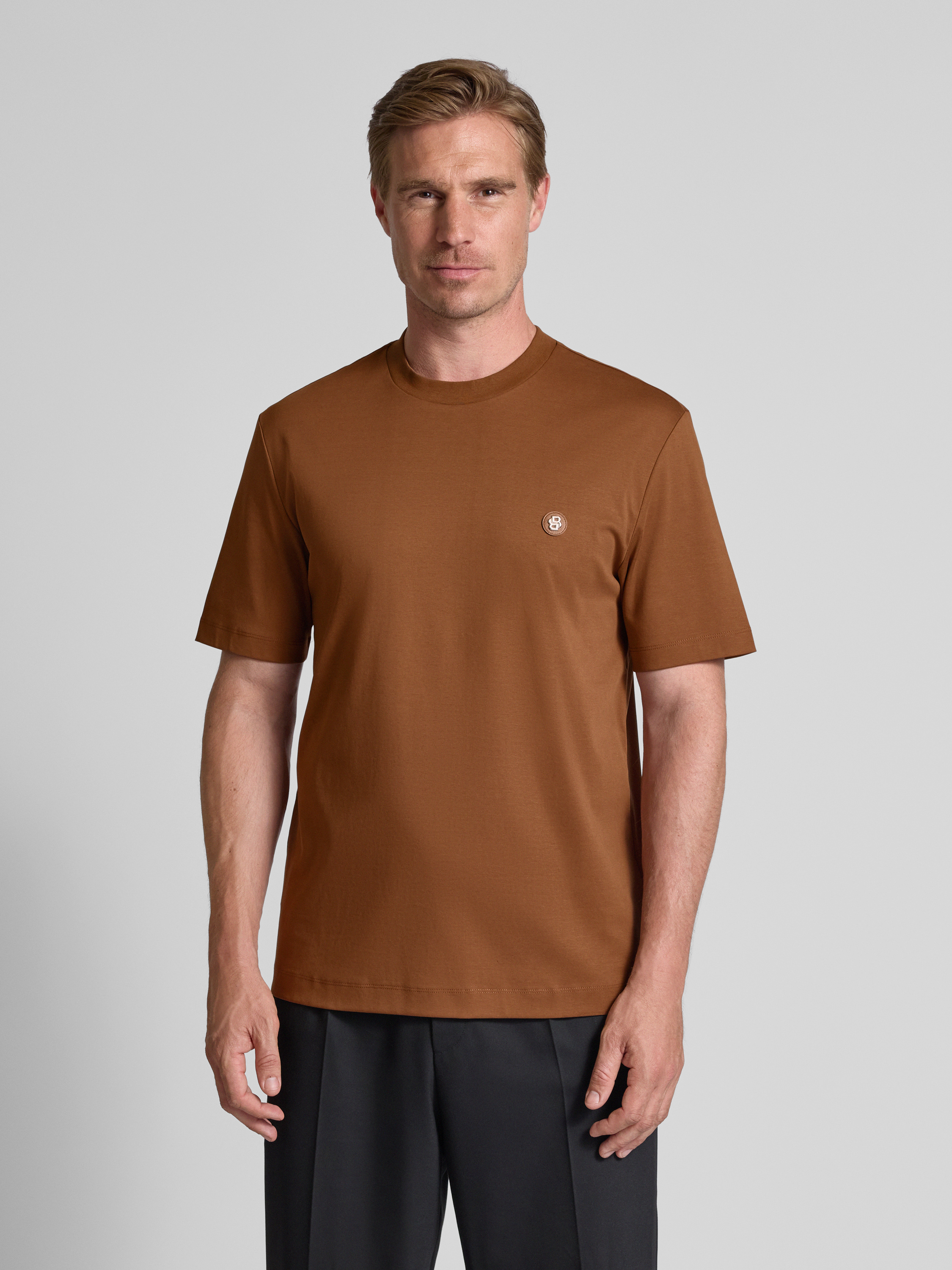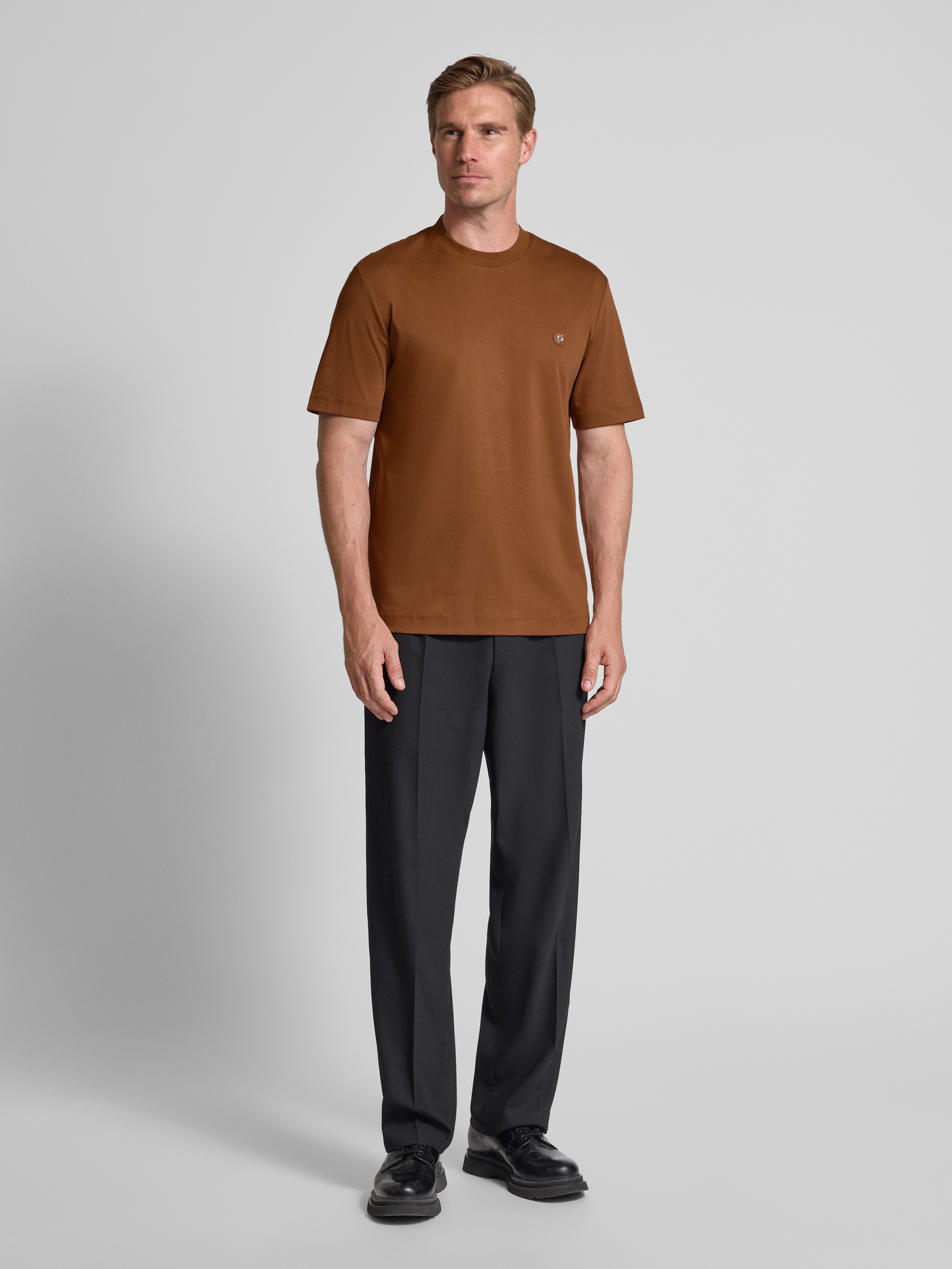 Regular fit T-shirt van puur katoen, model 'TAUT' in cognac