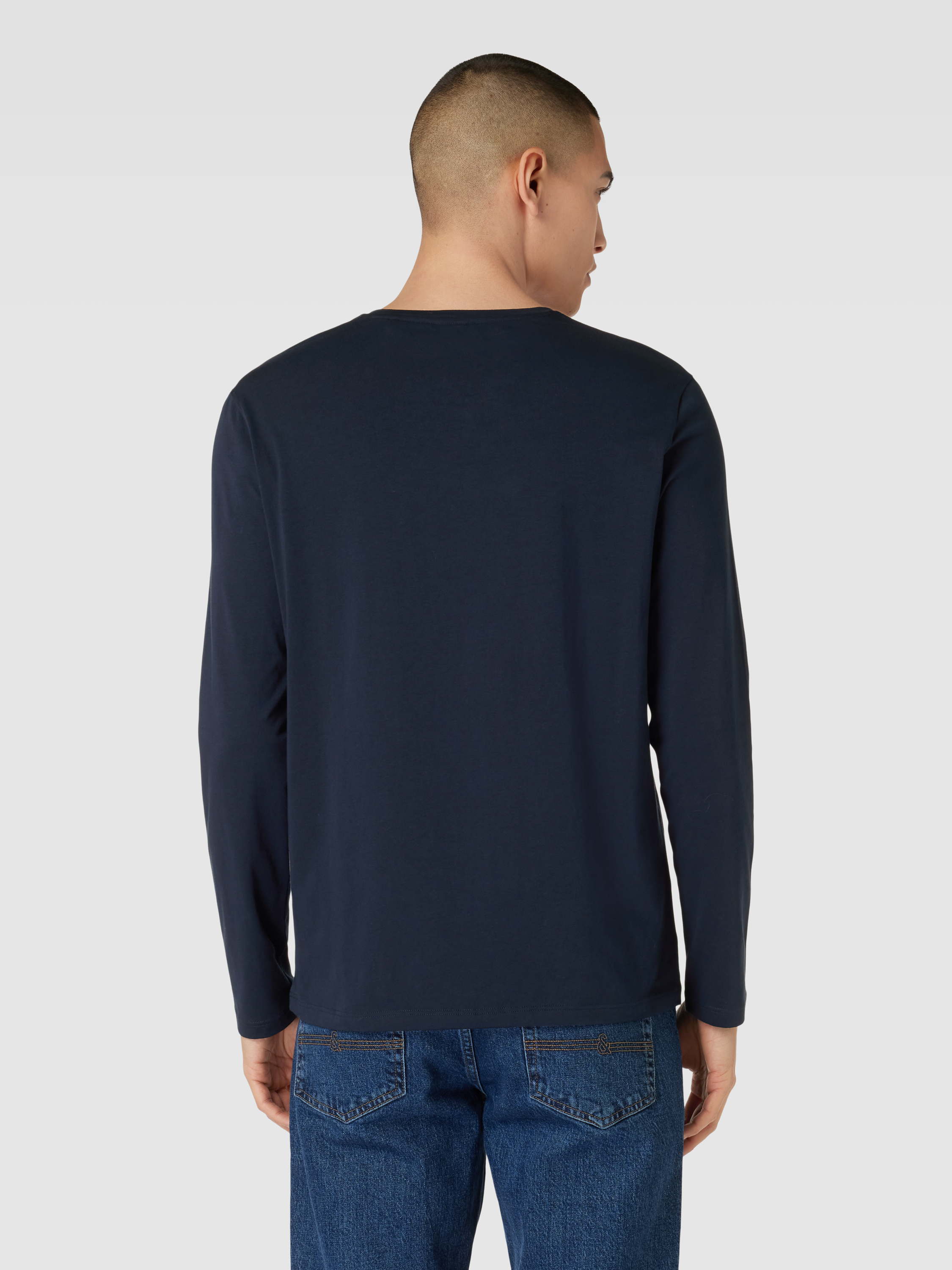 Shirt met lange mouwen en labelstitching, model 'Mix&Match' in donkerblauw