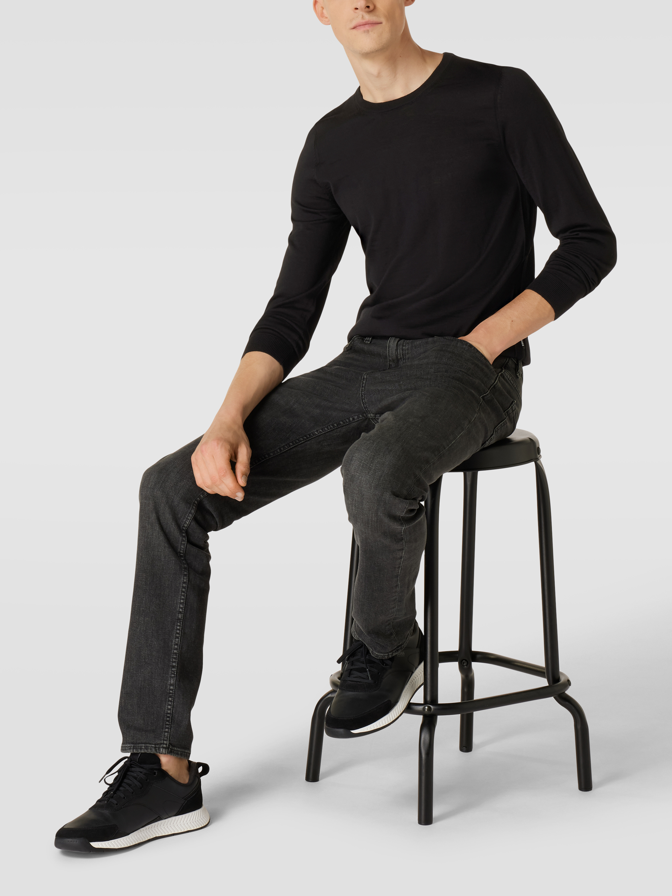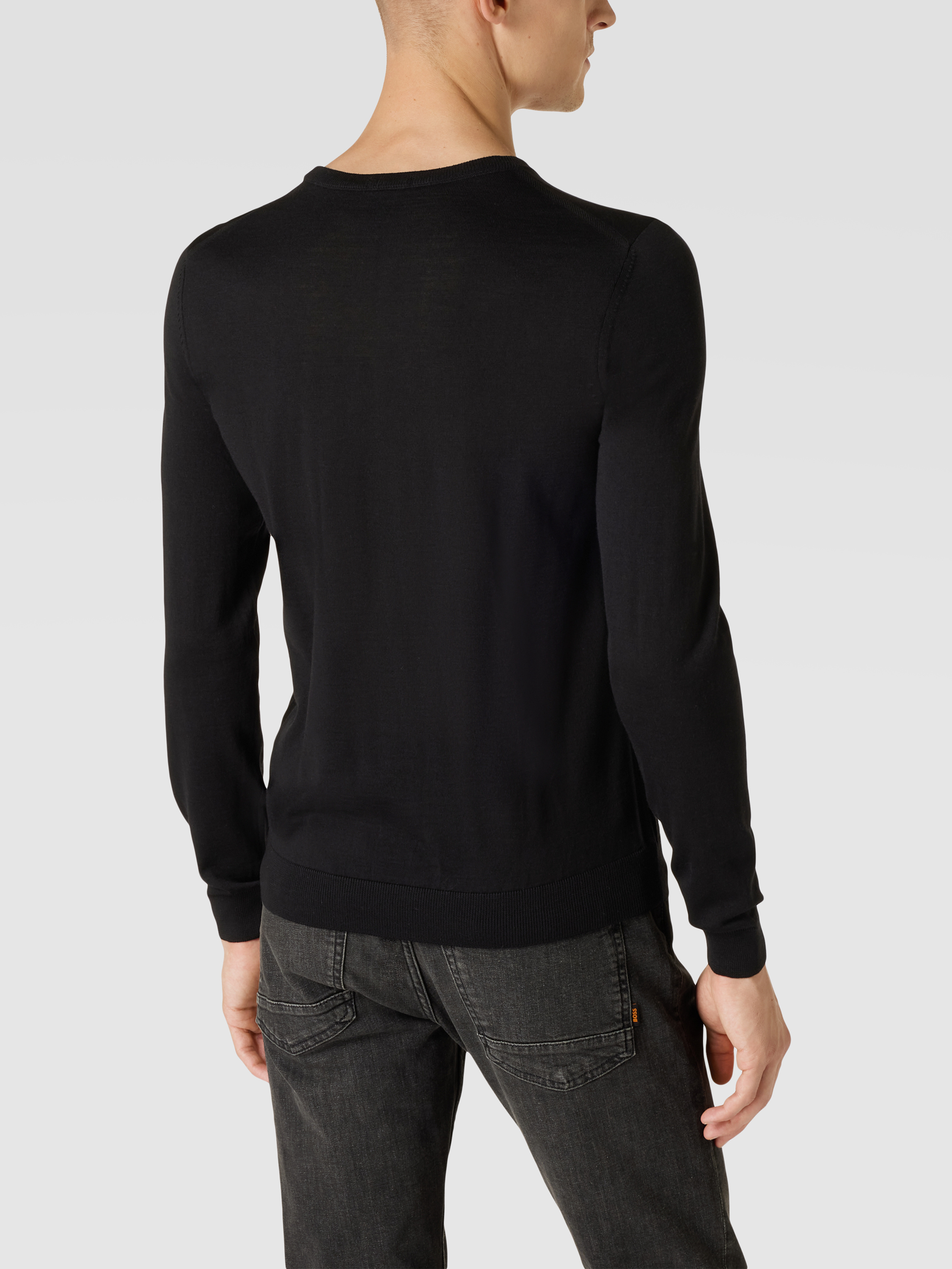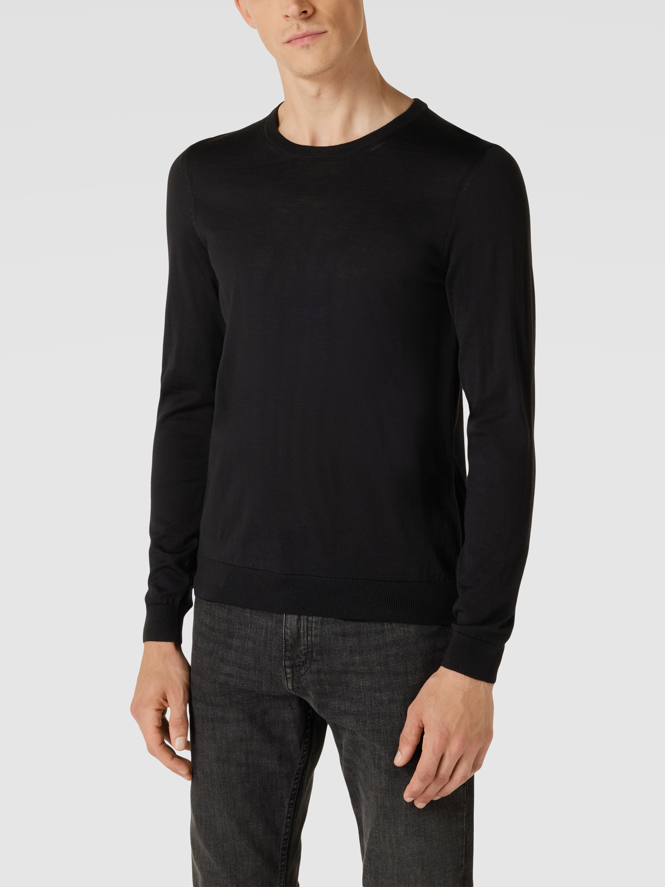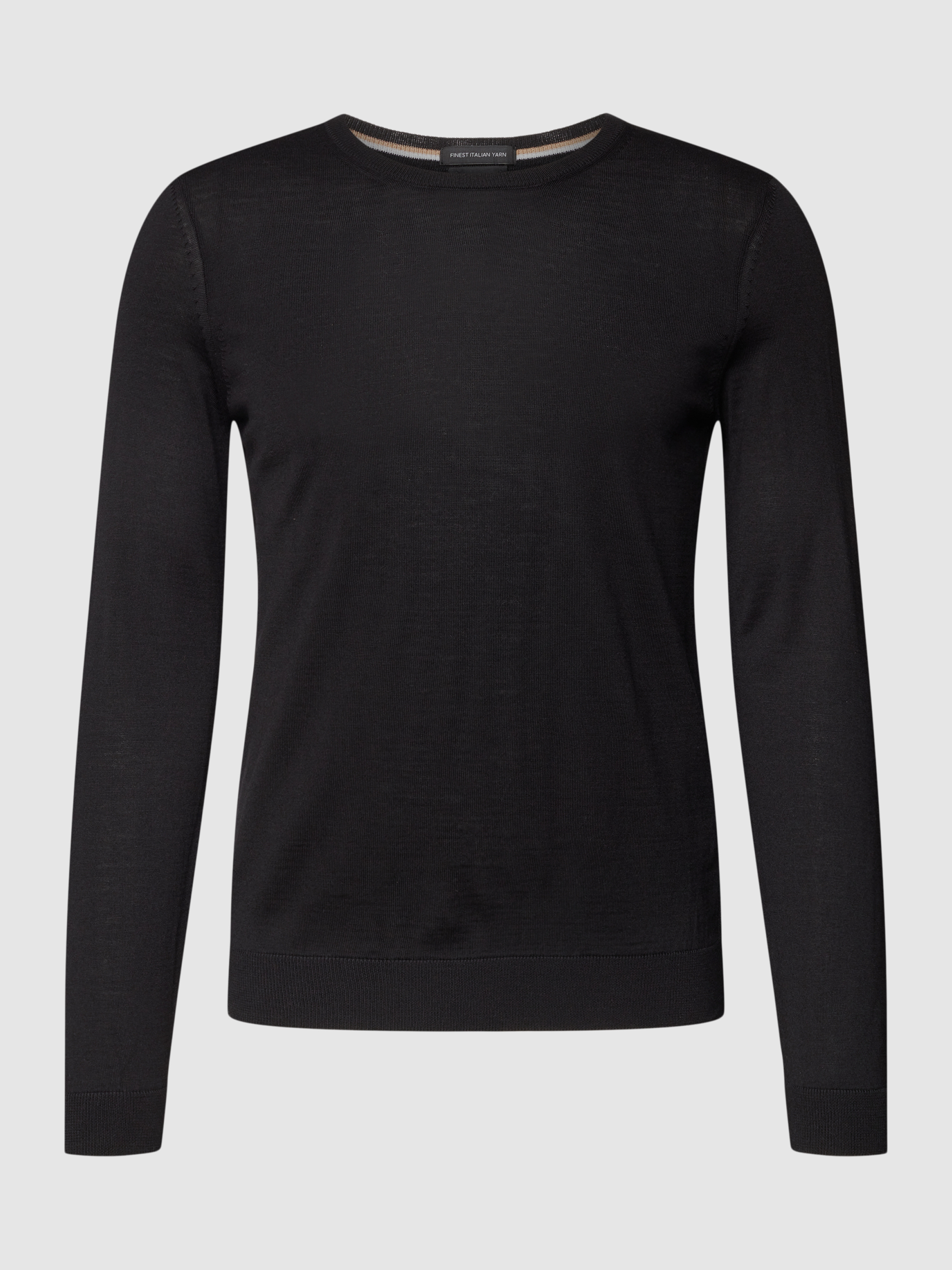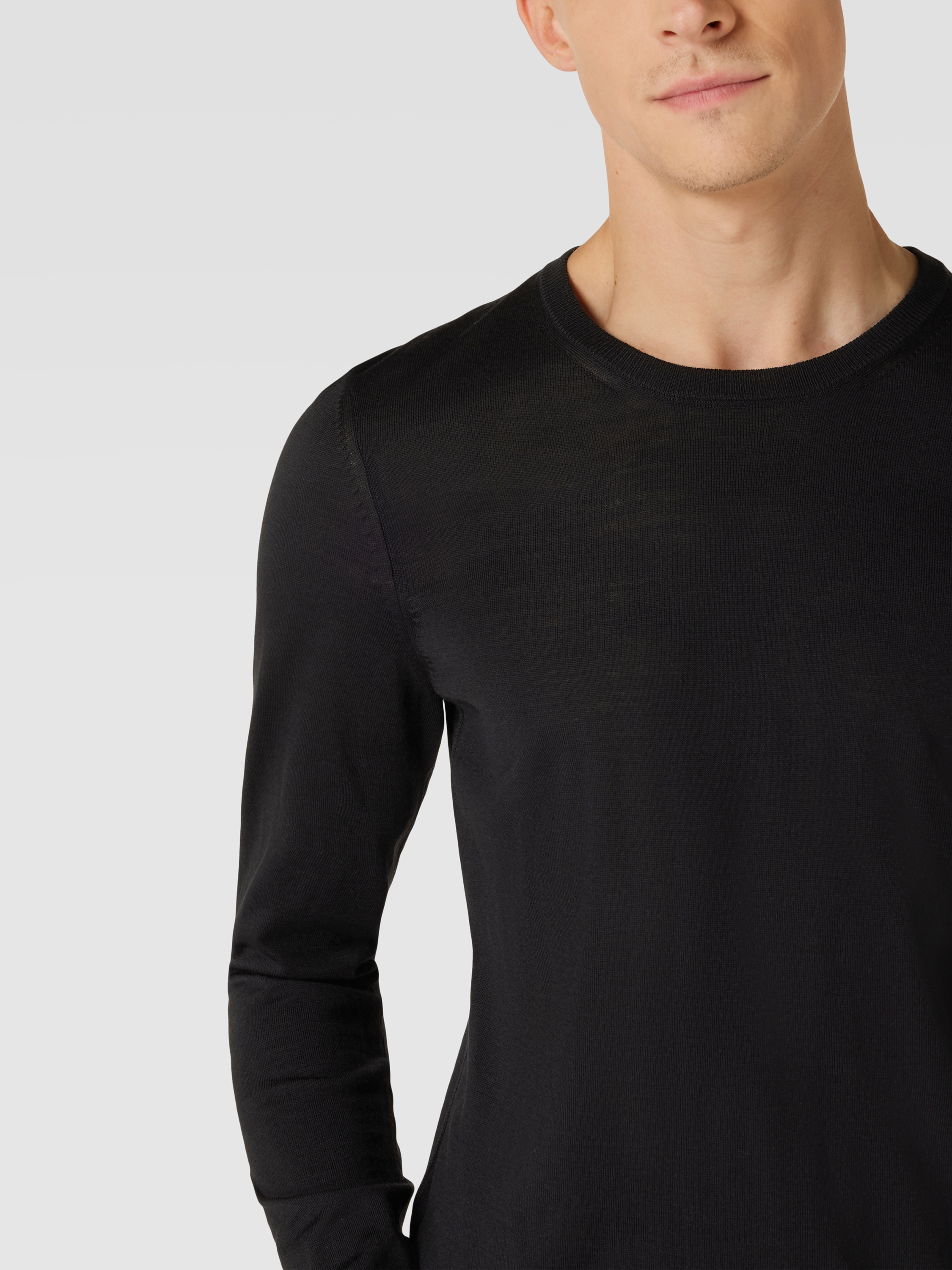 Shirt met lange mouwen van merinoweol, model 'Leno' in zwart