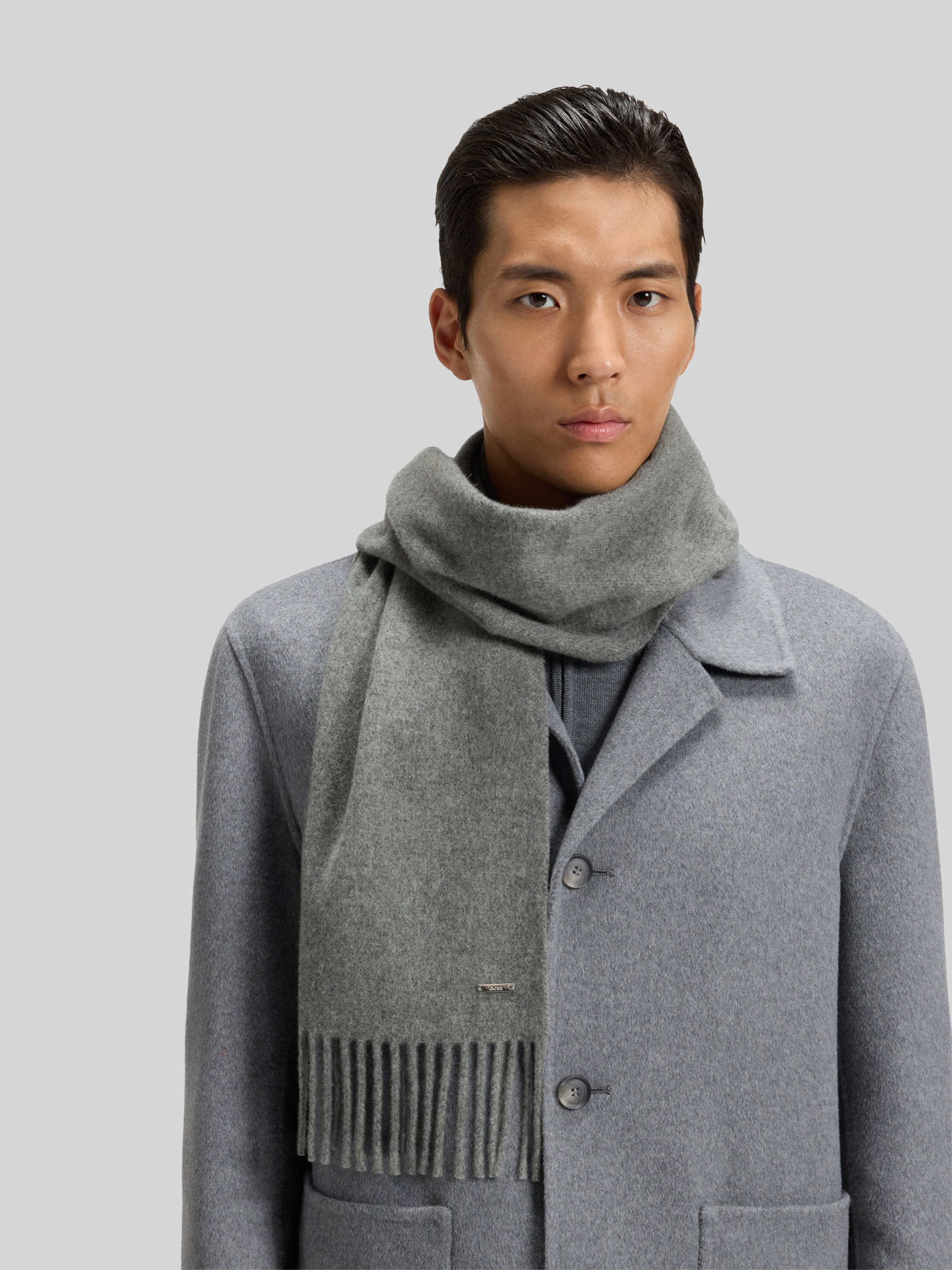 Sjaal van puur kasjmier, model 'PYETRO_30*190' in lichtgrijs