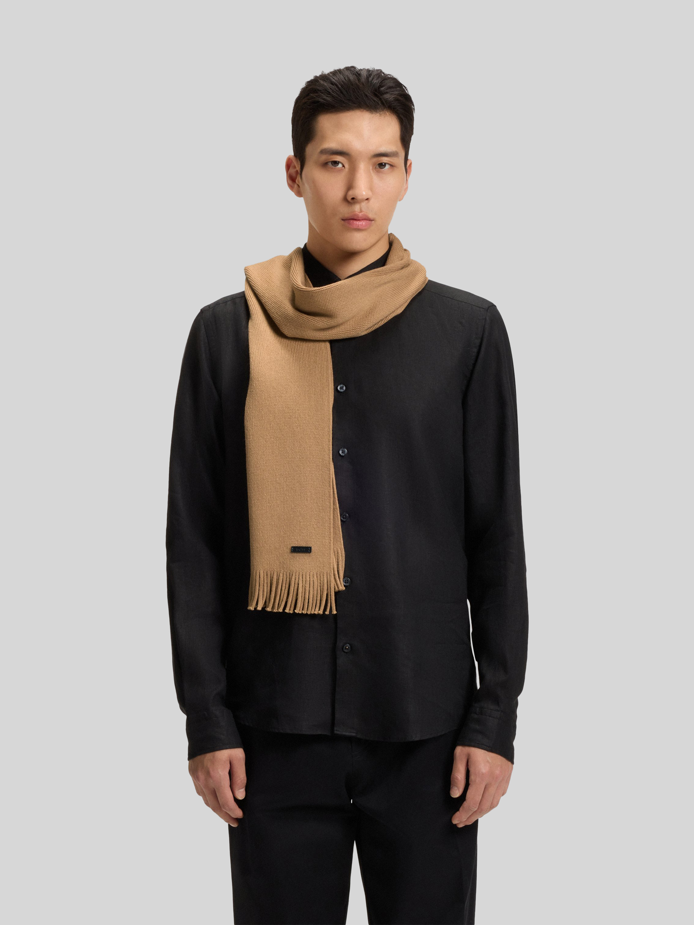 • BOSS Sjaal van zuivere scheerwol Donkerbruin