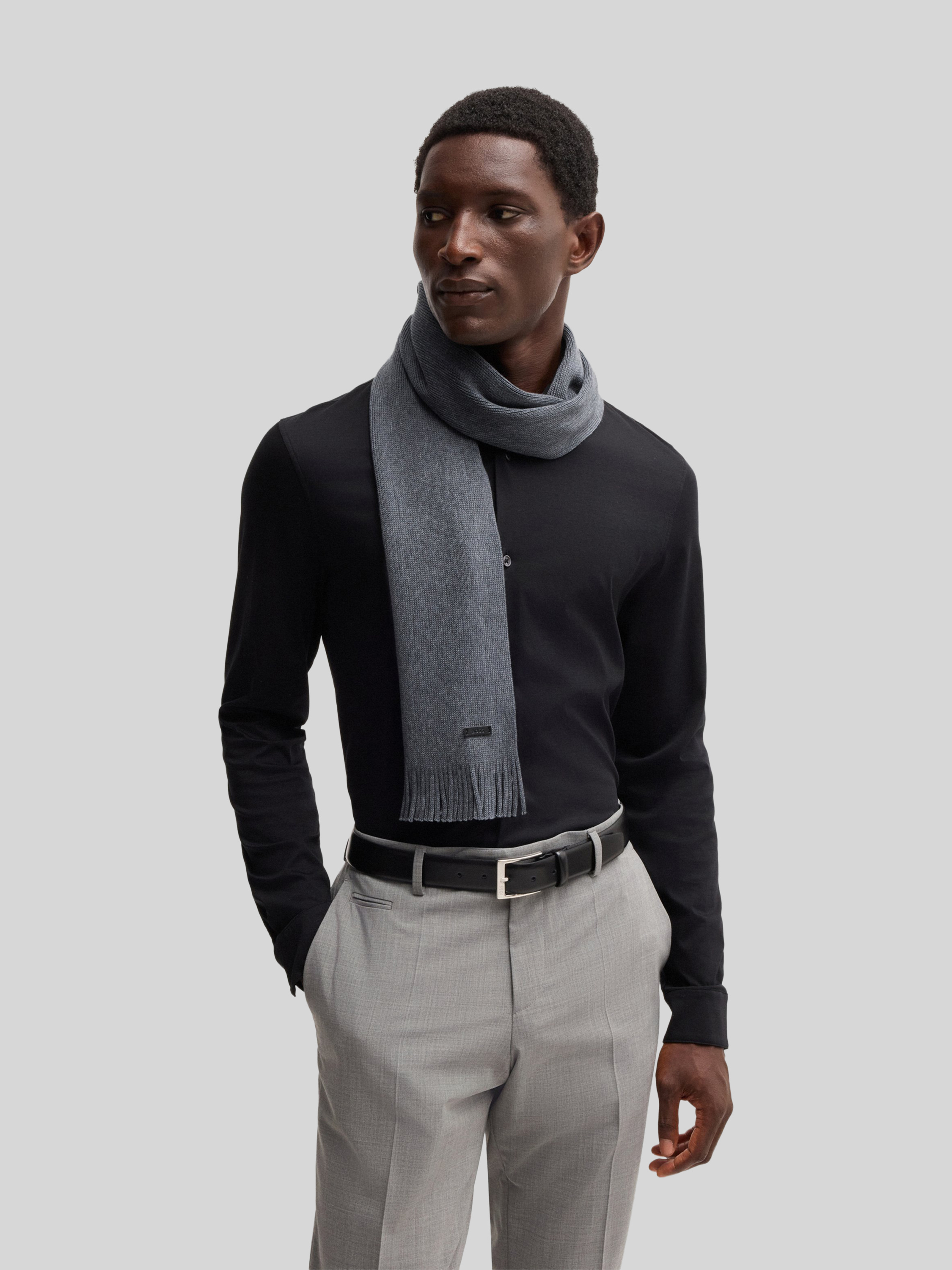 BOSSSjaal van zuivere scheerwol in middengrijs