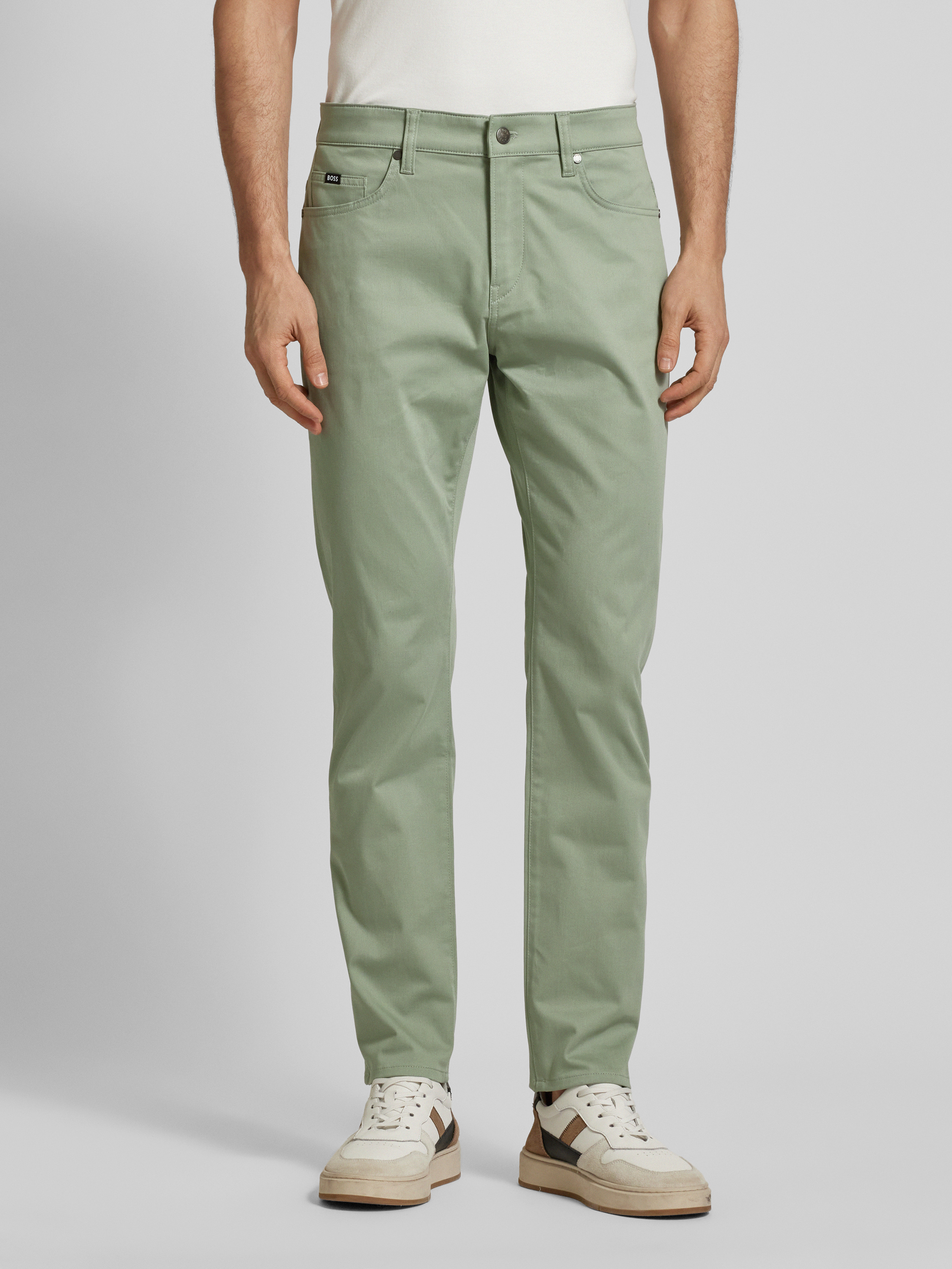 Slim fit stoffen broek met stretch, model 'Delaware' in rietgroen