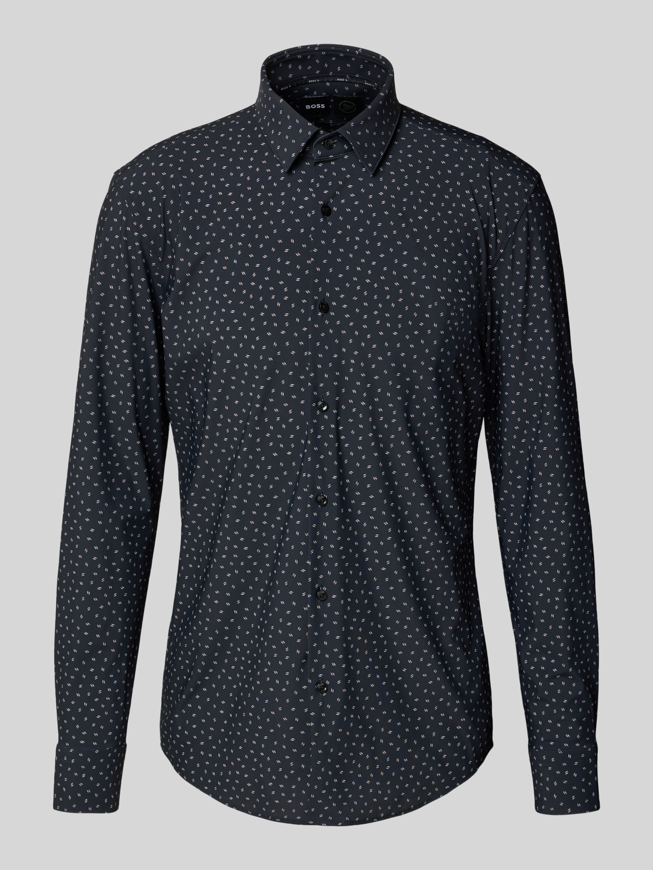 Slim fit zakelijk overhemd met elastisch performancemateriaal, model 'HANK' in zwart