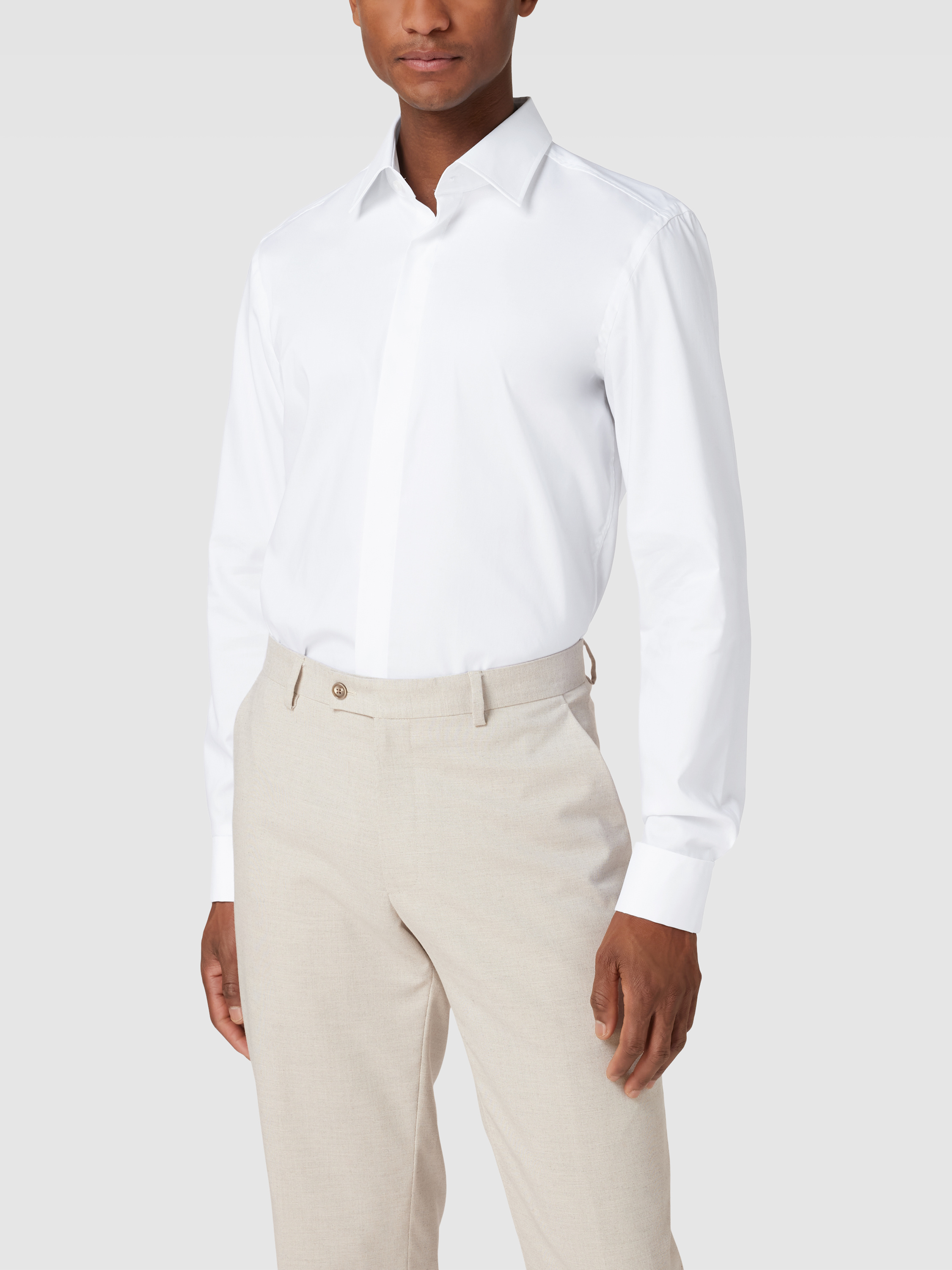Slim fit zakelijk overhemd met new-kentkraag, model 'Hank Tux' in wit