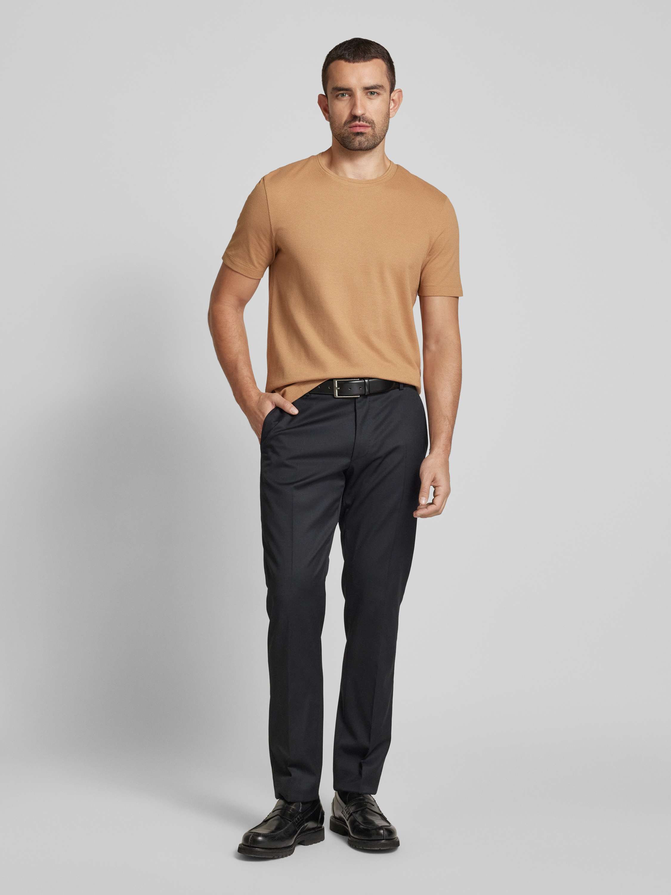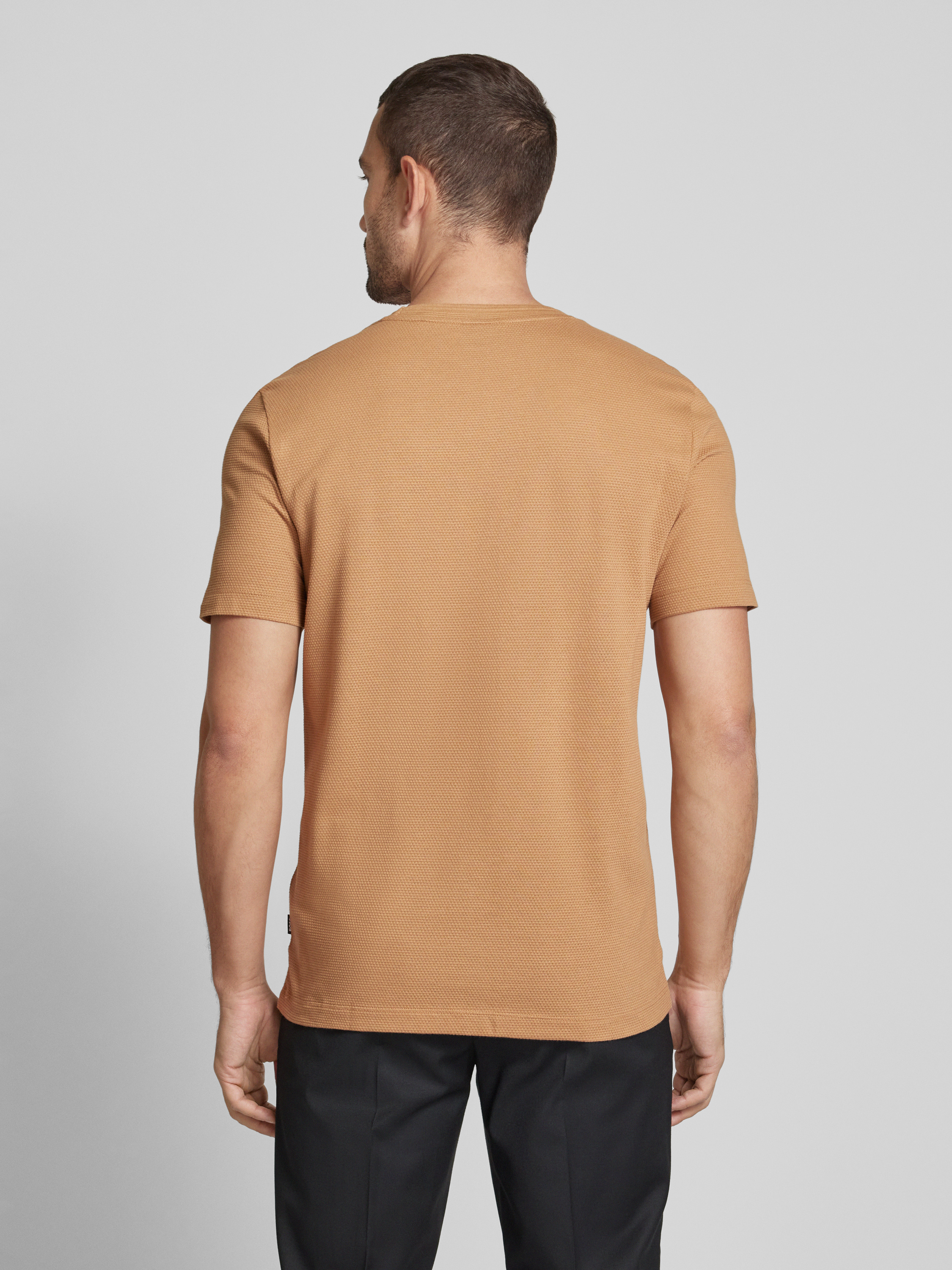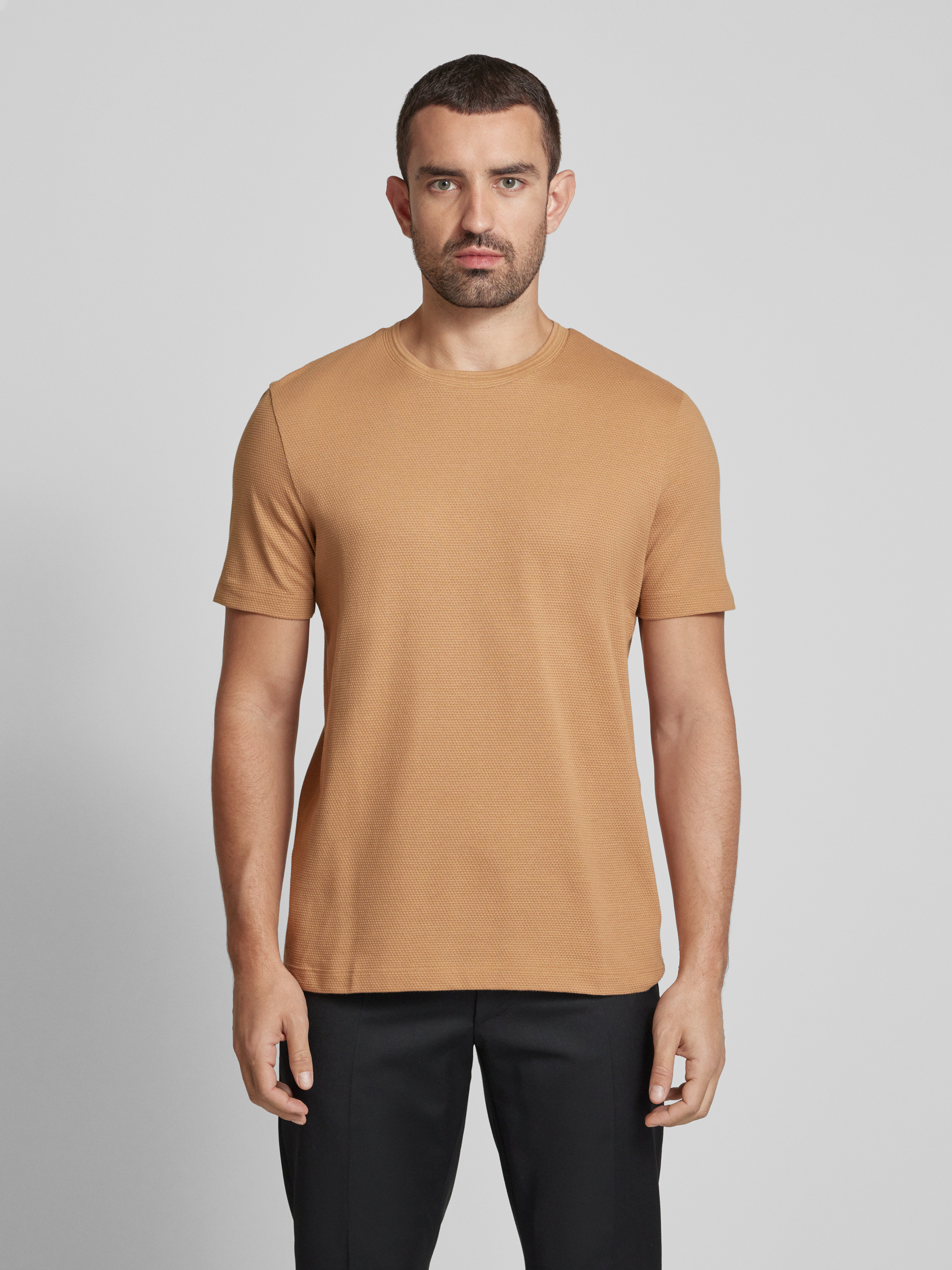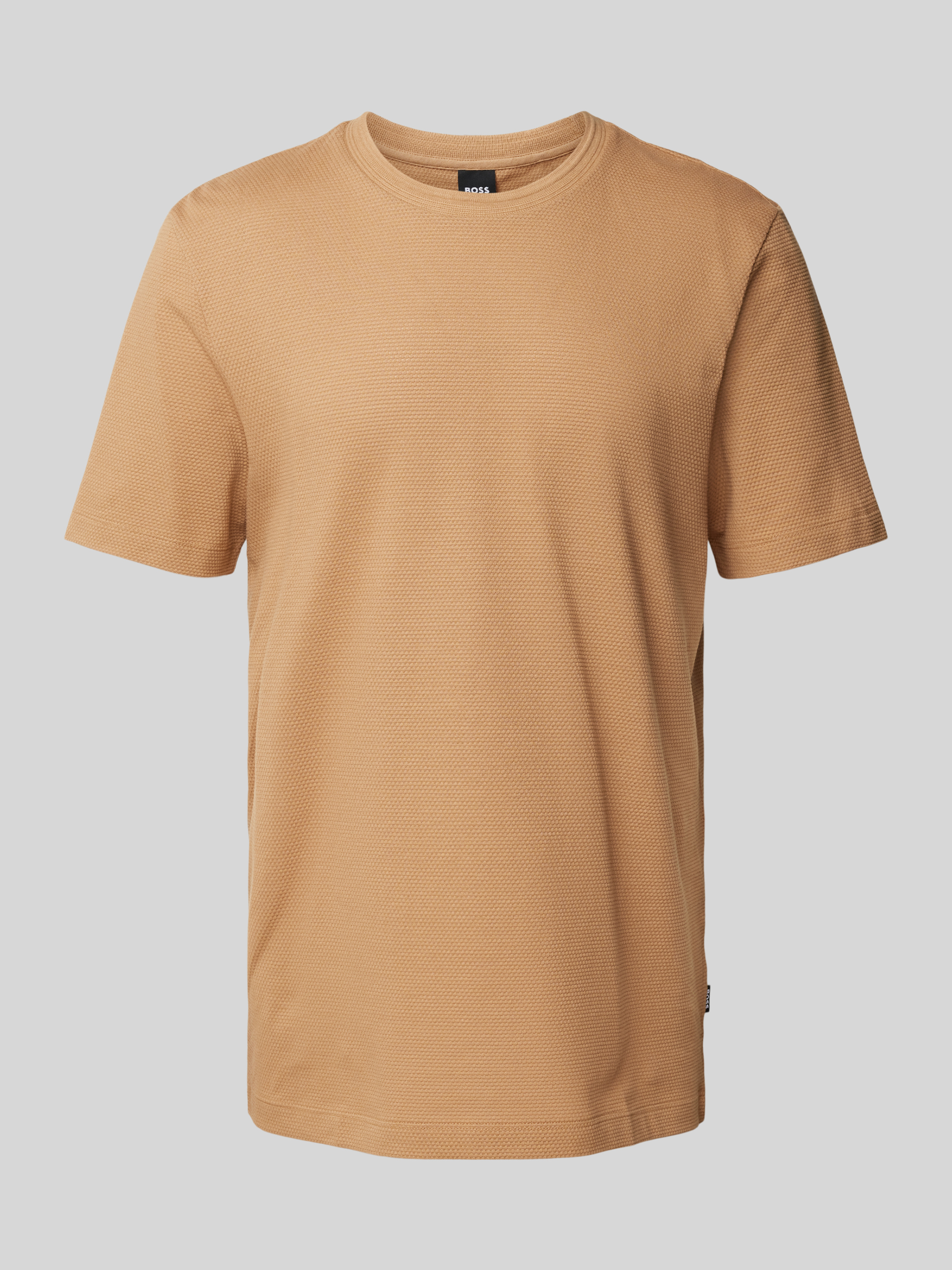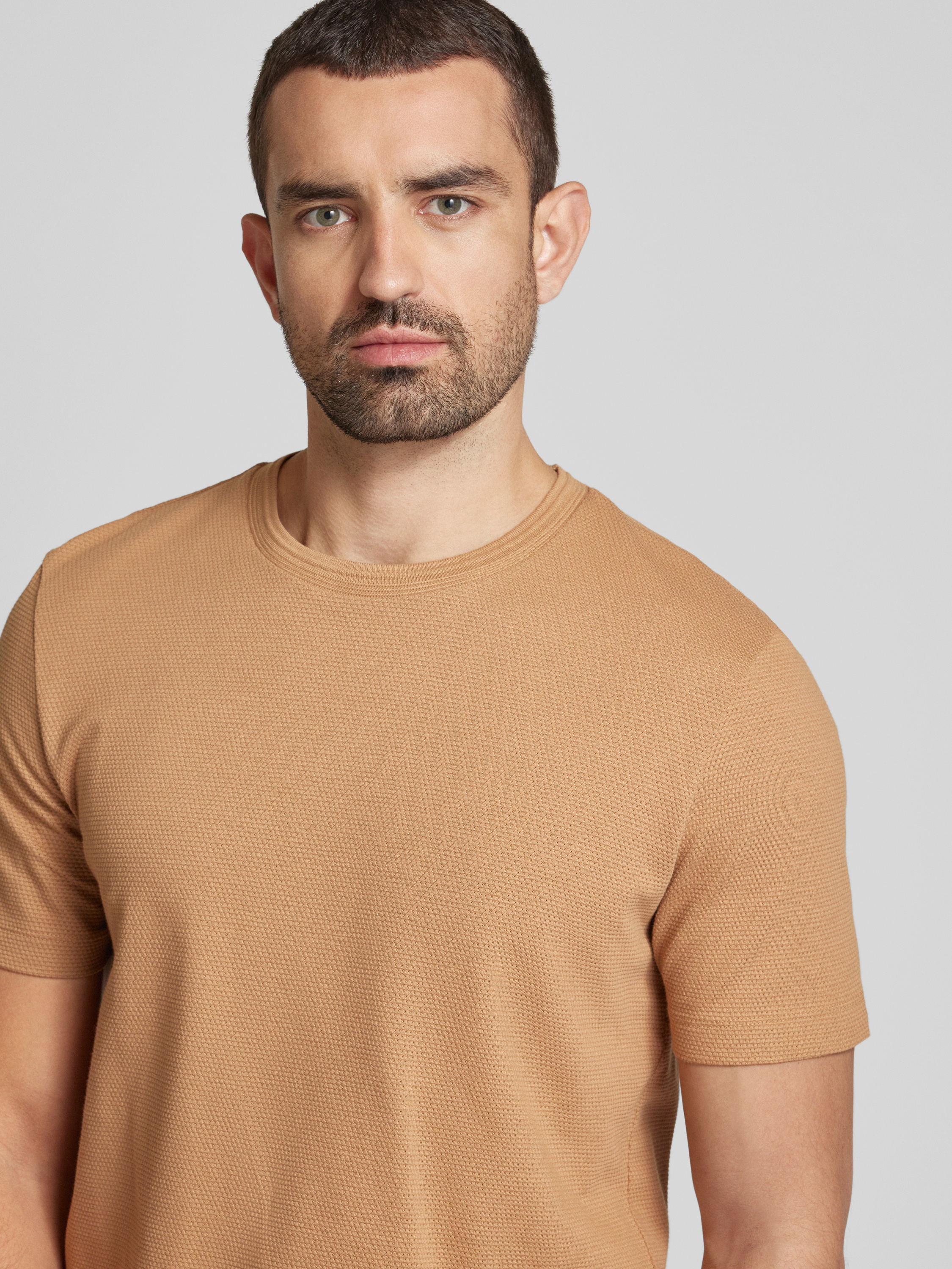 T-shirt met geribde ronde hals, model 'TIBURT' in beige