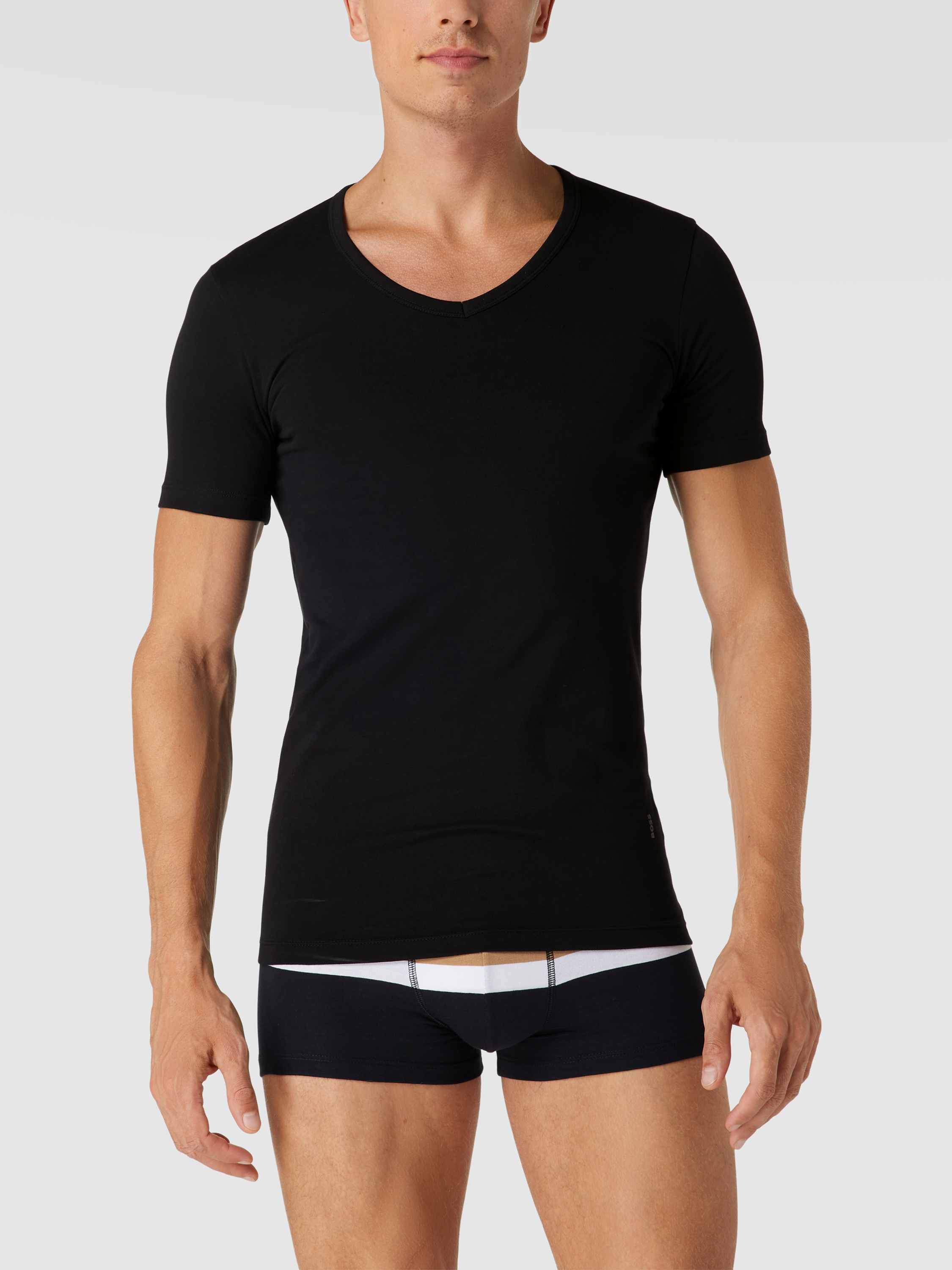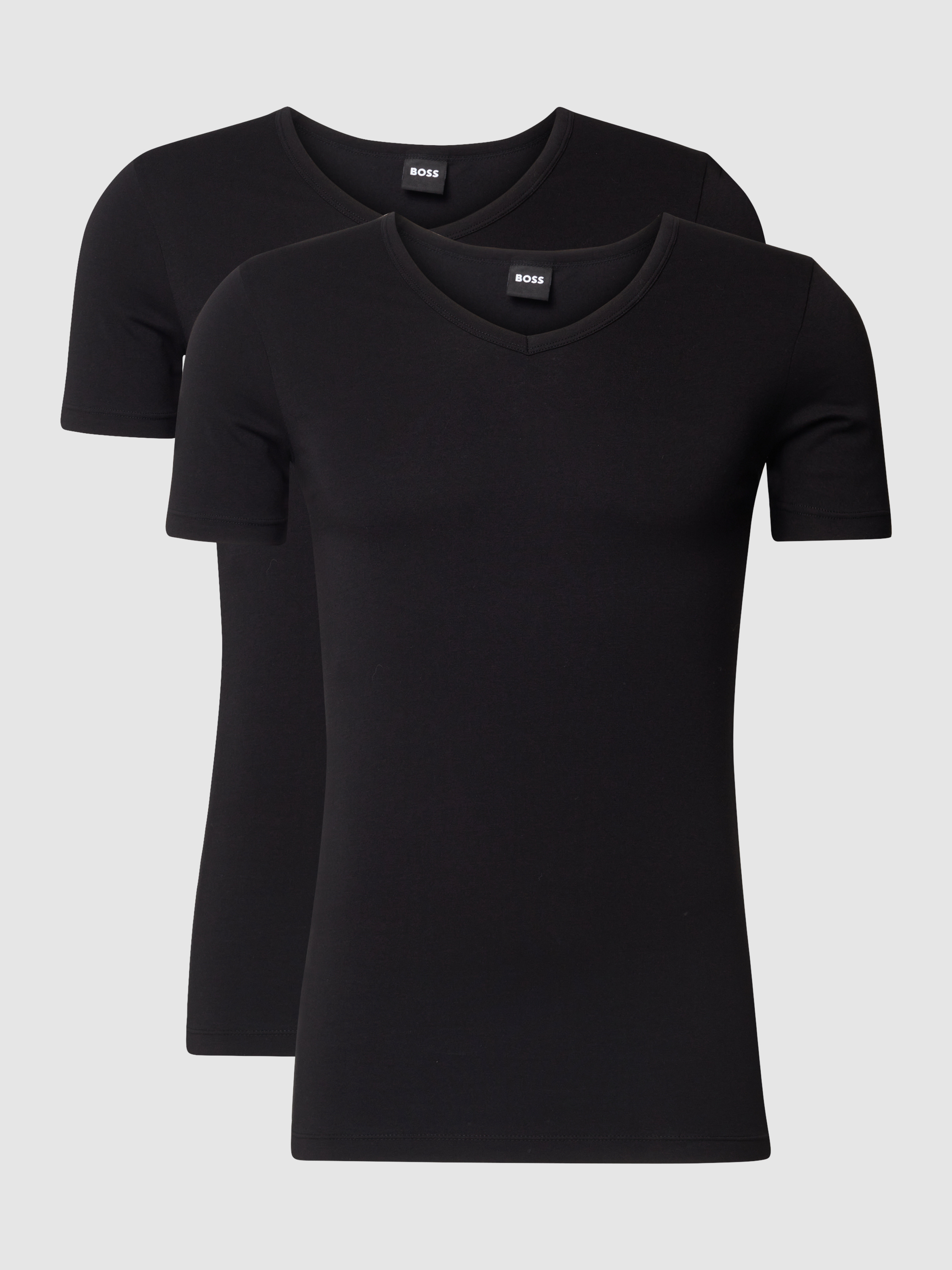 T-shirt met V-hals in een set van 2 stuks, model 'Modern' in zwart