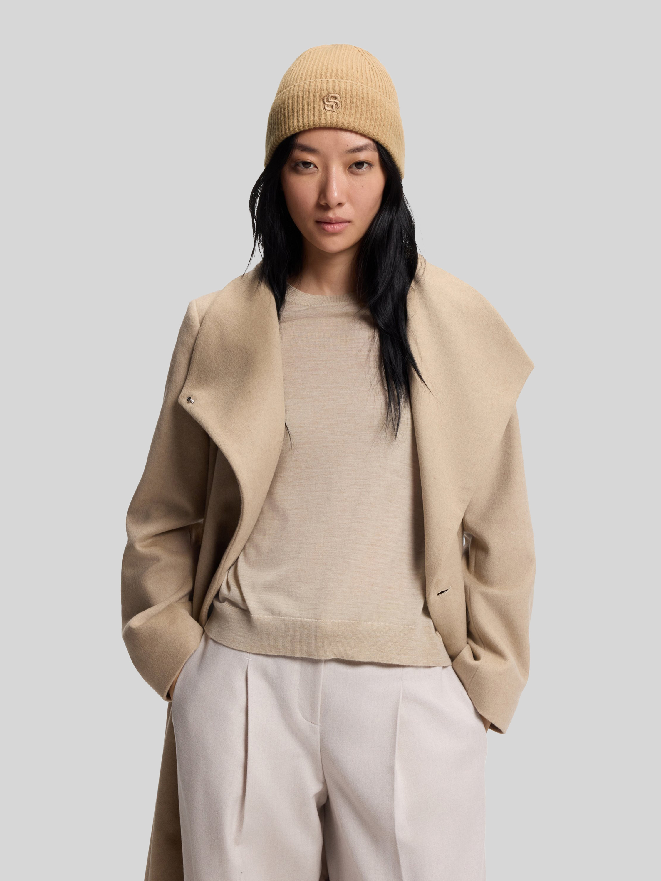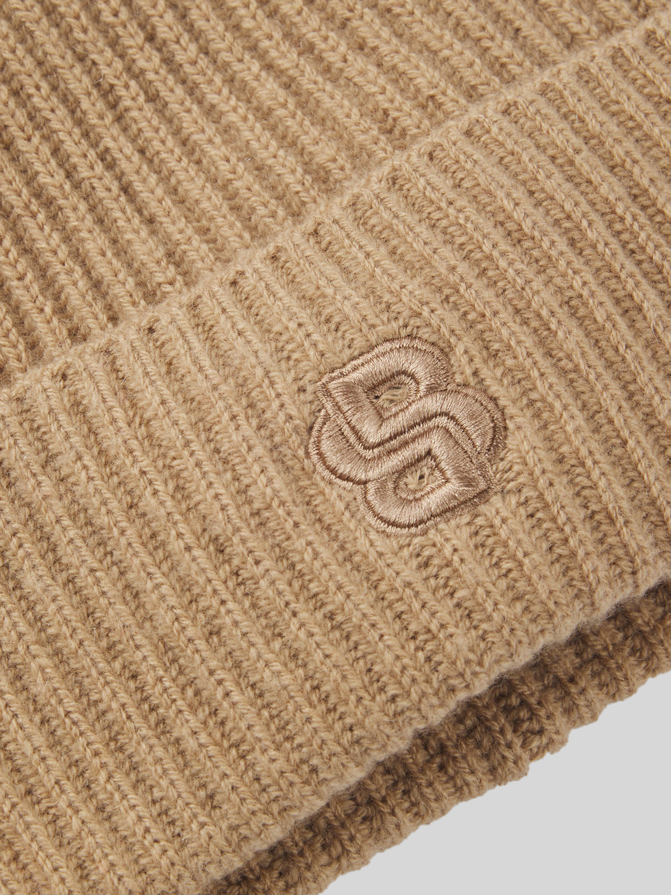 BOSSBeanie van een mix van wol en kasjmier, model 'LEAH' in middenbruin