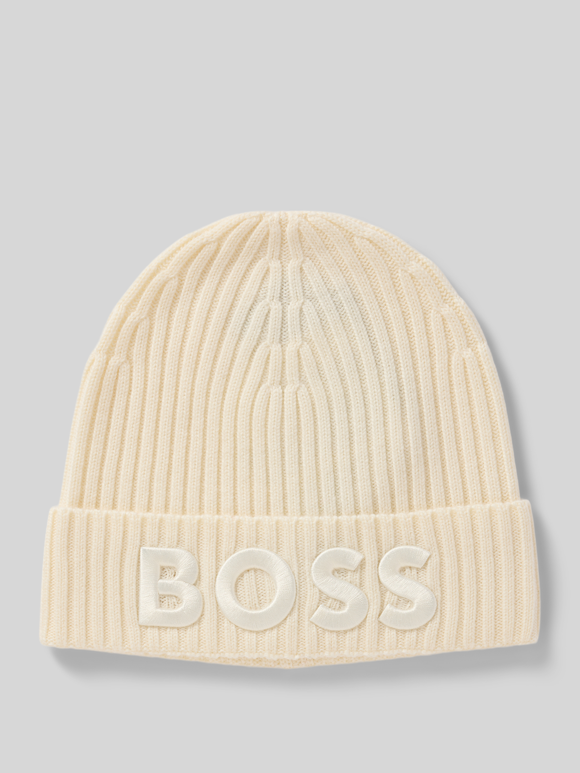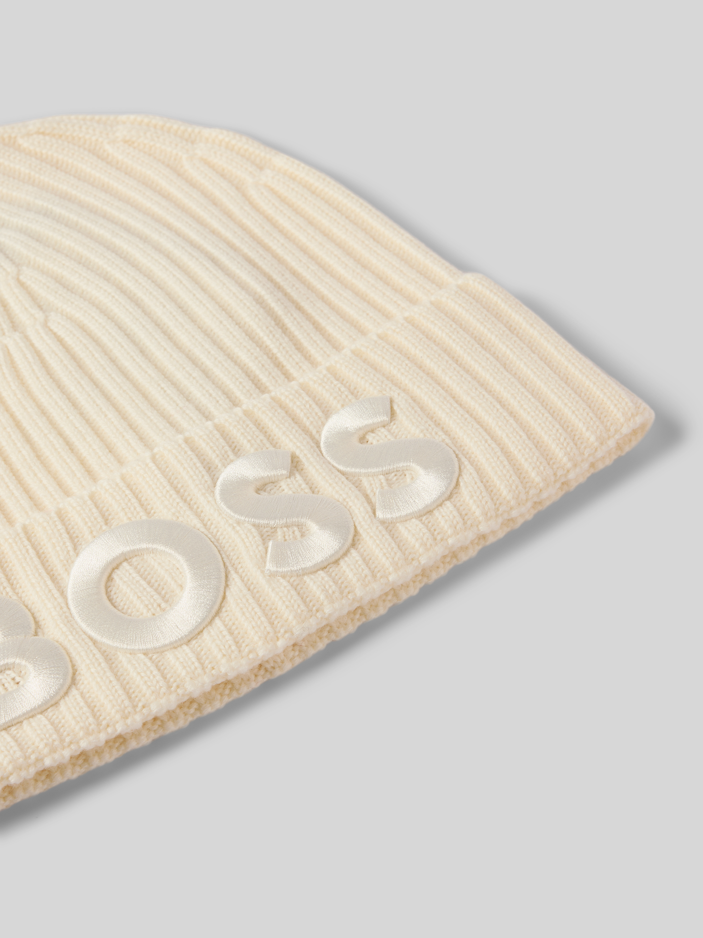 BOSSBeanie van zuivere scheerwol, model 'LARA_HAT' in ecru