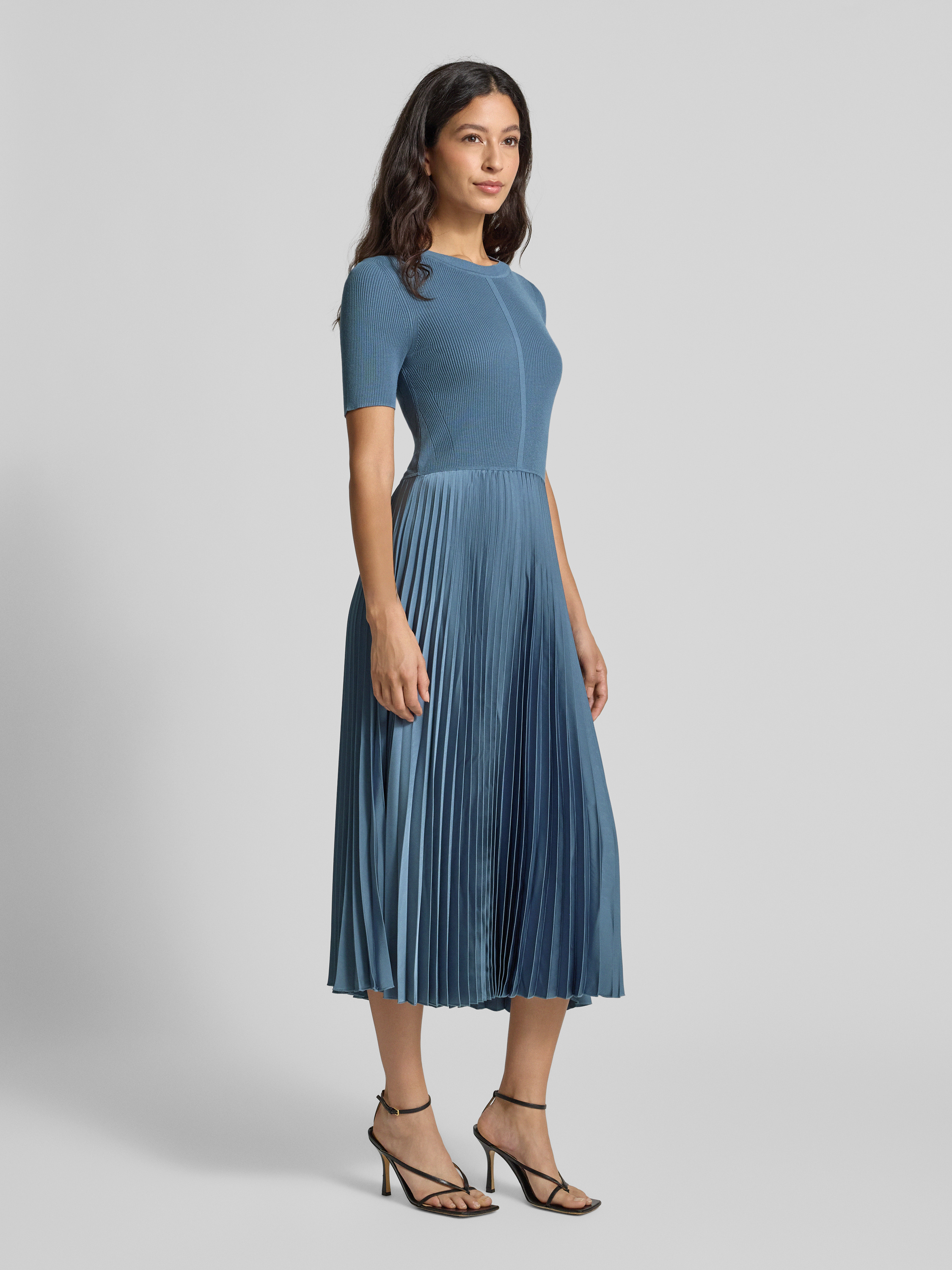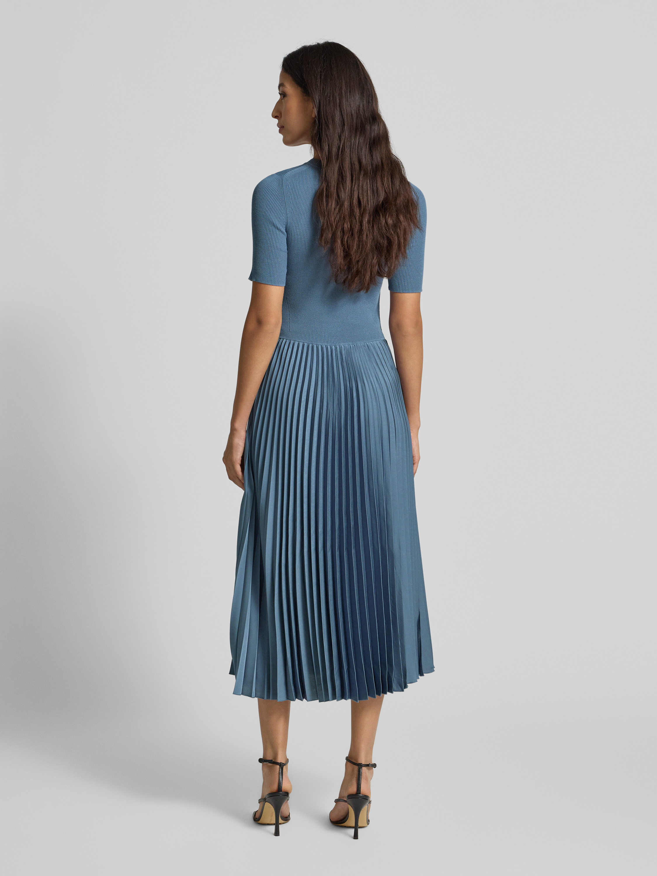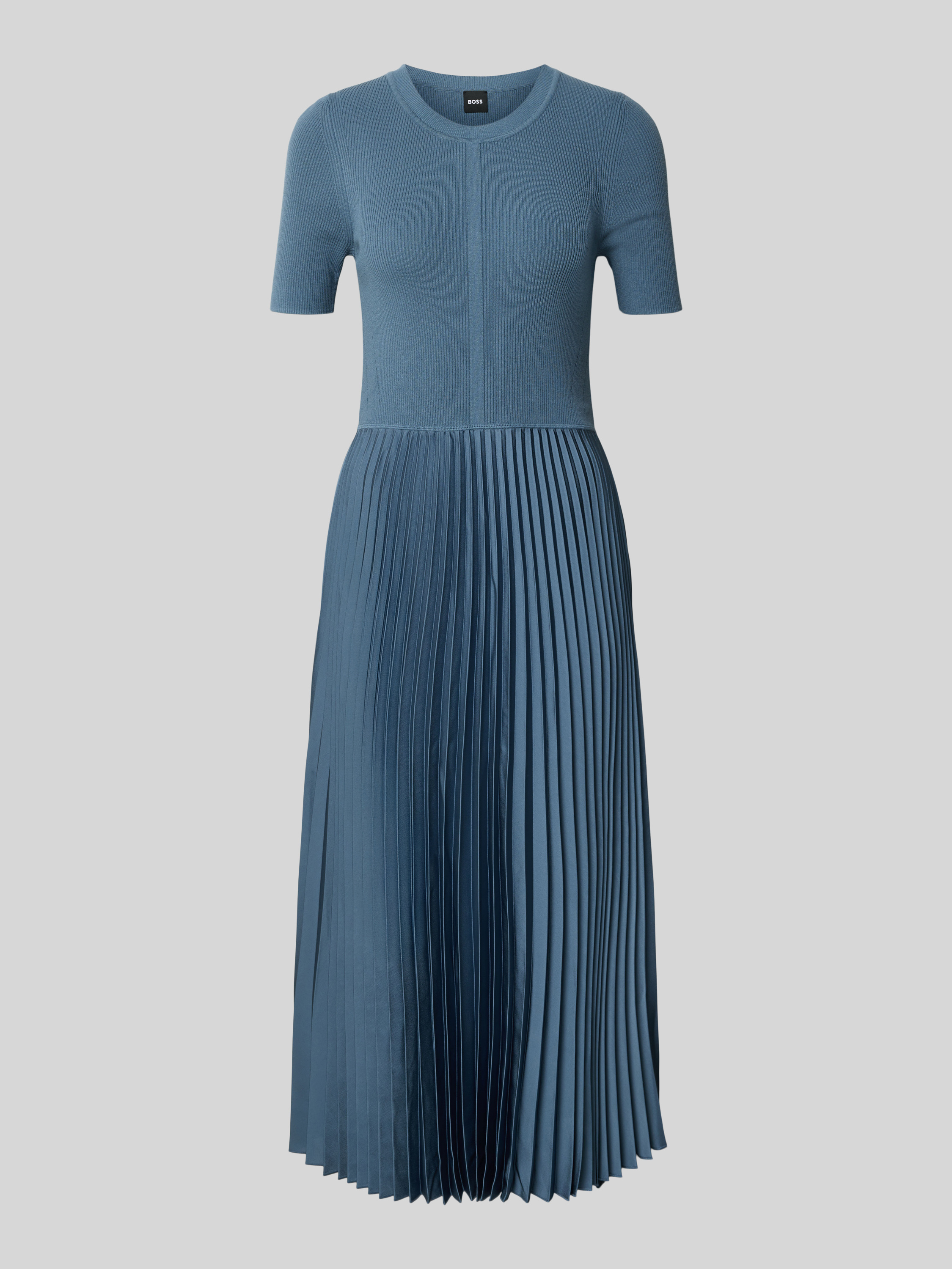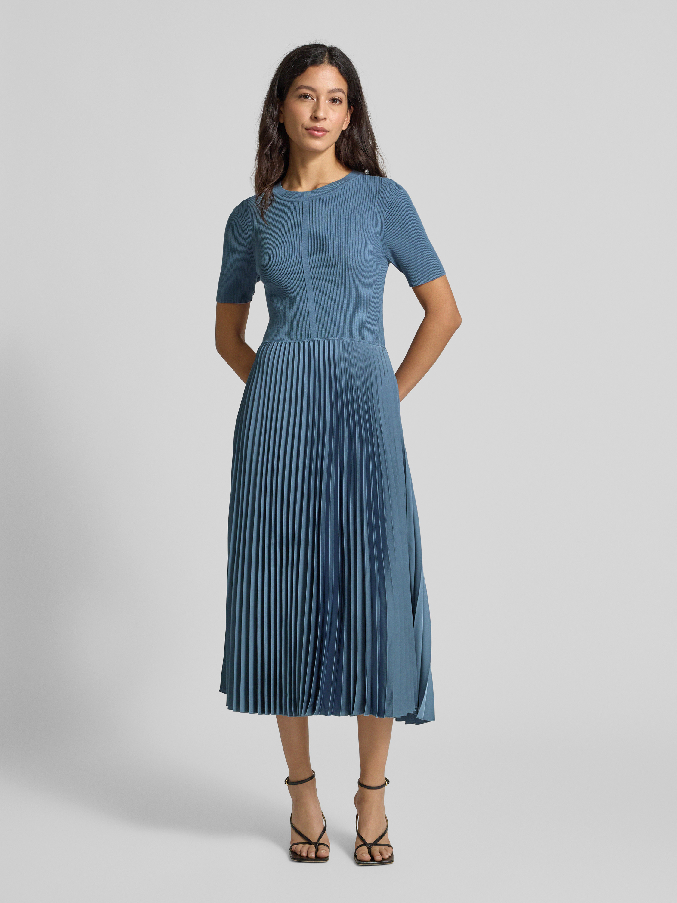 Nauwsluitende midi-jurk van viscosemix, model 'FADRIDI' in rookblauw