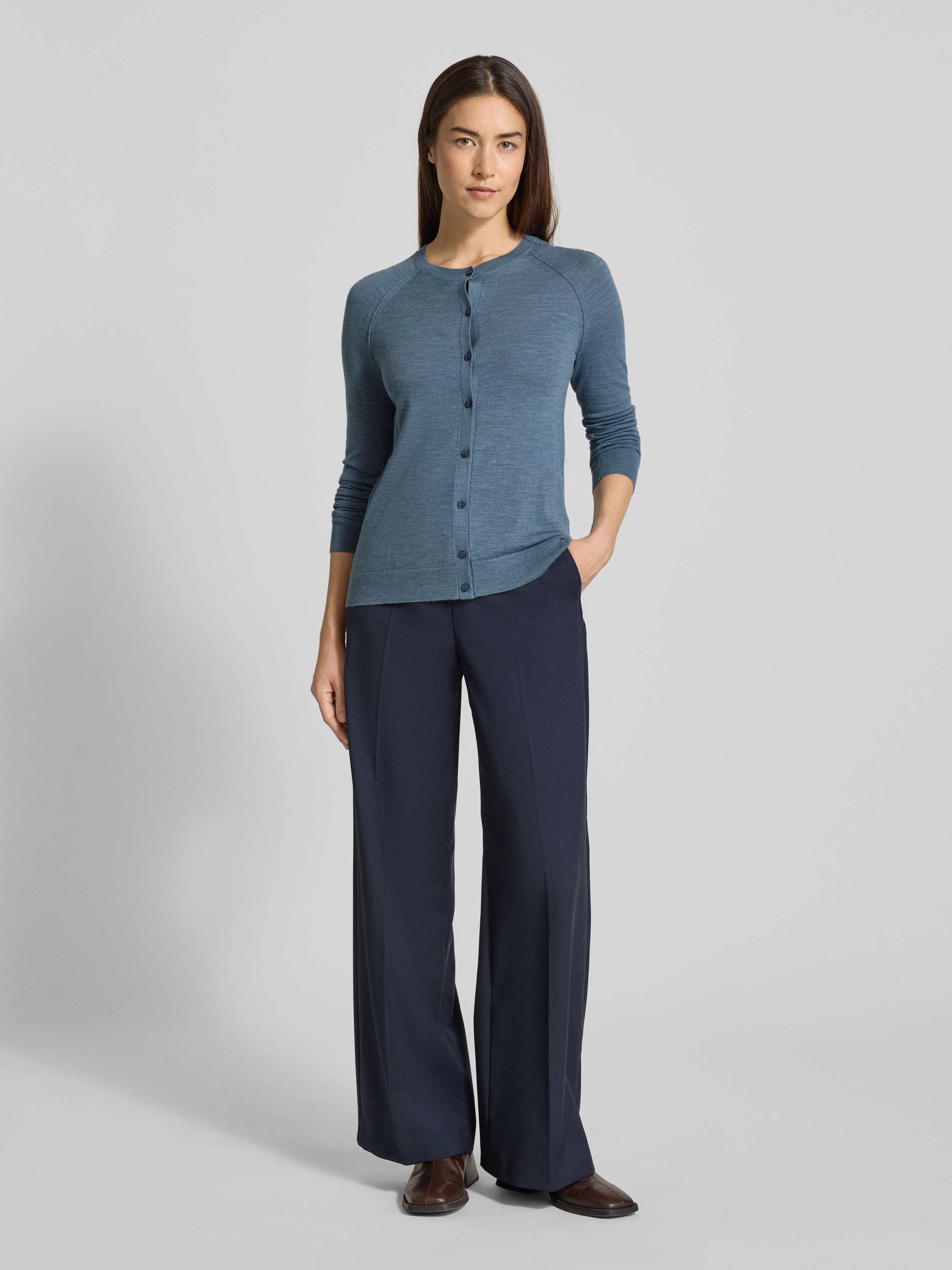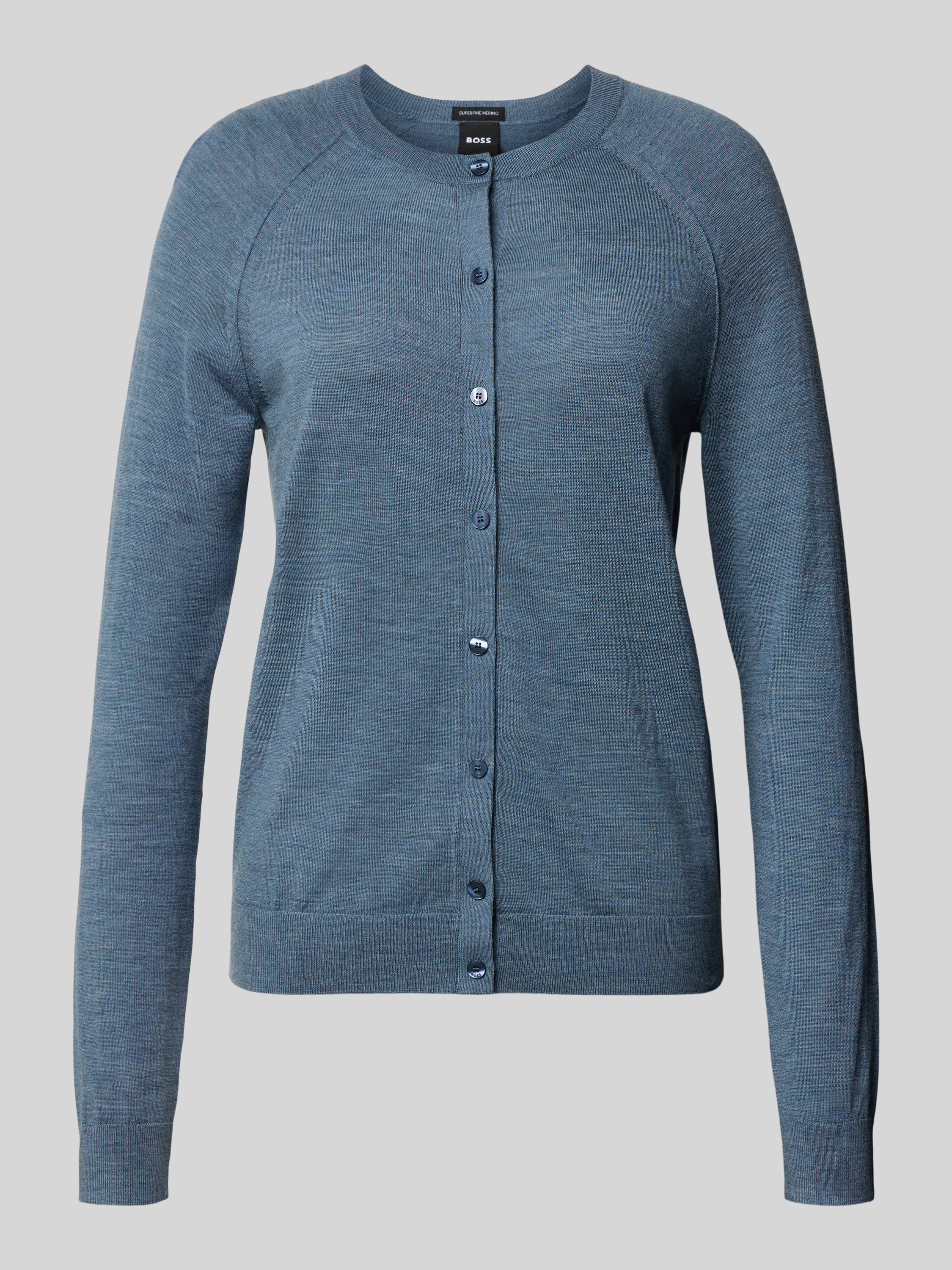 BOSSRegular fit gebreid jack van zuivere scheerwol, model 'FONAMI' in rookblauw