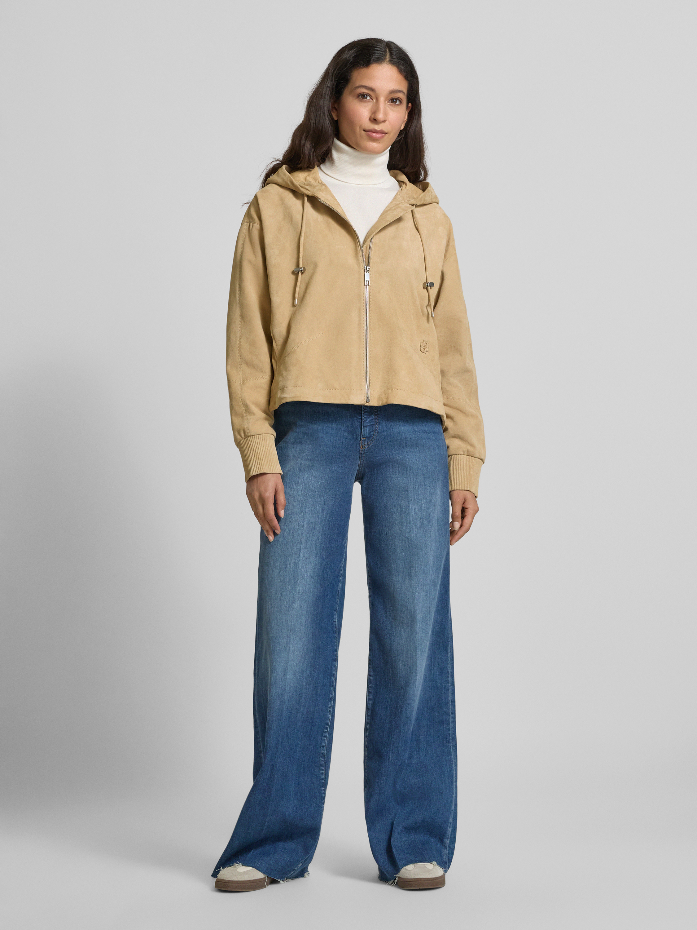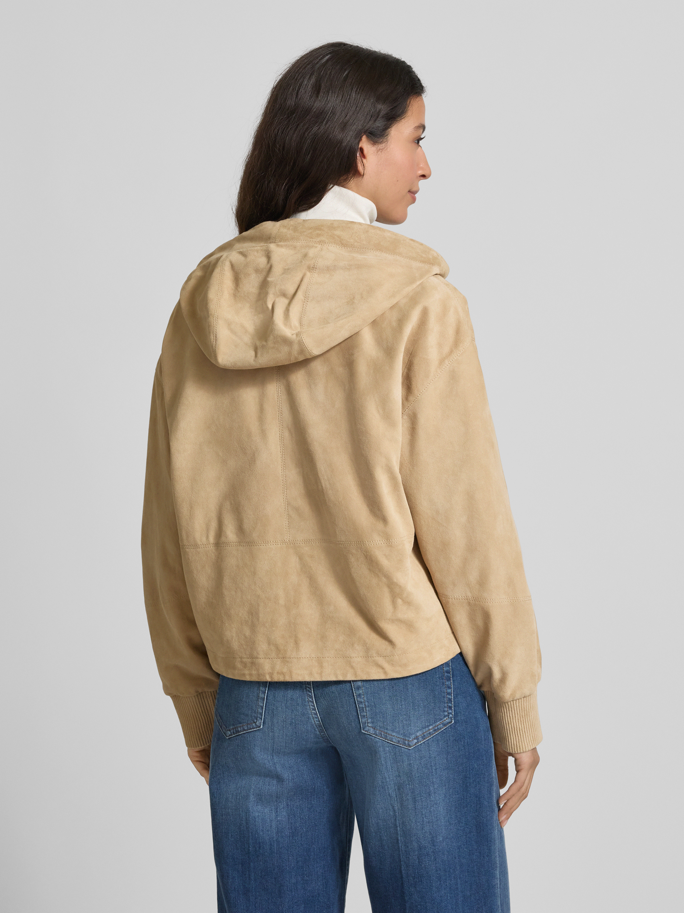 Regular fit leren jack van fijn schapensuède, model 'SALASA' in beige