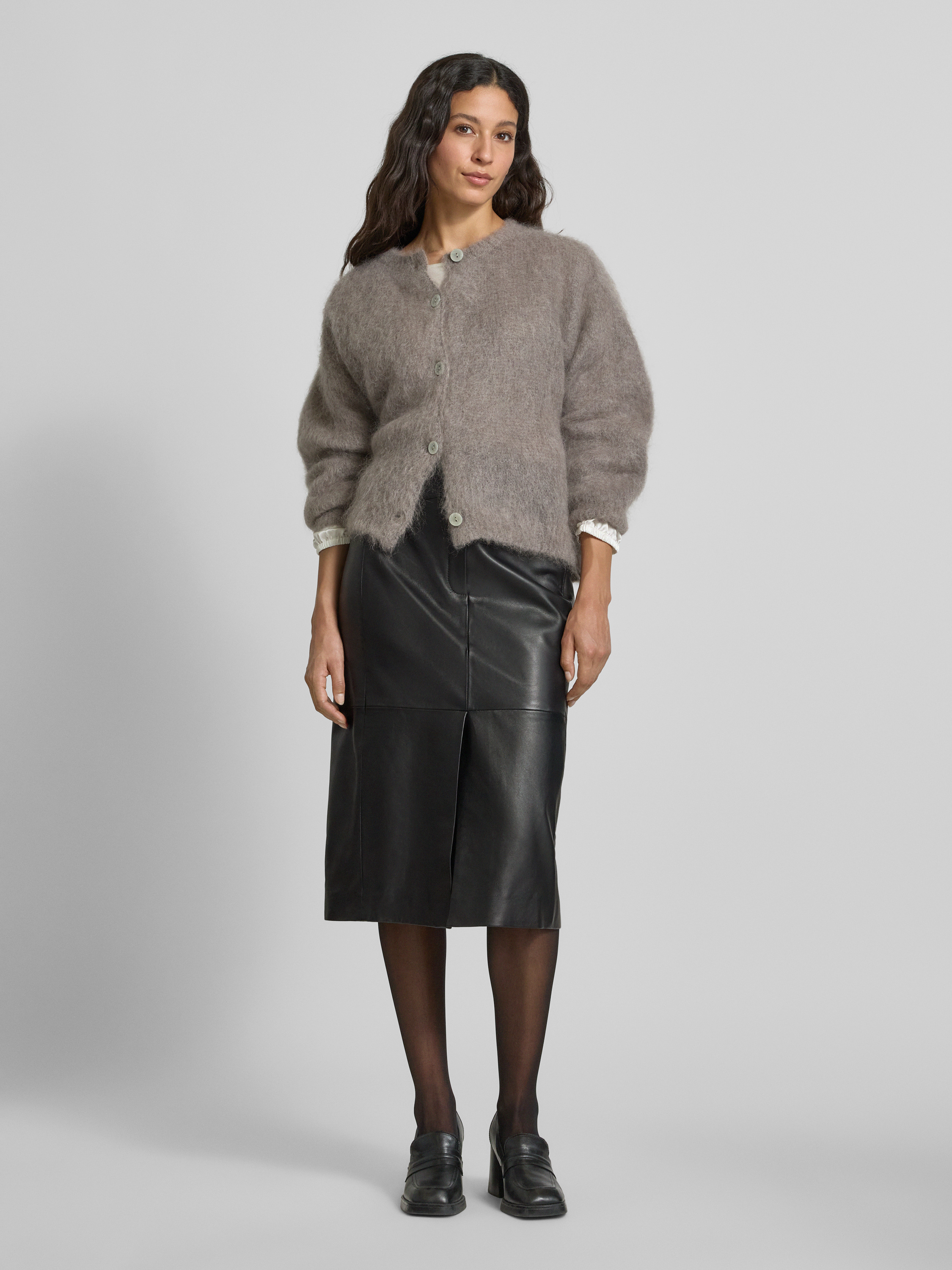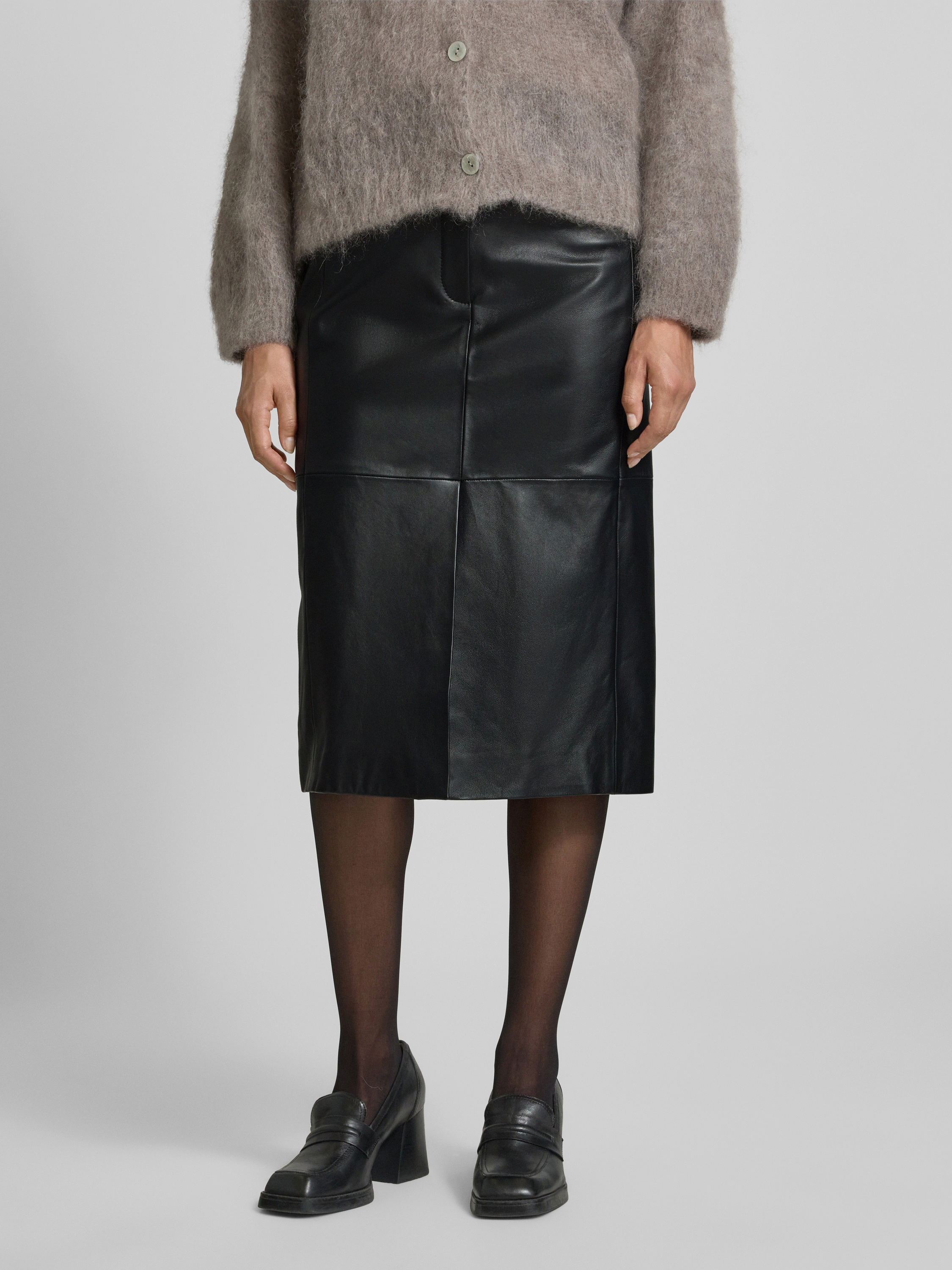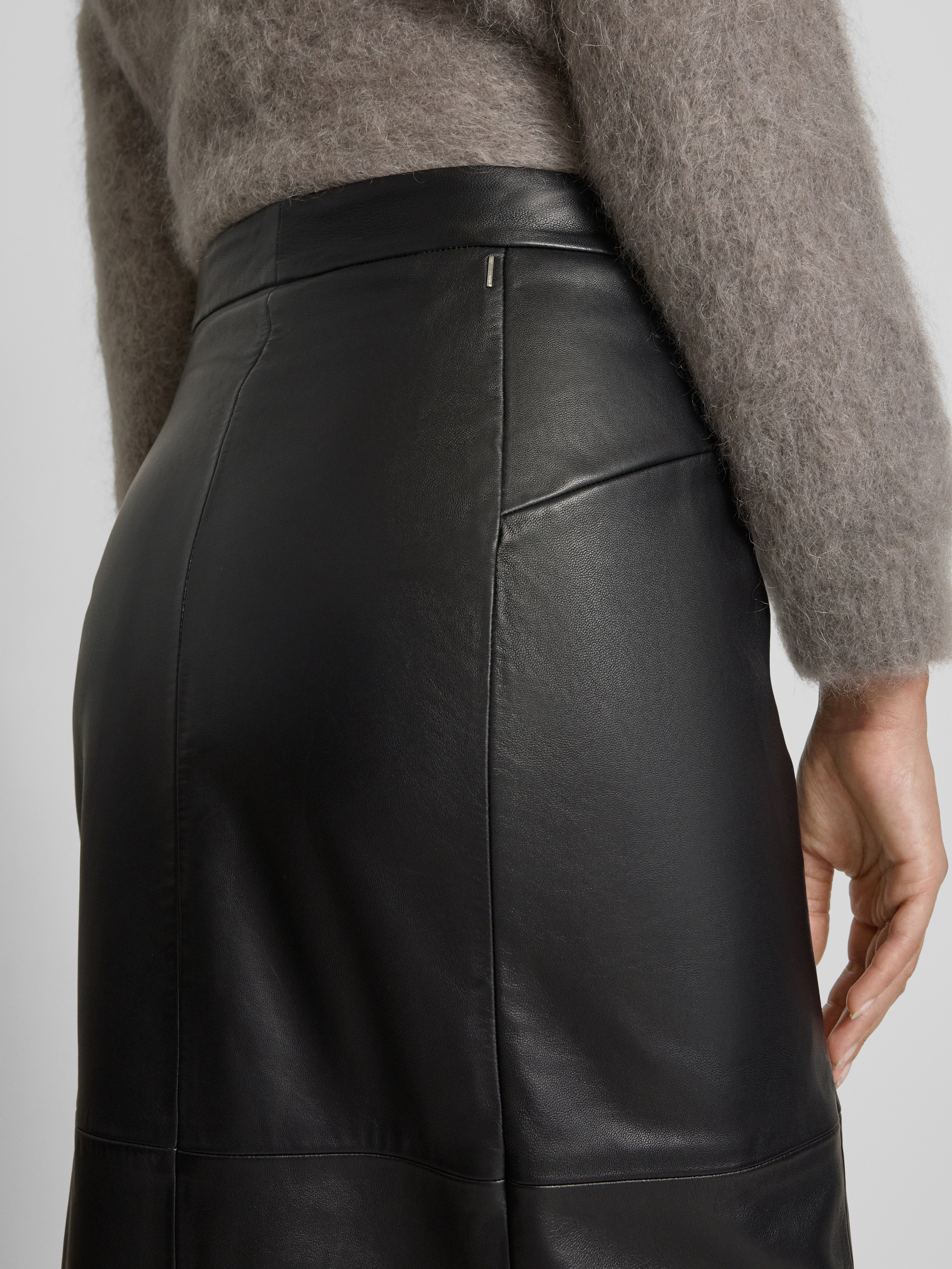 Regular fit leren rok van lamsleer in zwart