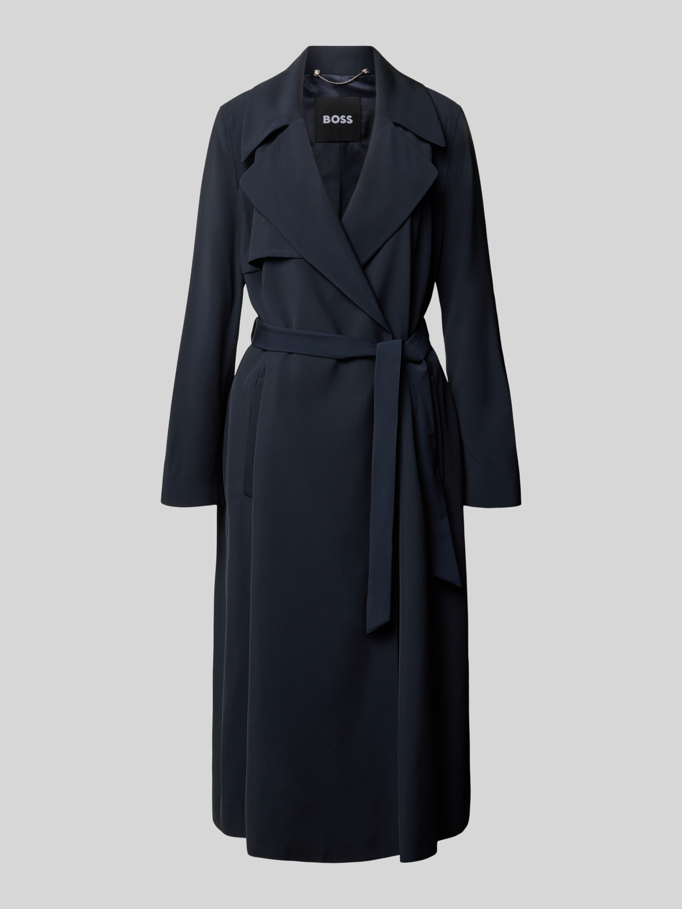 BOSSRegular fit trenchcoat met strikceintuur in marineblauw