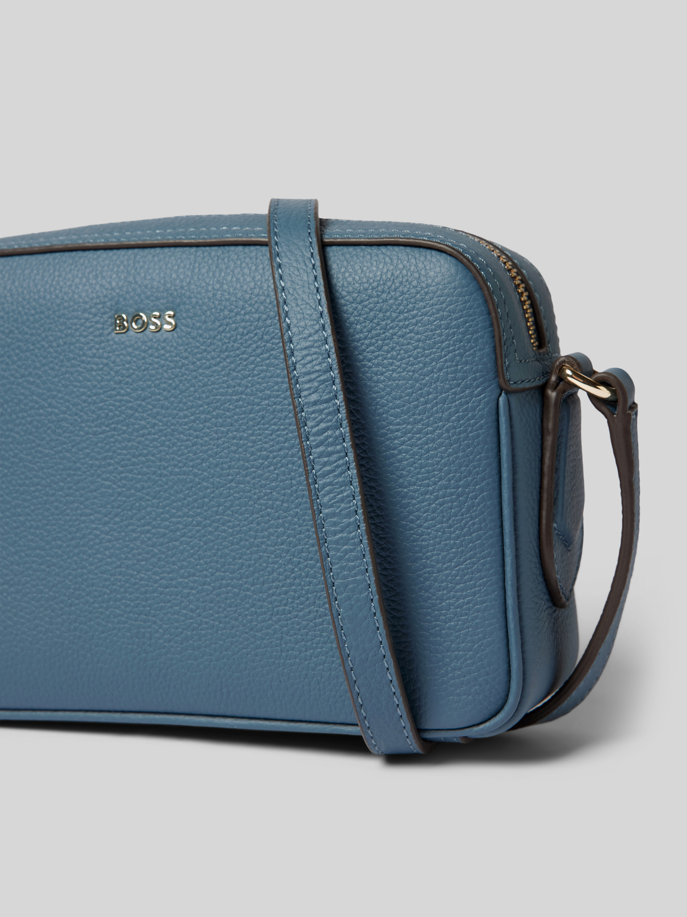 Schoudertas van generfd rundleer in rookblauw