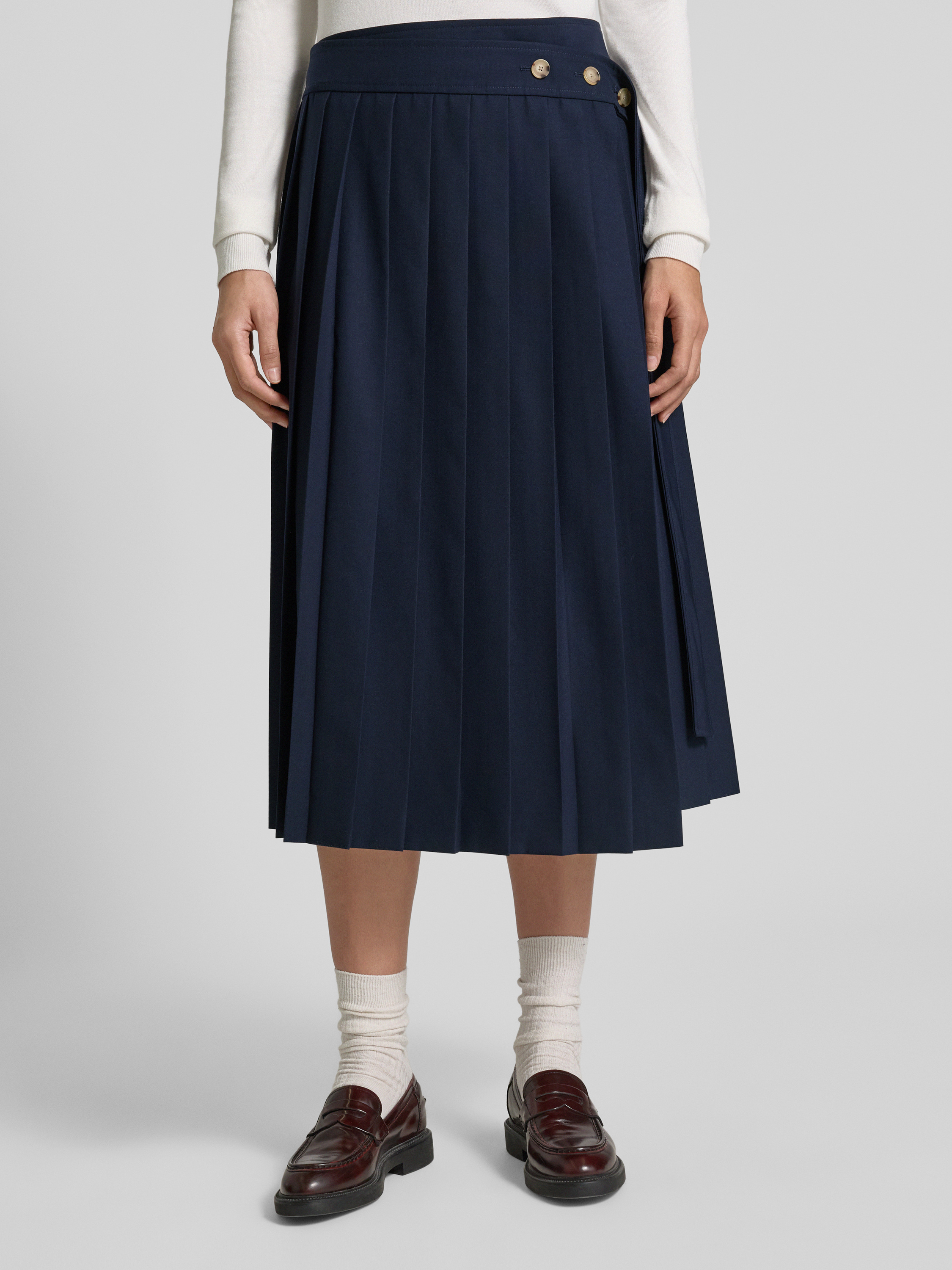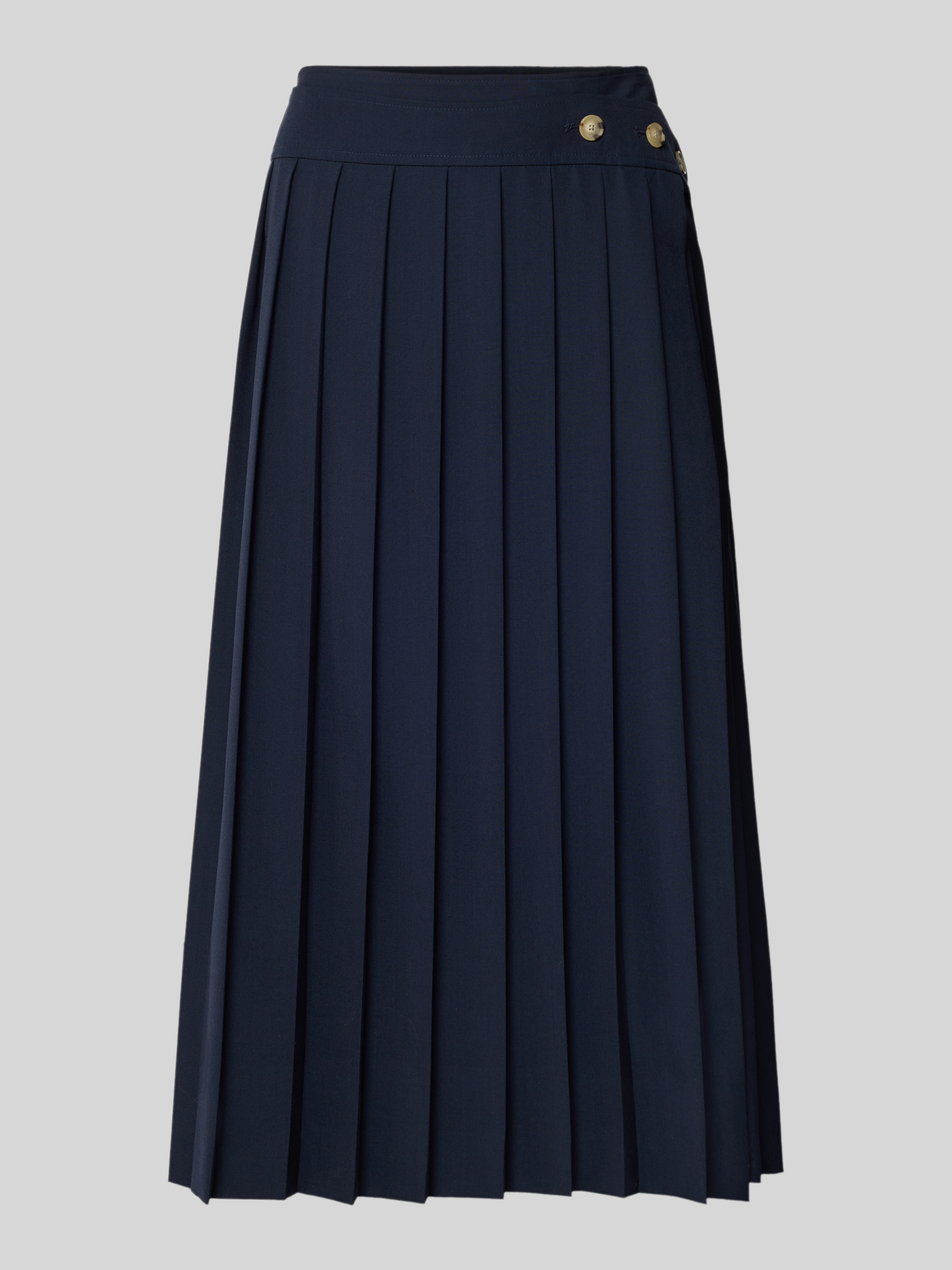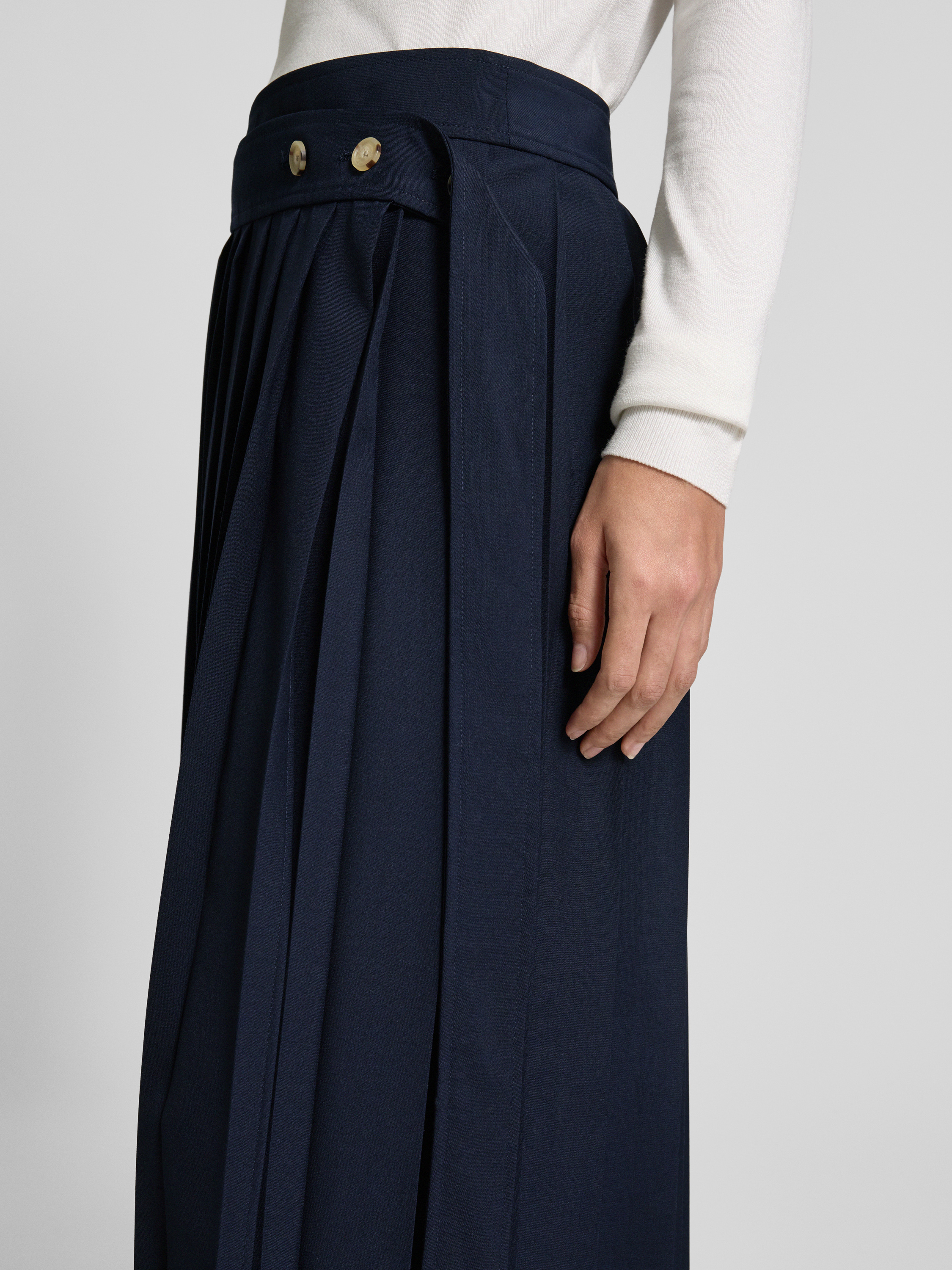 BOSSUitlopende plissérok van scheerwolmix, model 'VENDRA' in marineblauw