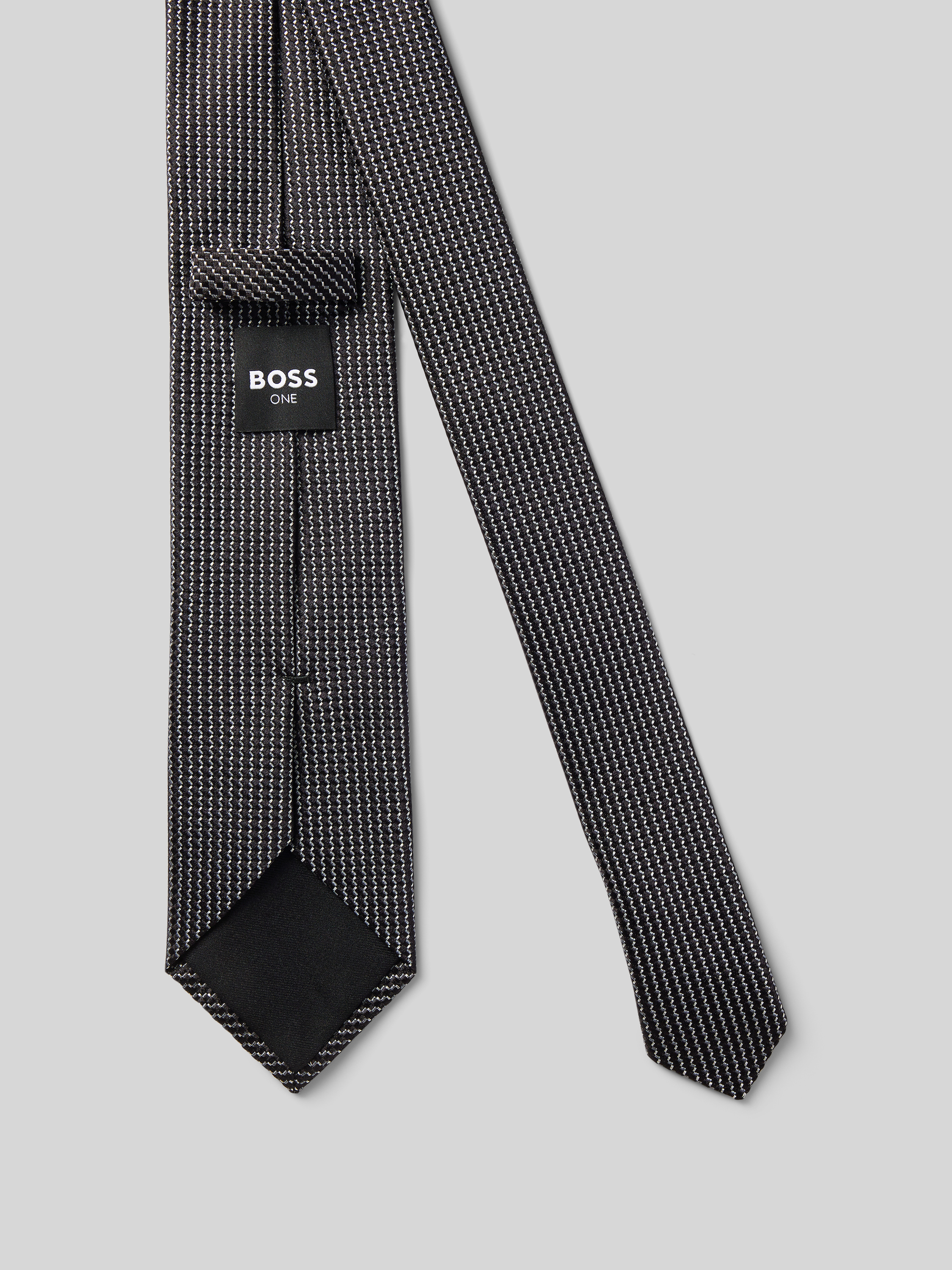 BOSSZijden stropdas met all-over motief in donkerbruin