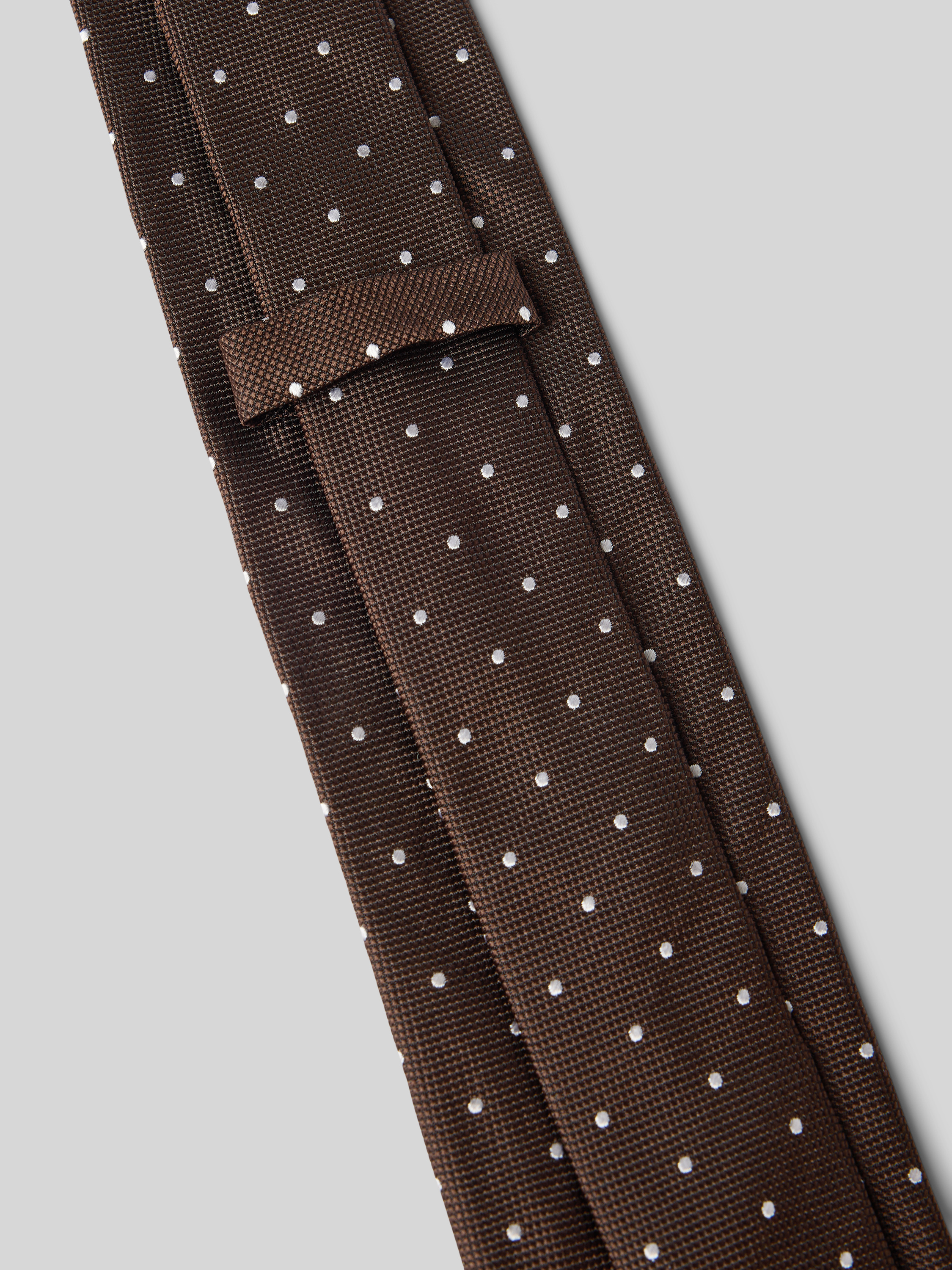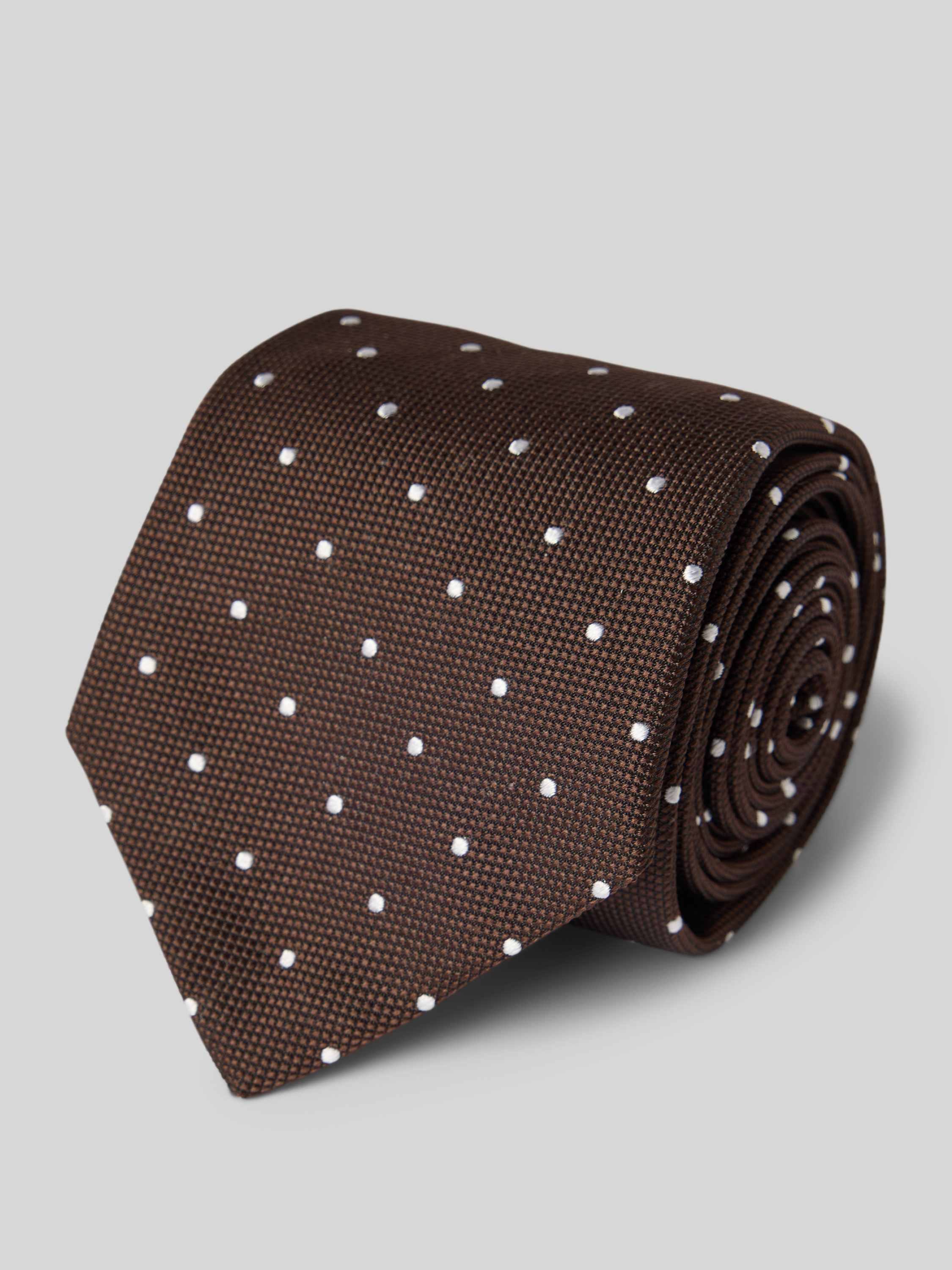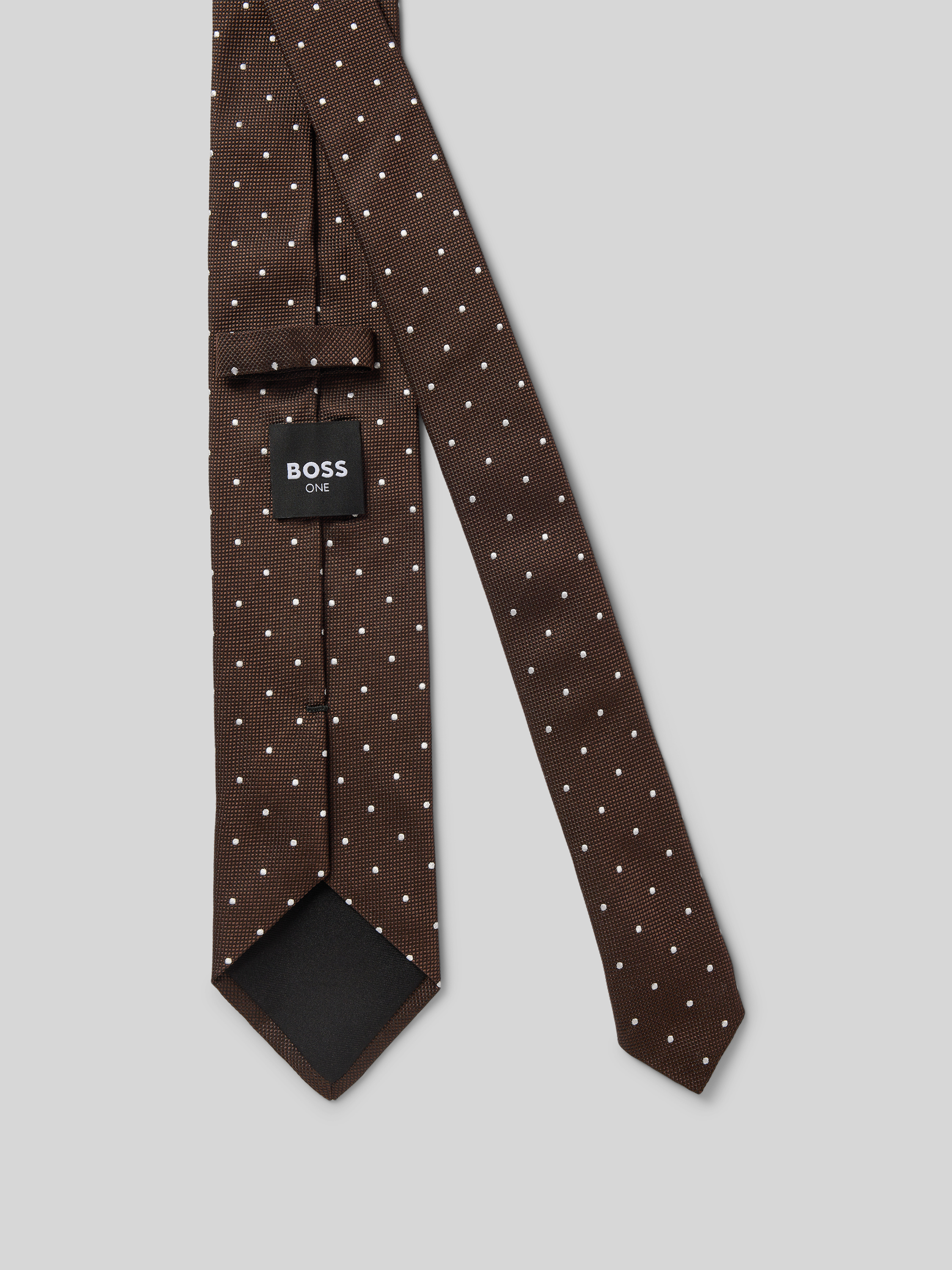 BOSSZijden stropdas met all-over motief in donkerbruin