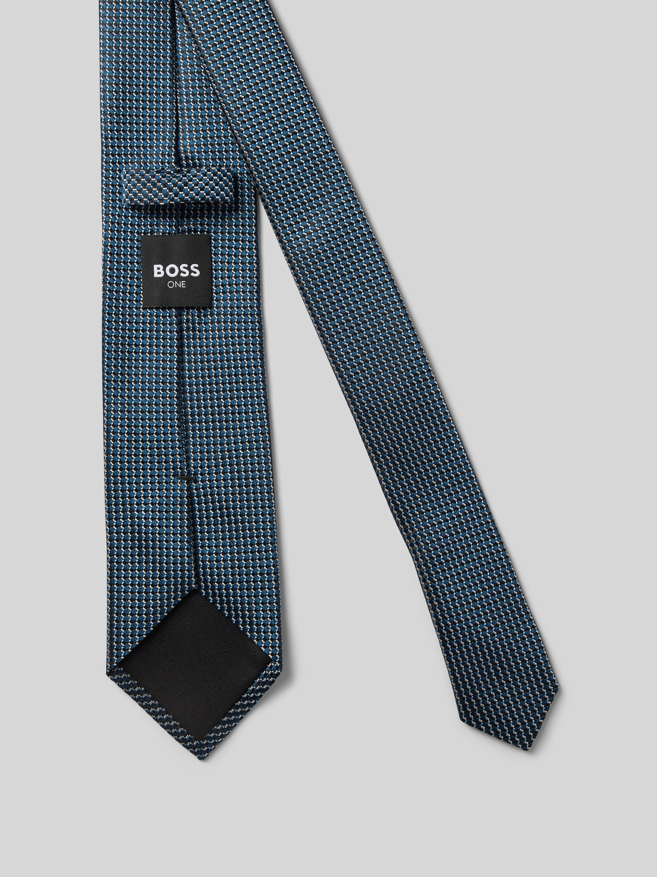 BOSSZijden stropdas met structuurmotief in aquablauw